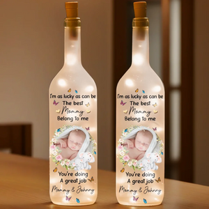 Custom Photo I'm As Lucky As Can Be - Family Personalized Custom Bottle Lamp - Baby Shower Gift, Gift For First Mom