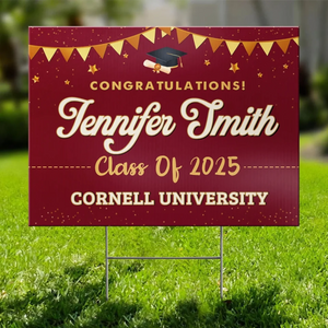 This customized yard sign is an exciting and simple way to brighten up your home and outside space. It's also a wonderful gift for your loved ones and can be used as a welcome sign, a memorable graduation announcement, and a directing attendee to weddings and other events.