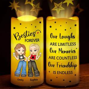 Besties Forever, Laughter Never Ends - Bestie Personalized Custom LED Projection Flameless Candle - Gift For Best Friends, BFF, Sisters