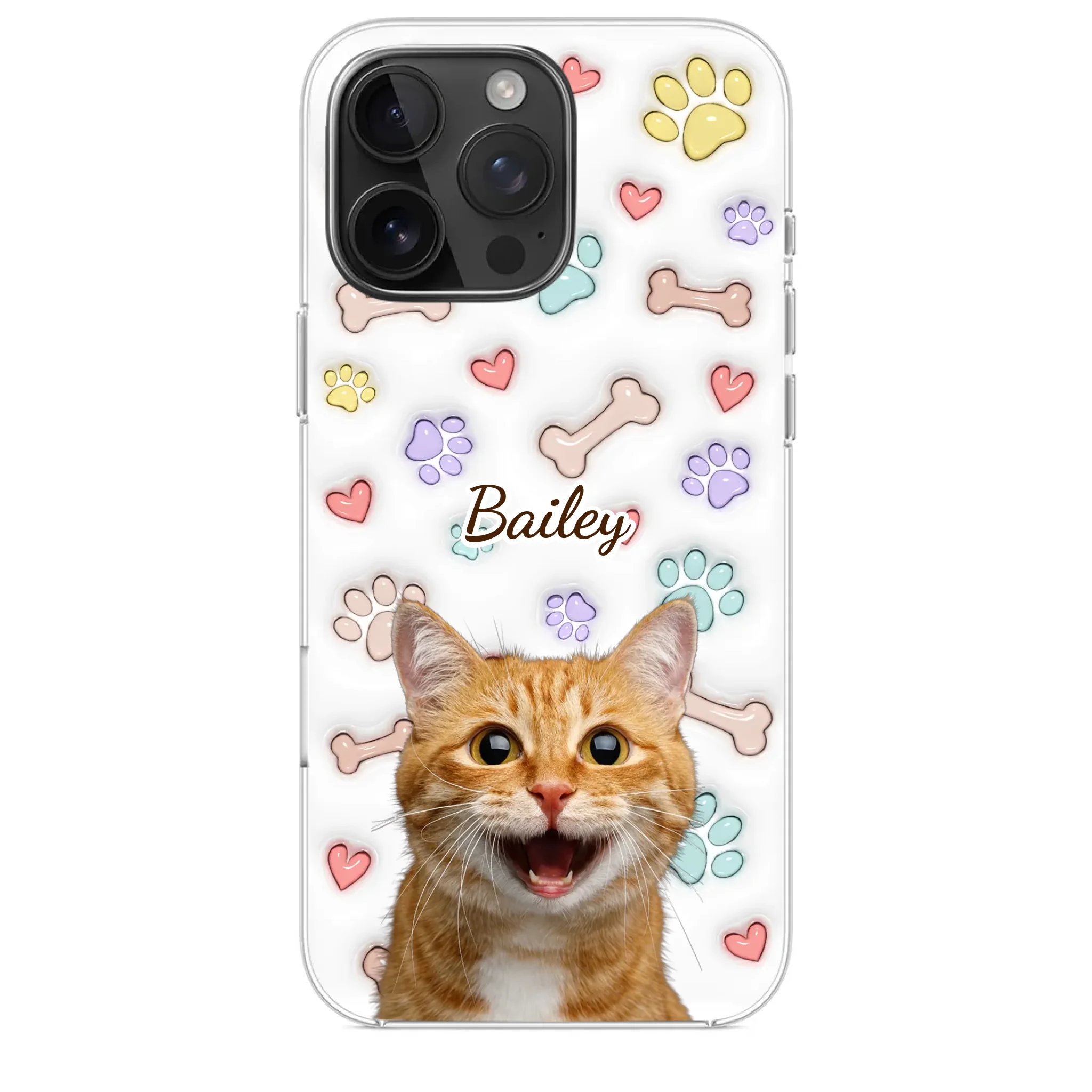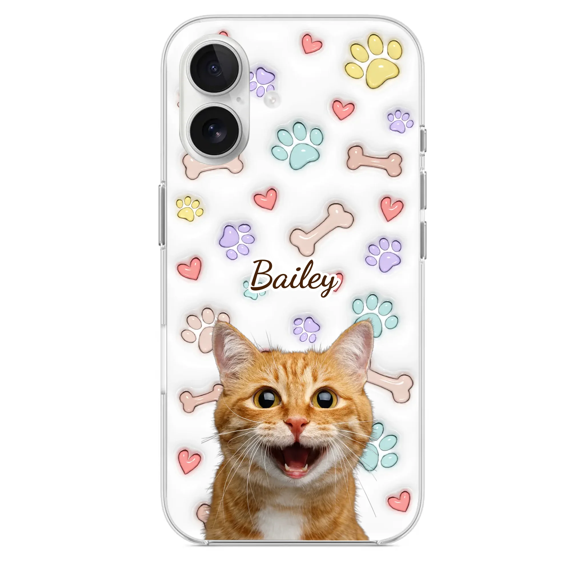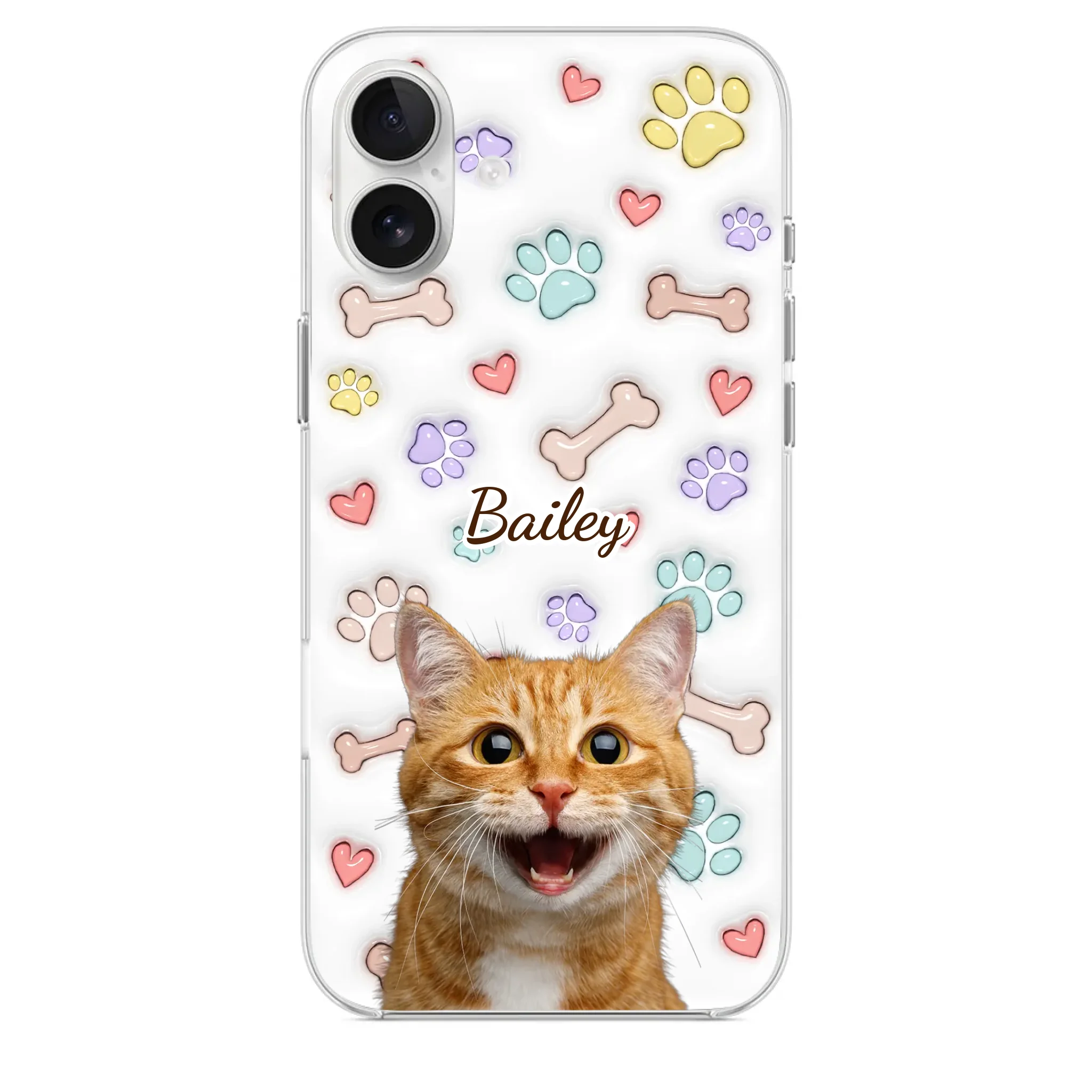 This is a clear phone case with a 3D inflated effect print, used to give the item a premium and deep look.