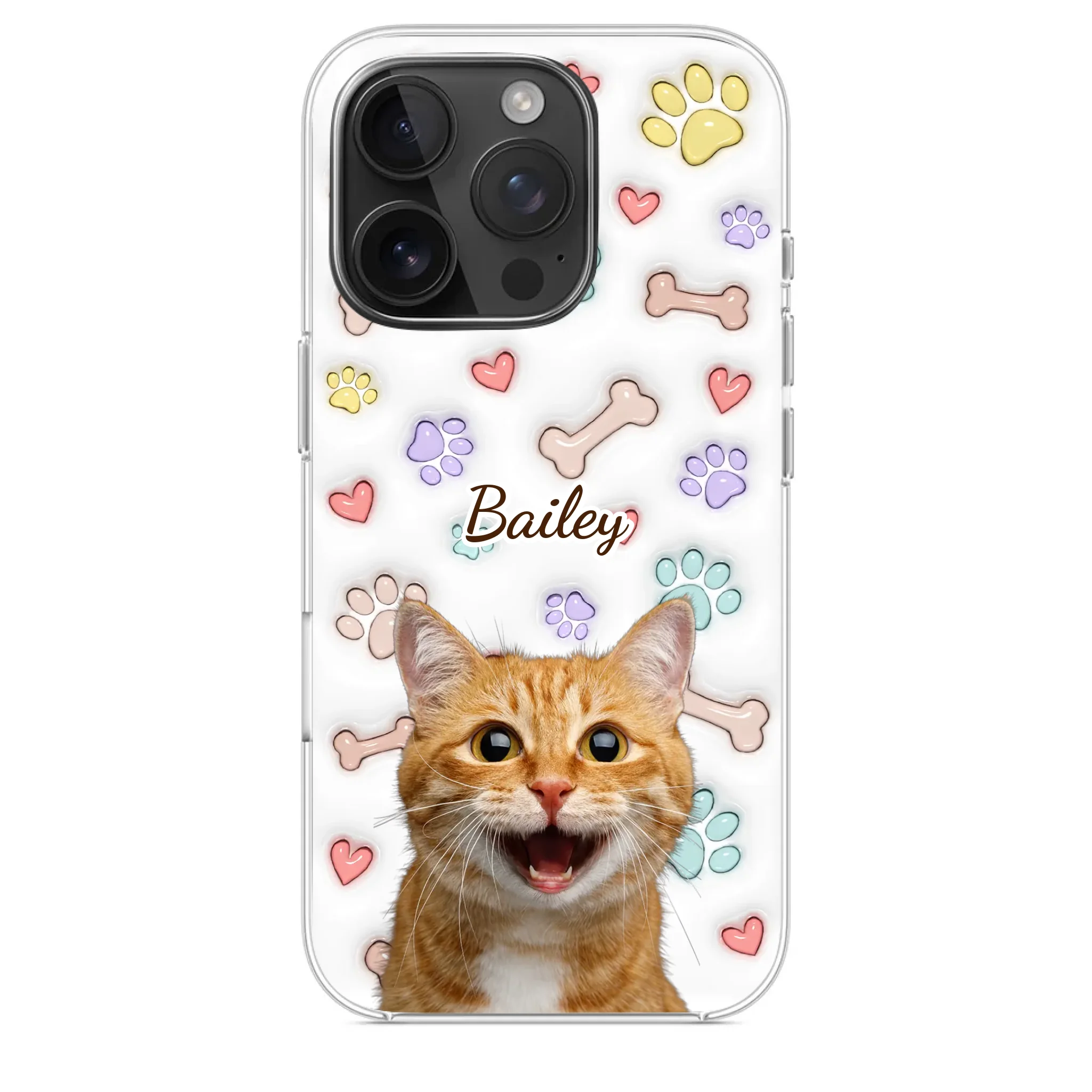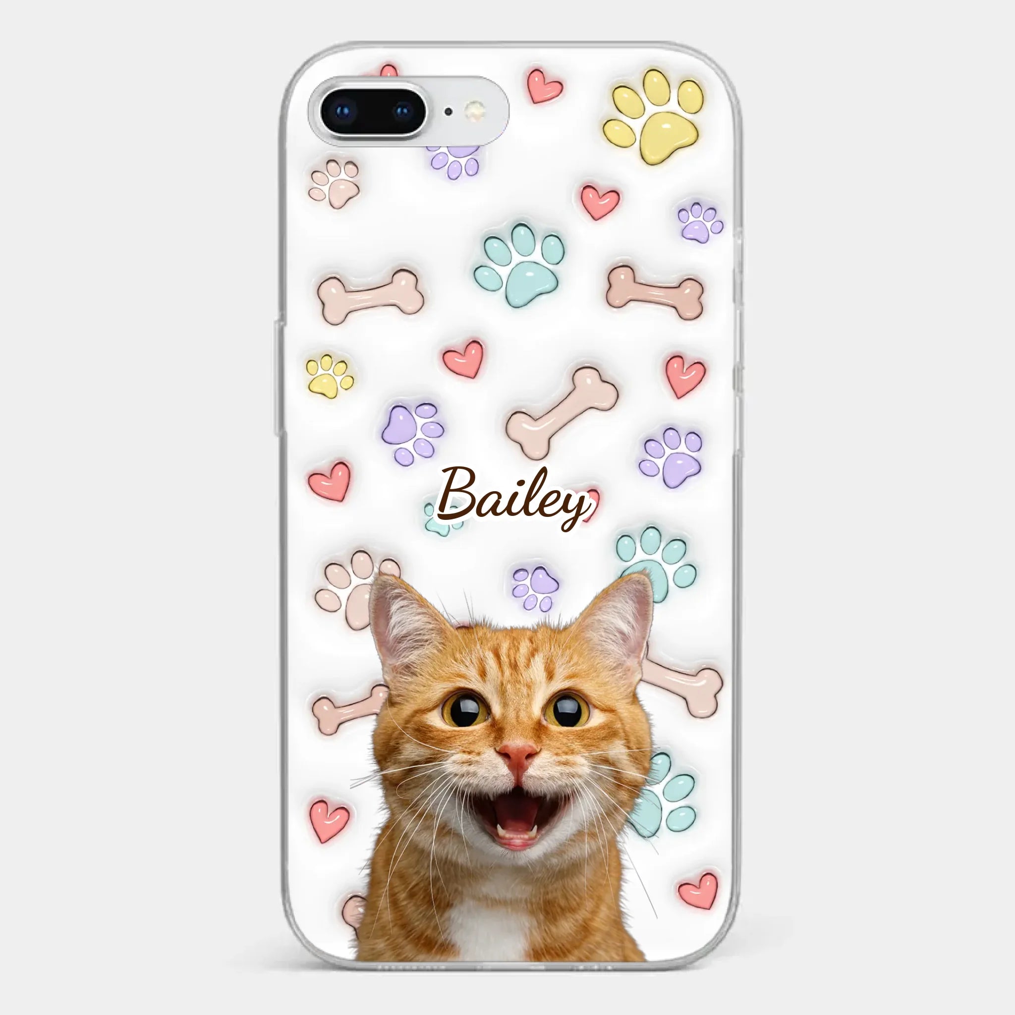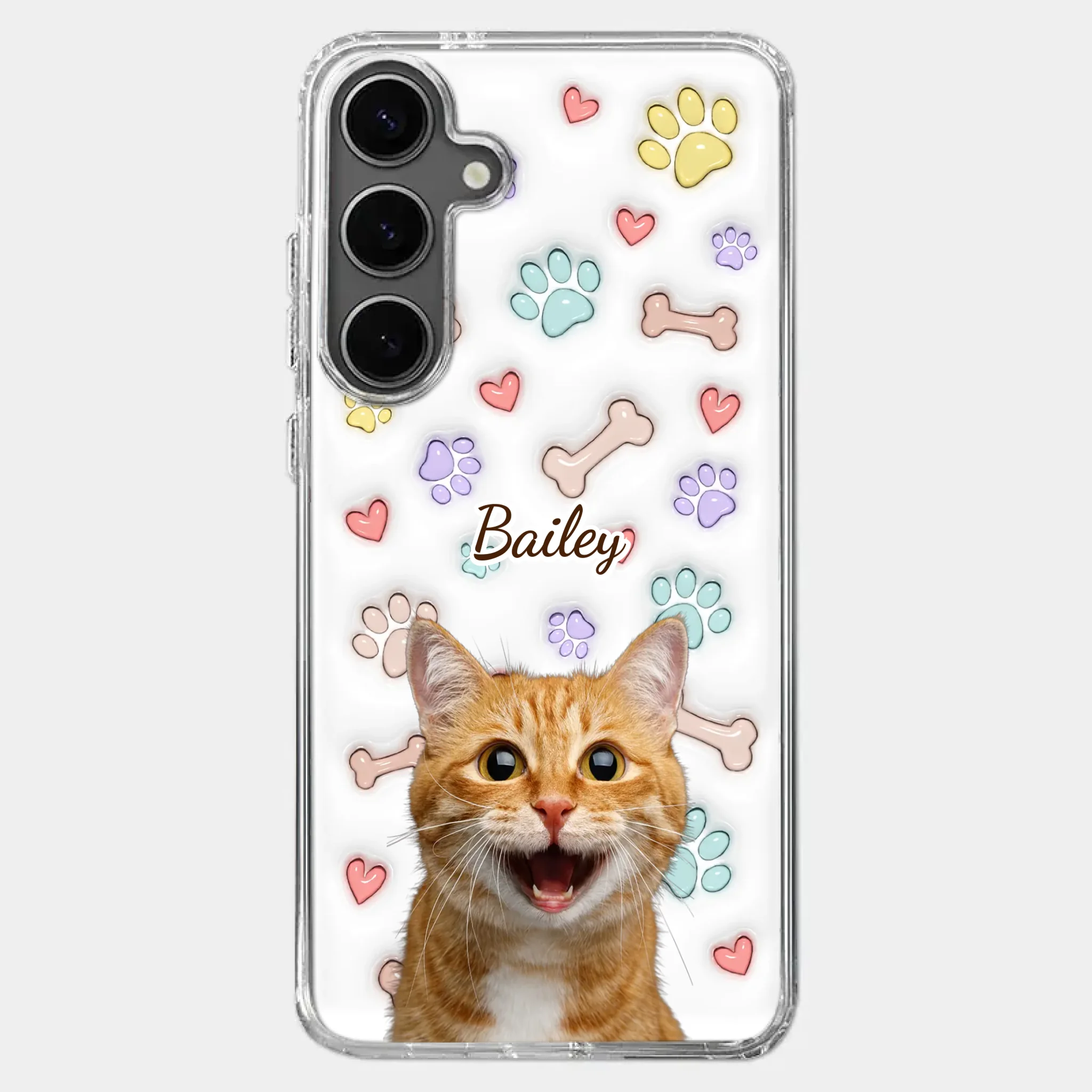 This is a clear phone case with a 3D inflated effect print, used to give the item a premium and deep look.