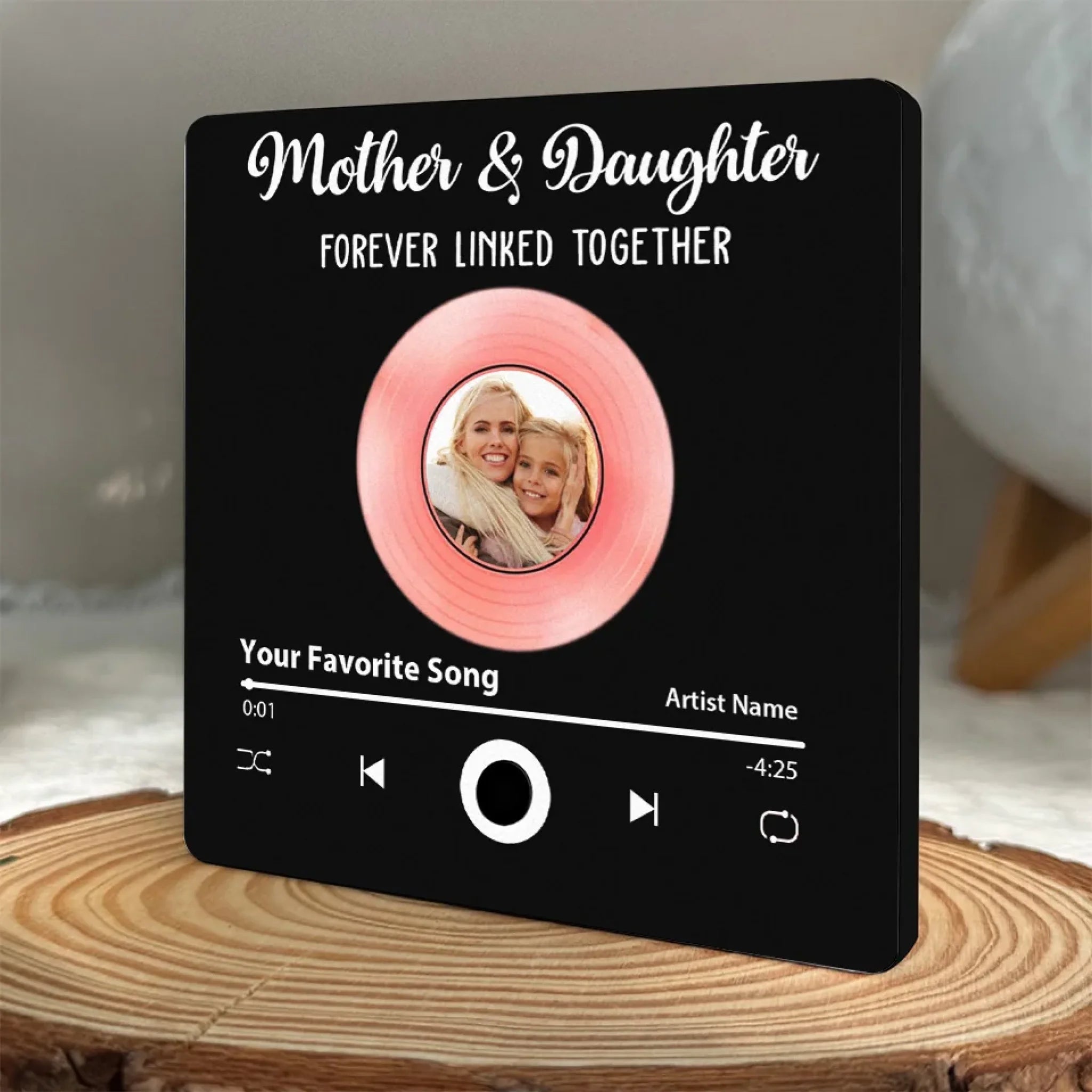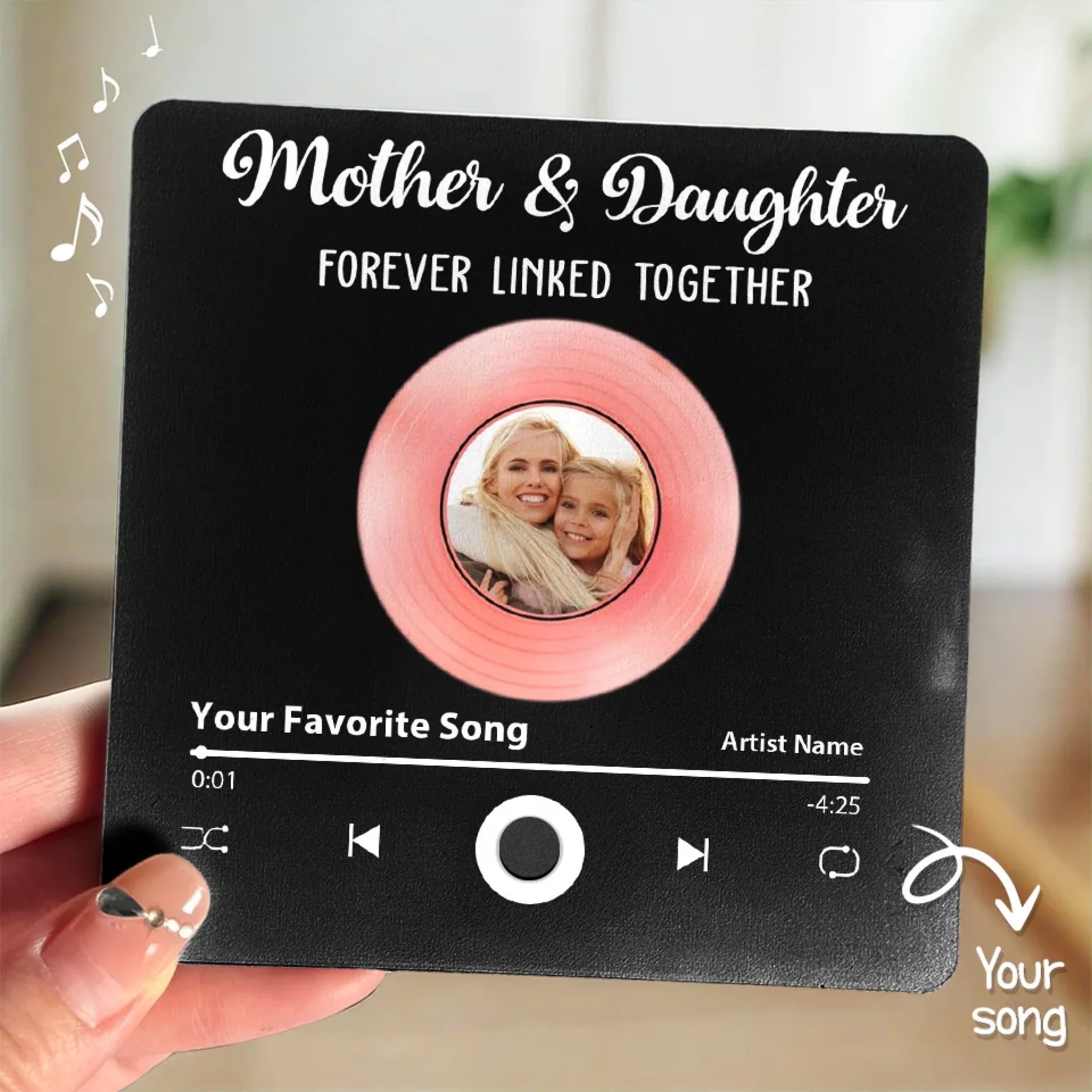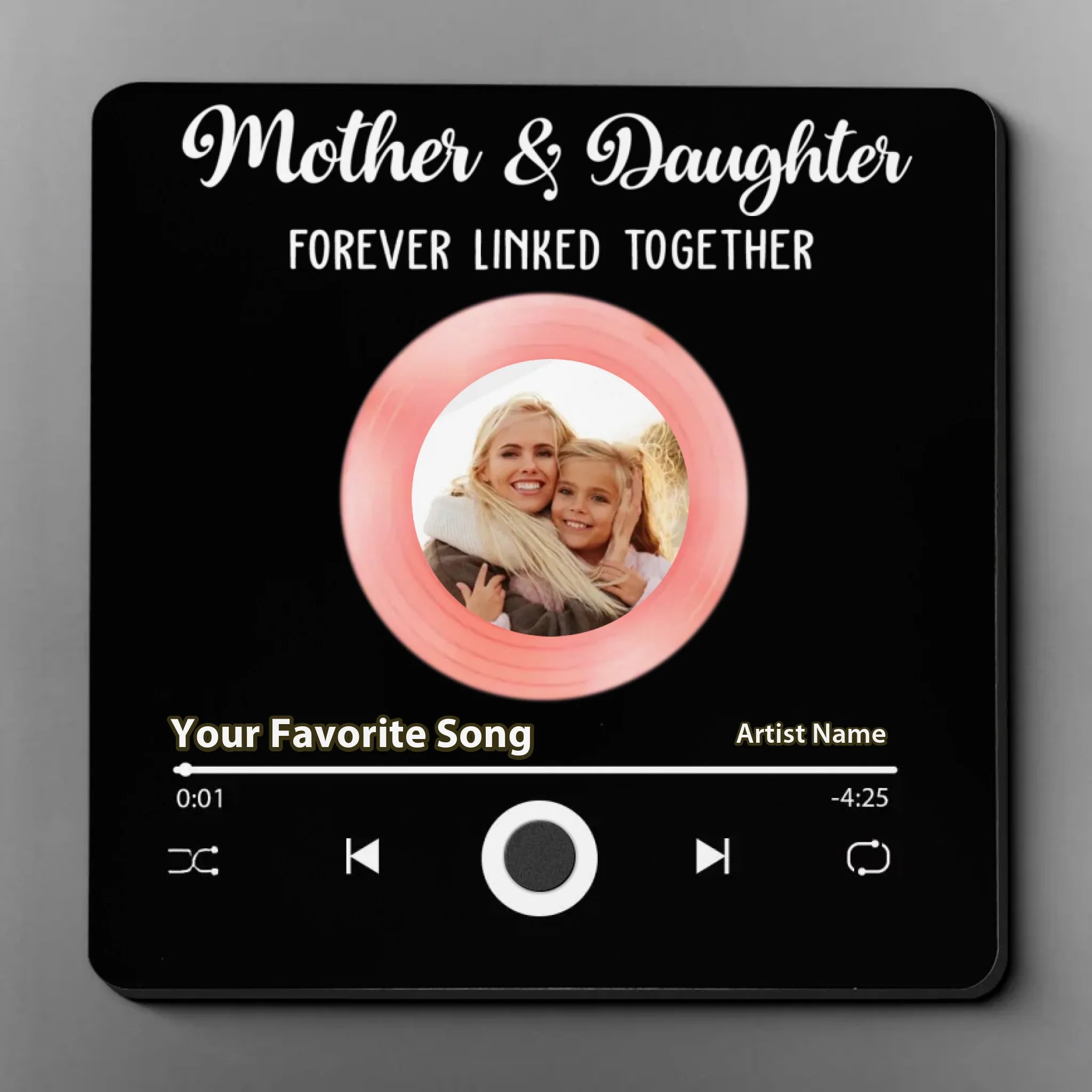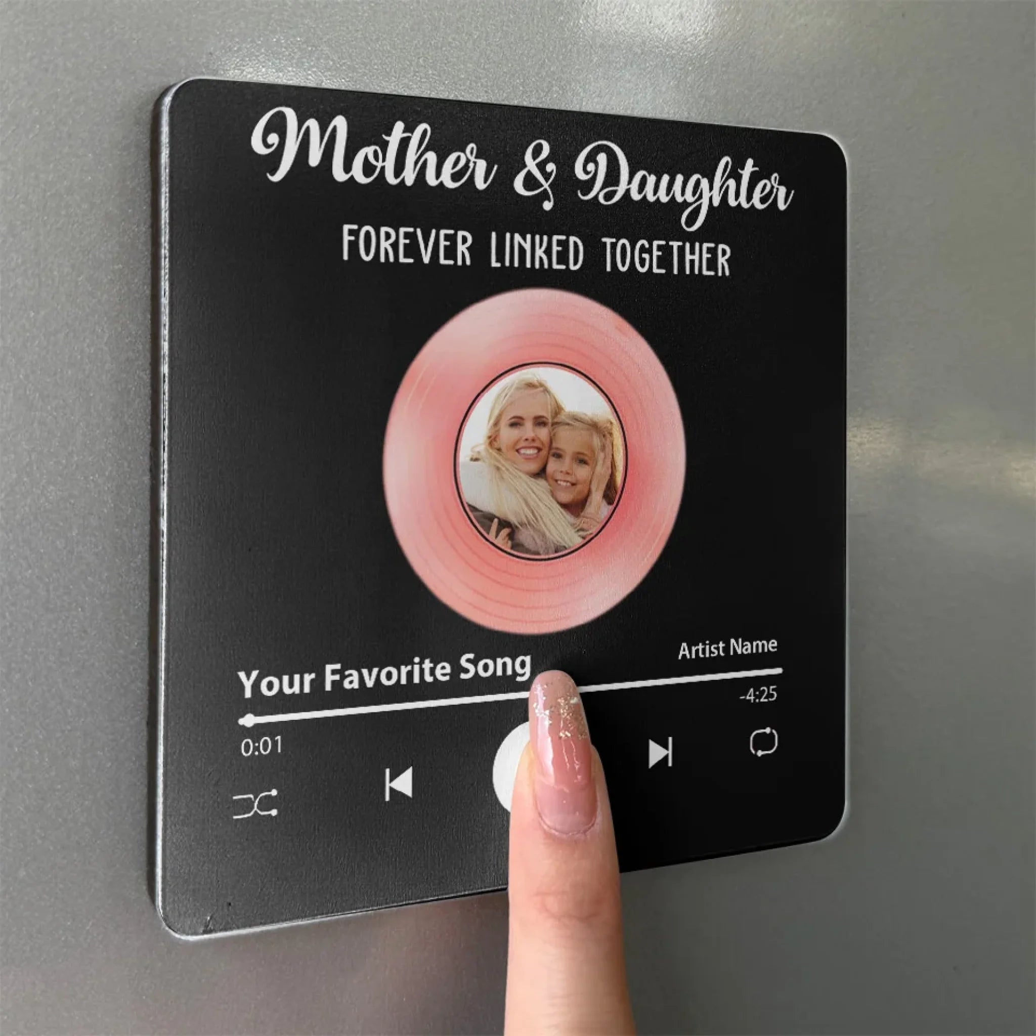 Custom Photo Mother And Daughter Forever Linked Together - Family Personalized Custom Music Fridge Magnet That Can Play Songs - Mother's Day Gift For Mom, Grandma