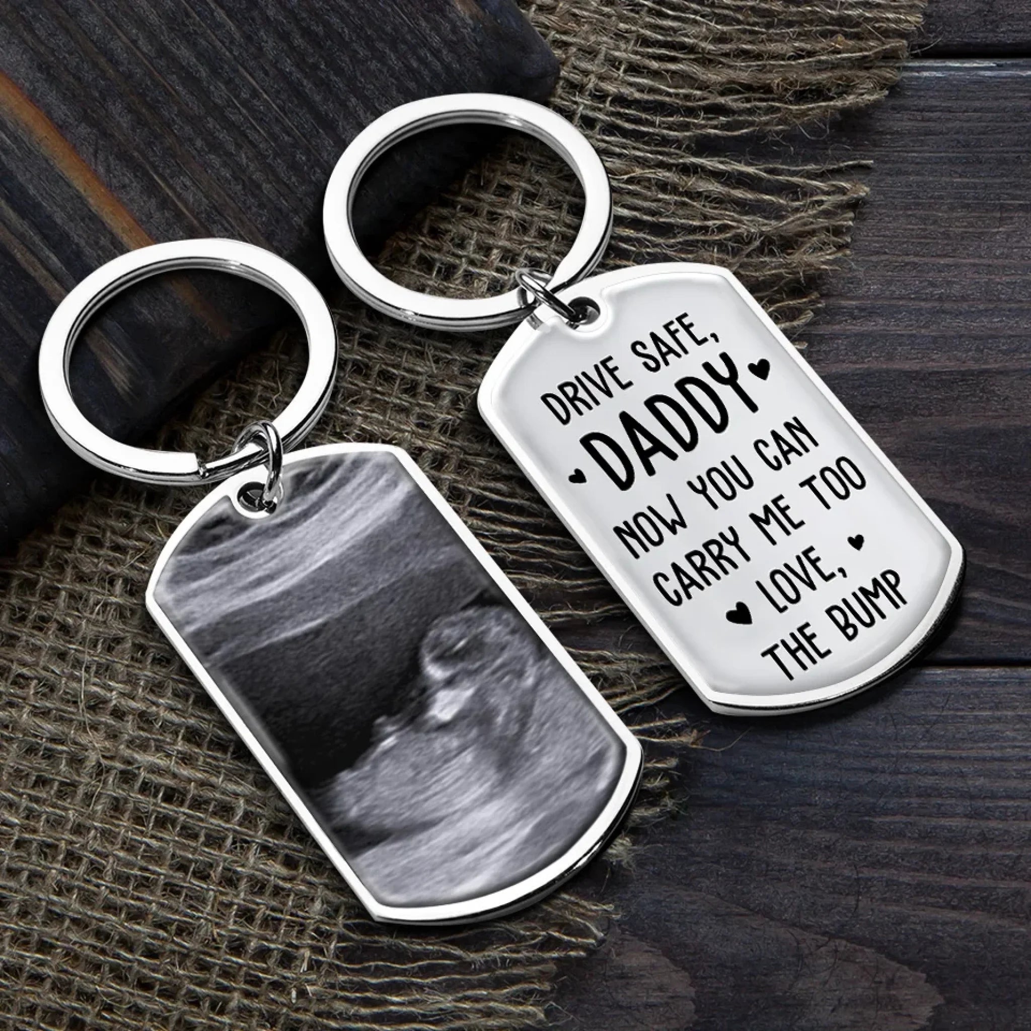 Custom Photo Now You Can Carry Me Too - Family Personalized Custom Keychain - Gift For Family Members, Baby Shower Gift