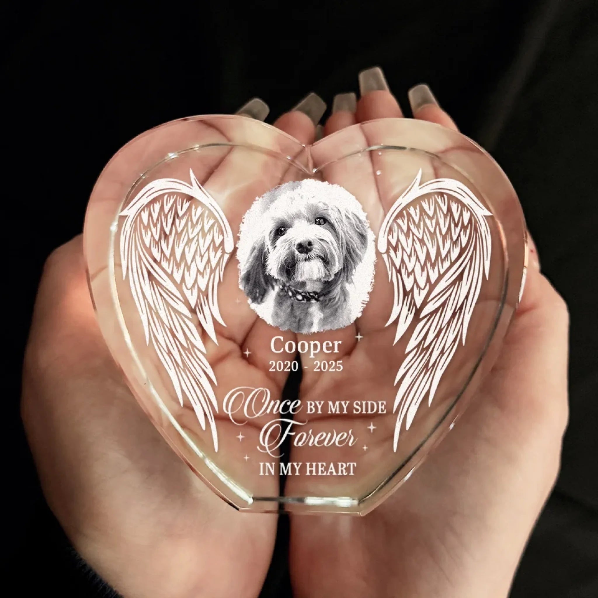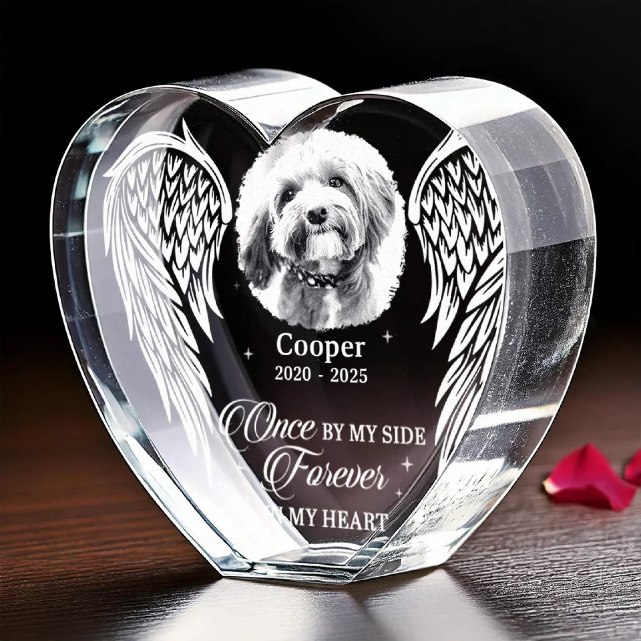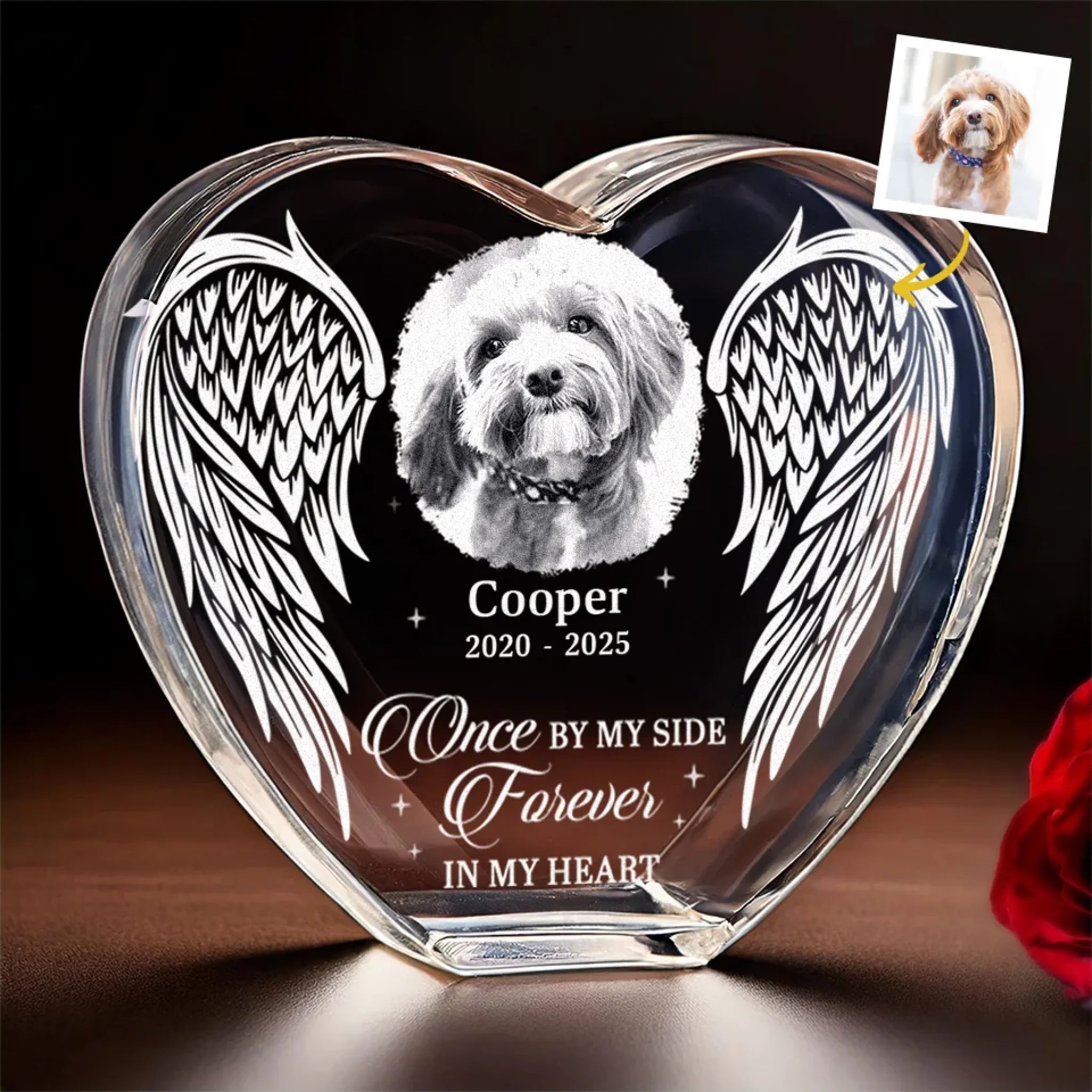 Custom Photo Once By My Side Forever In My Heart - Memorial Personalized Custom Engraved 3D Crystal Heart Shaped - Sympathy Gift For Pet Owners, Pet Lovers