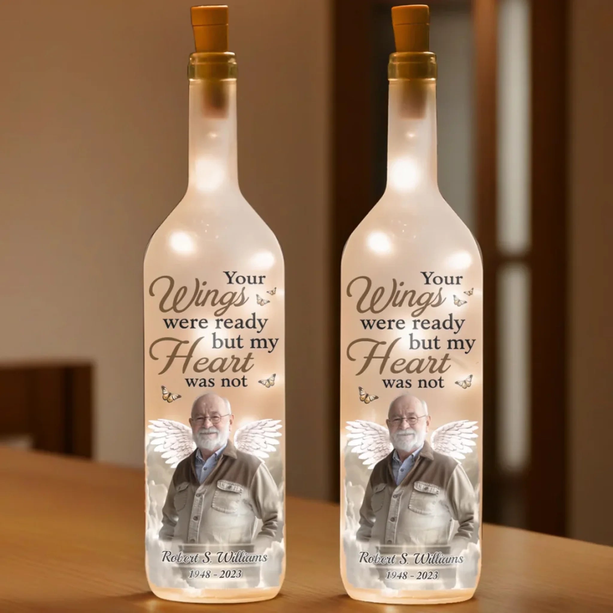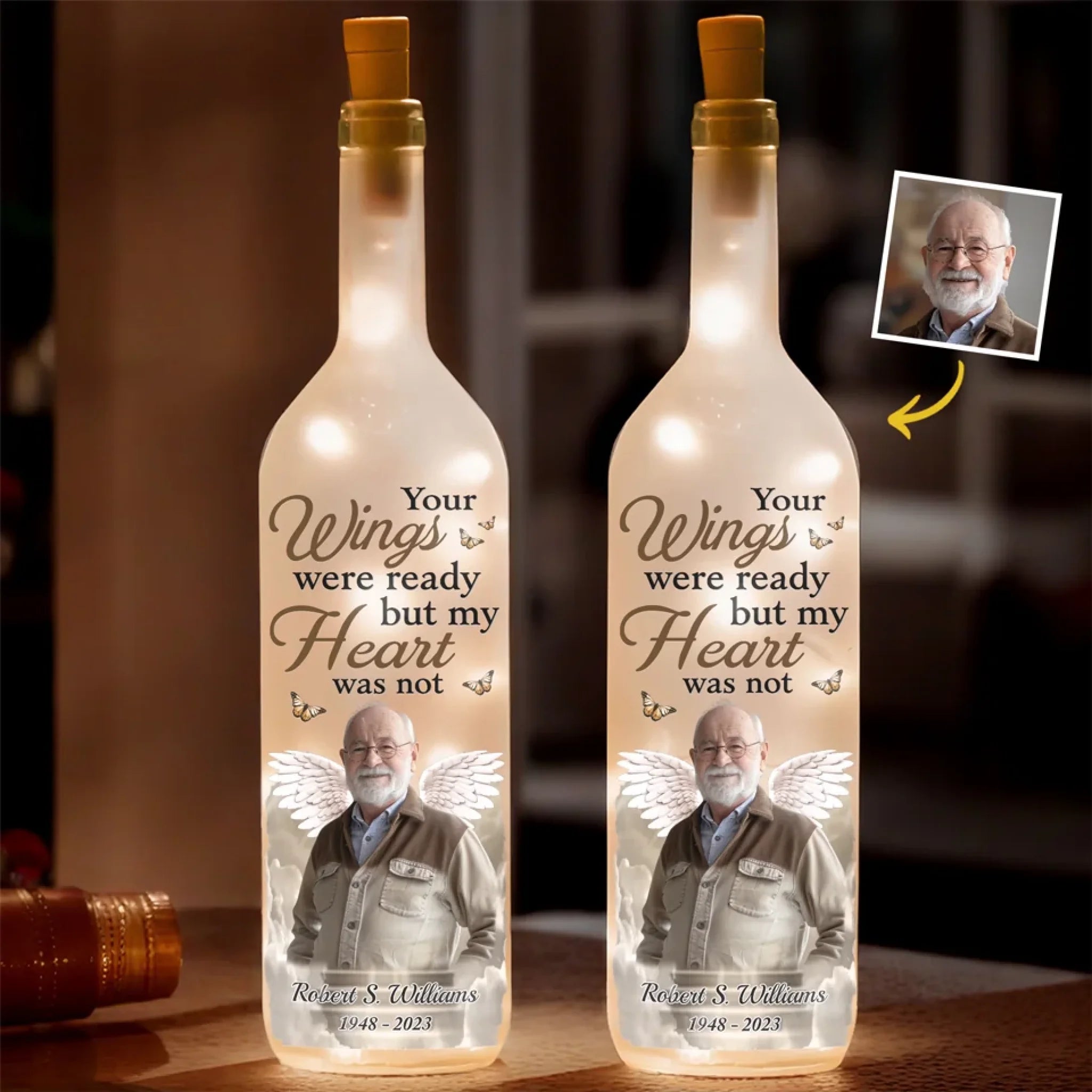 Custom Photo Our Hearts Are Forever With You - Memorial Personalized Custom Bottle Lamp - Sympathy Gift For Family Members