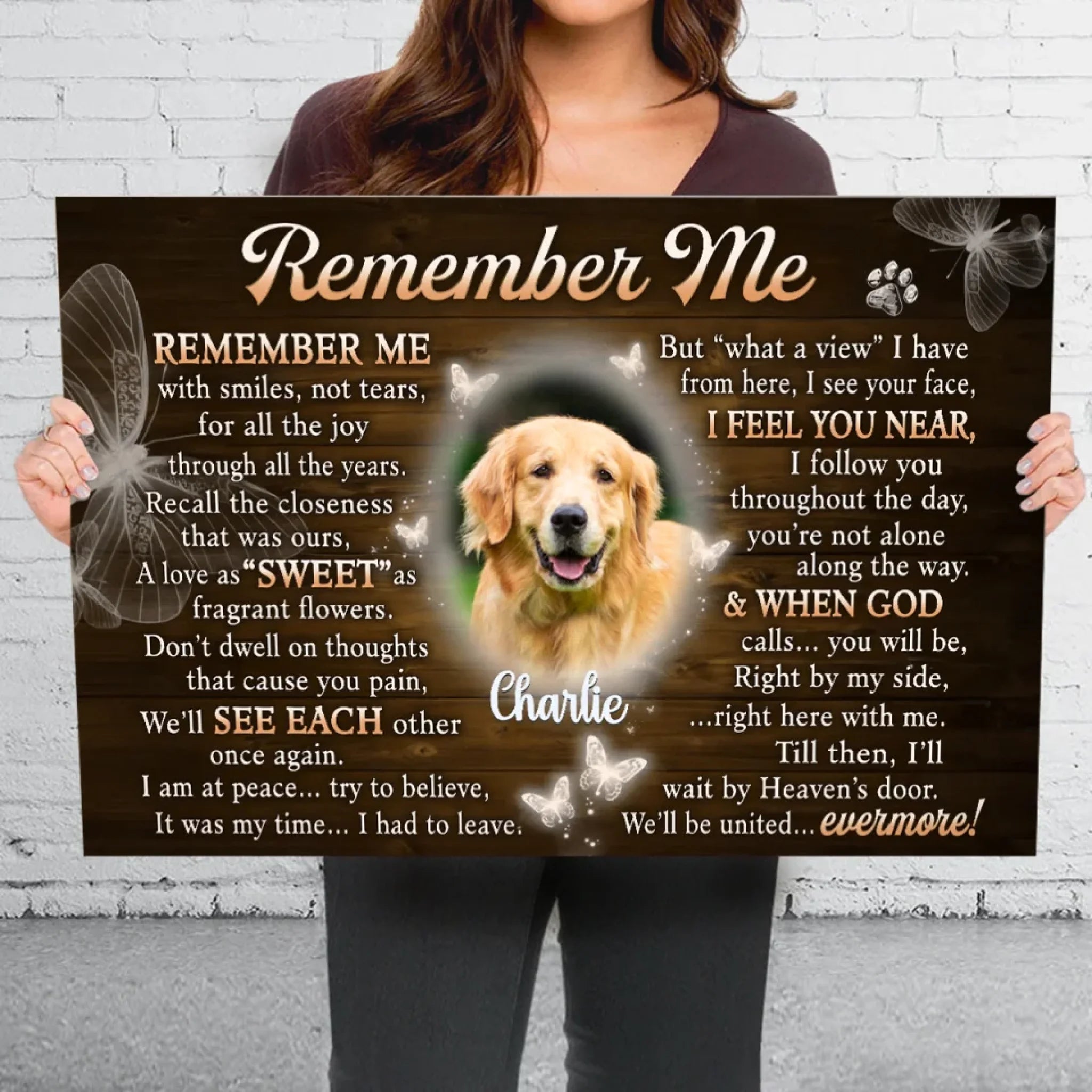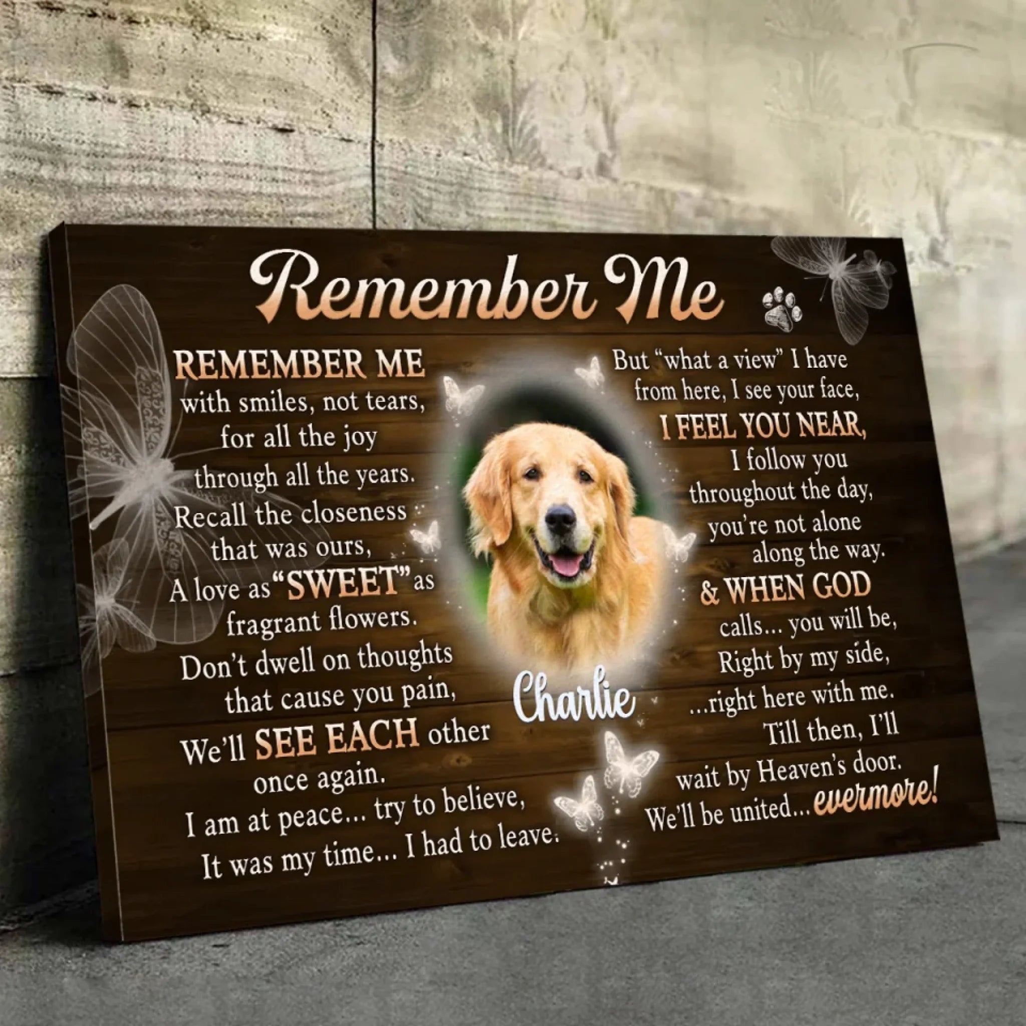 Custom Photo Remember Me With Smiles - Memorial Personalized Custom Horizontal Canvas - Sympathy Gift For Pet Owners, Pet Lovers