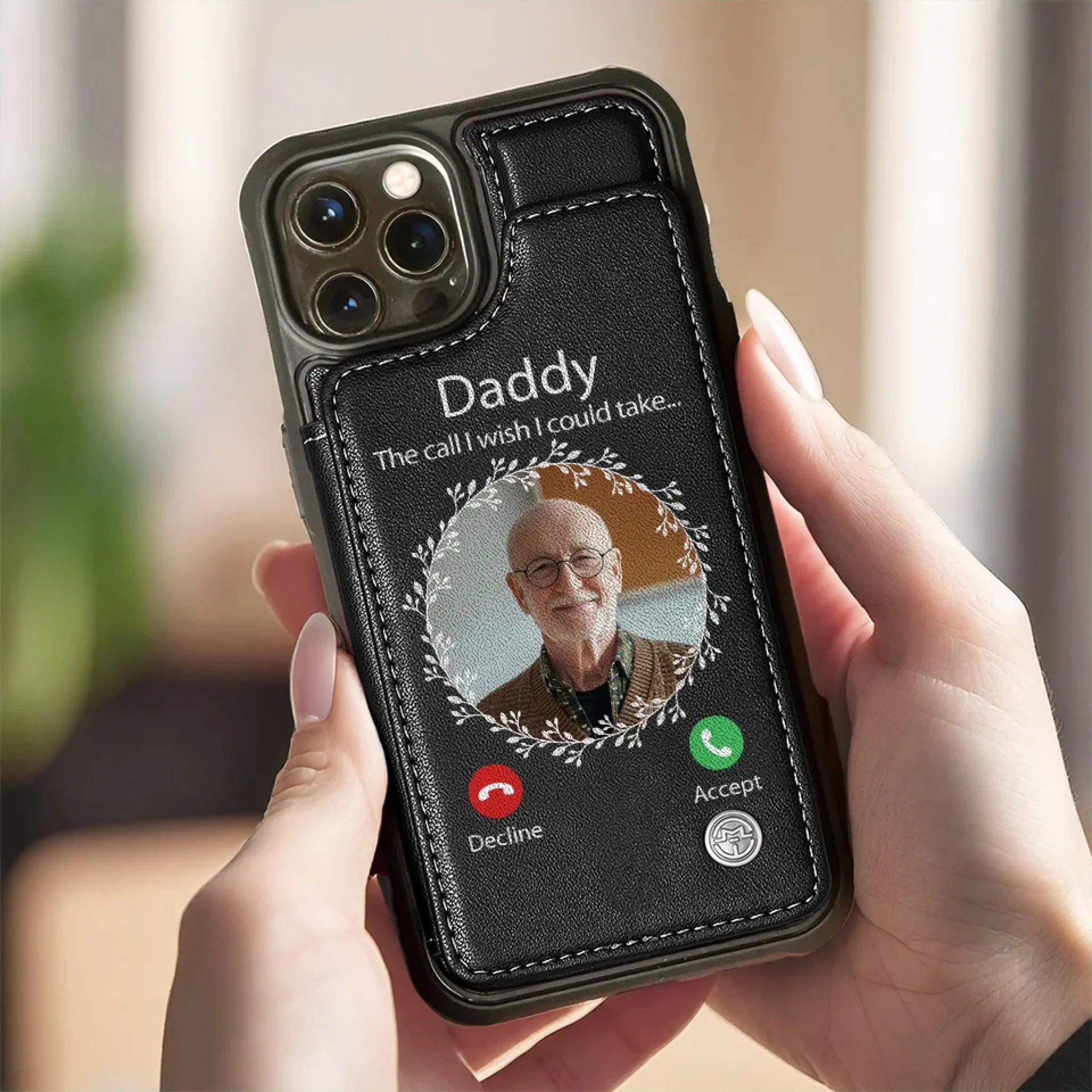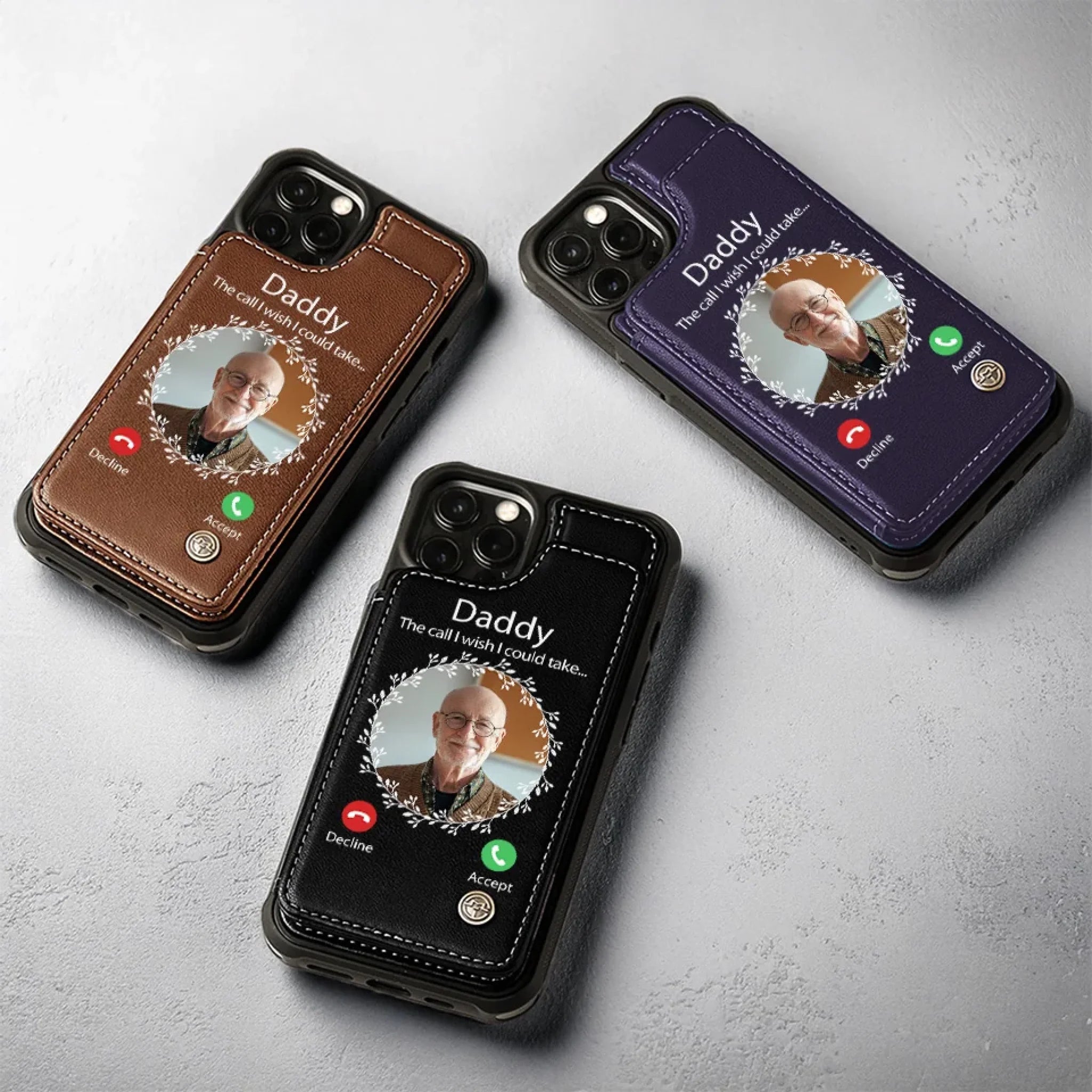 Custom Photo The Call I Wish I Could Take - Memorial Personalized Custom Leather Flip Wallet Phone Case - Sympathy Gift For Family Members