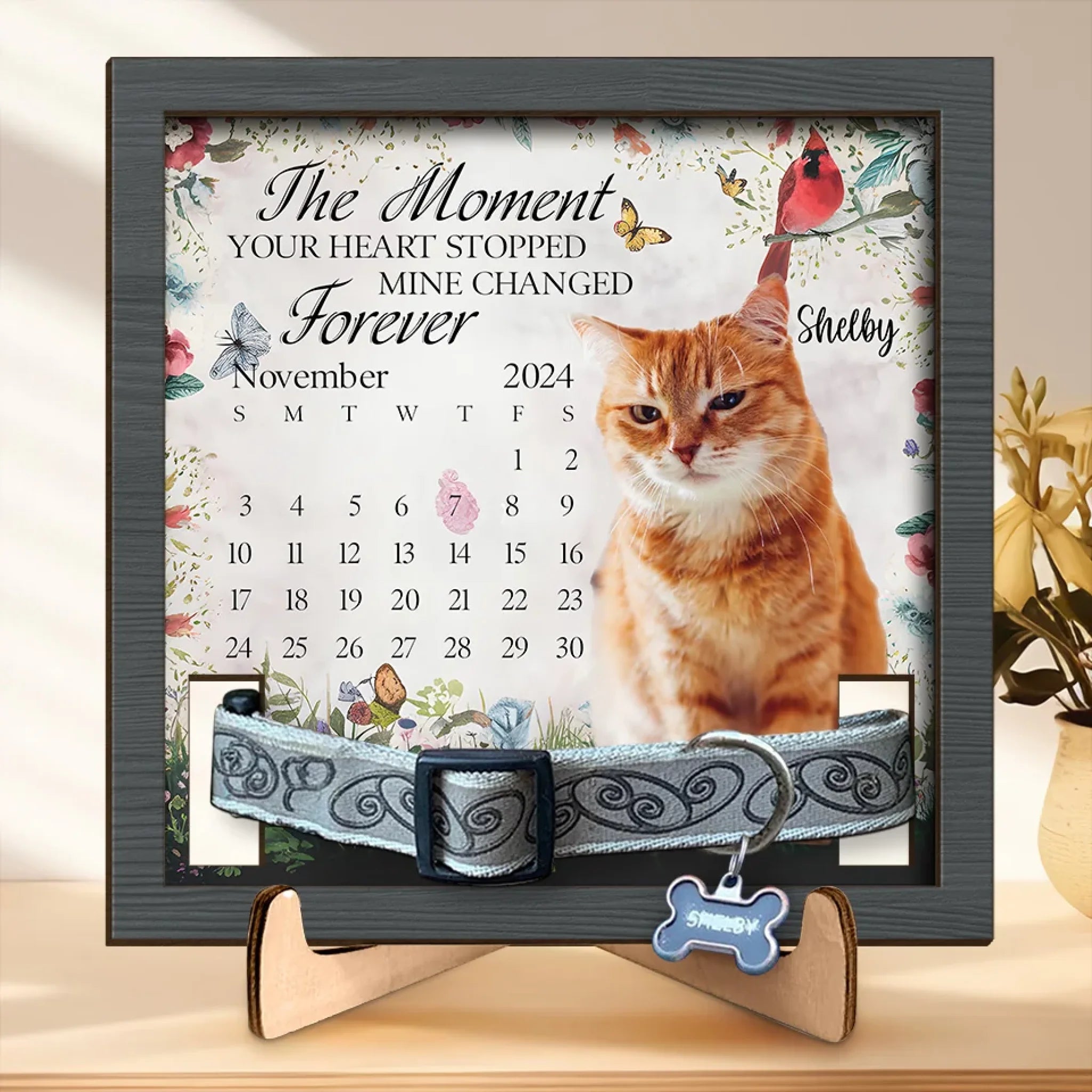 Custom Photo The Moment Your Heart Stopped, Mine Changed Forever - Memorial Personalized Custom Pet Loss Sign, Collar Frame - Sympathy Gift For Pet Owners, Pet Lovers