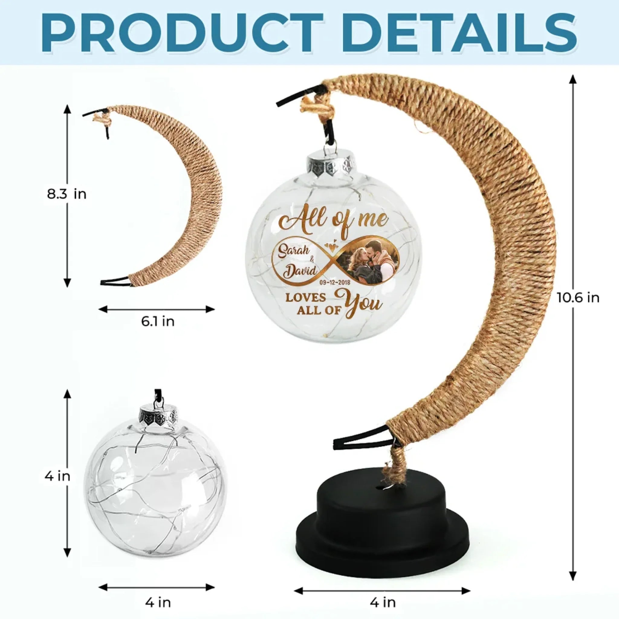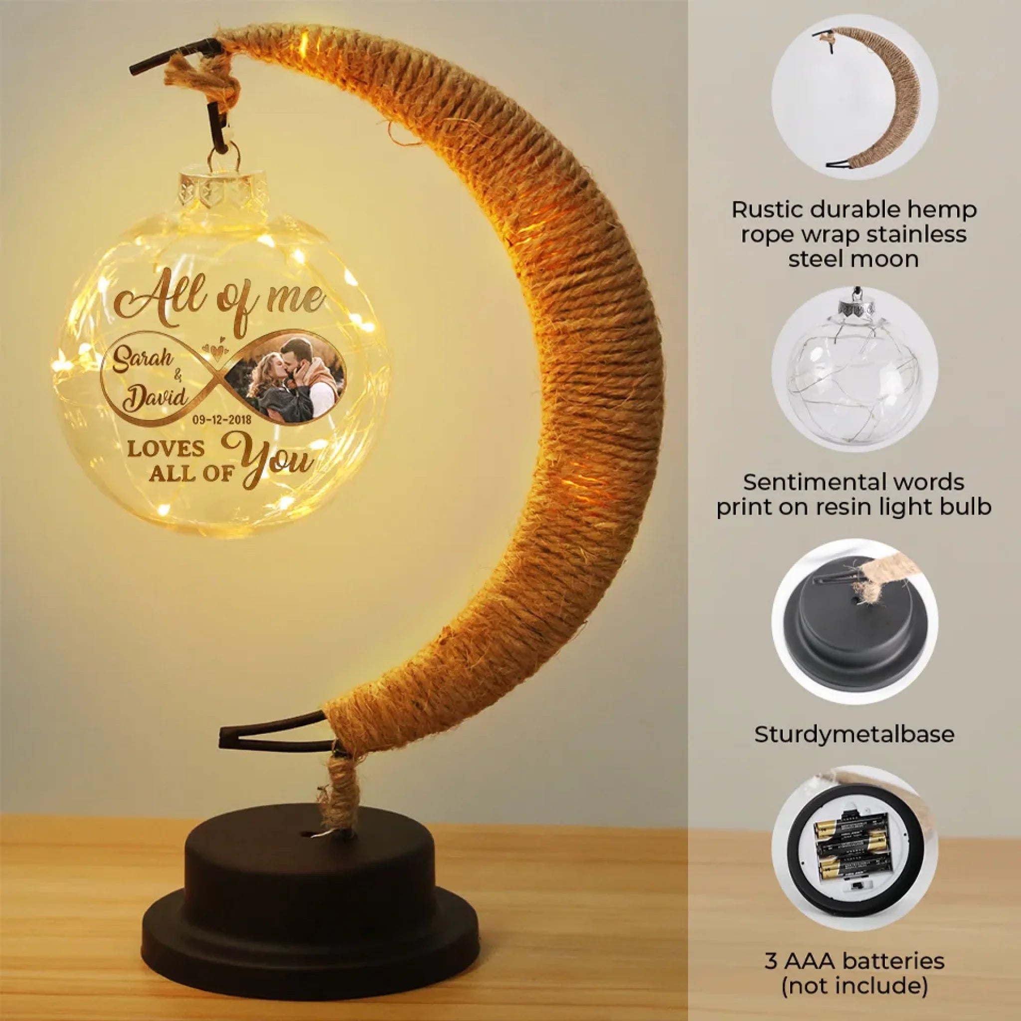 The moon lamp light is a stunning decorative piece that combines elegance and warmth, creating a cozy atmosphere in your home. Designed with a crescent moon, this lamp features a delicate globe filled with charming lights, creating a soft, ambient glow. This item can serve as an ideal gift on any occasion. Surprise your loved ones and let them enjoy unforgettable memories with this one-of-a-kind gift.