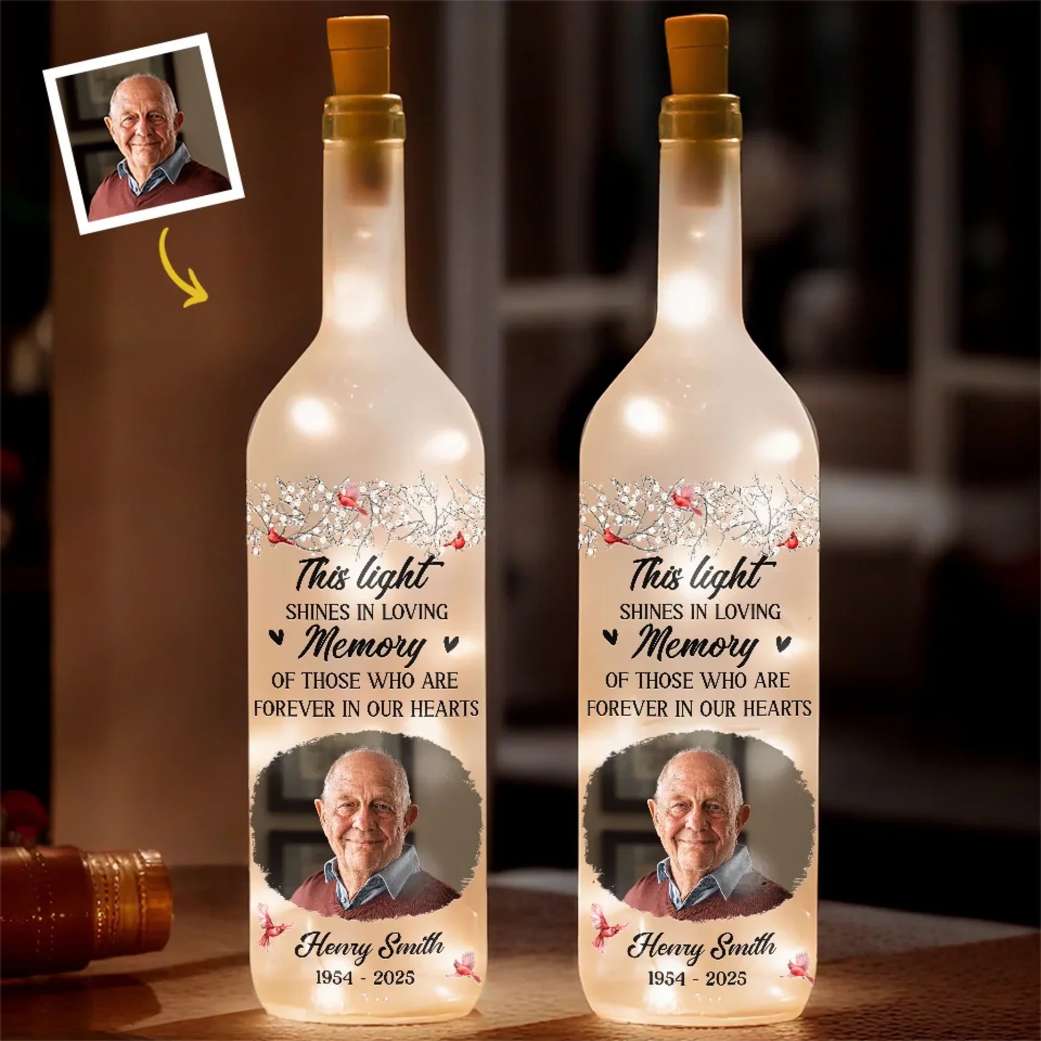 Custom Photo Time Passes, But Love Remains - Memorial Personalized Custom Bottle Lamp - Sympathy Gift For Family Members