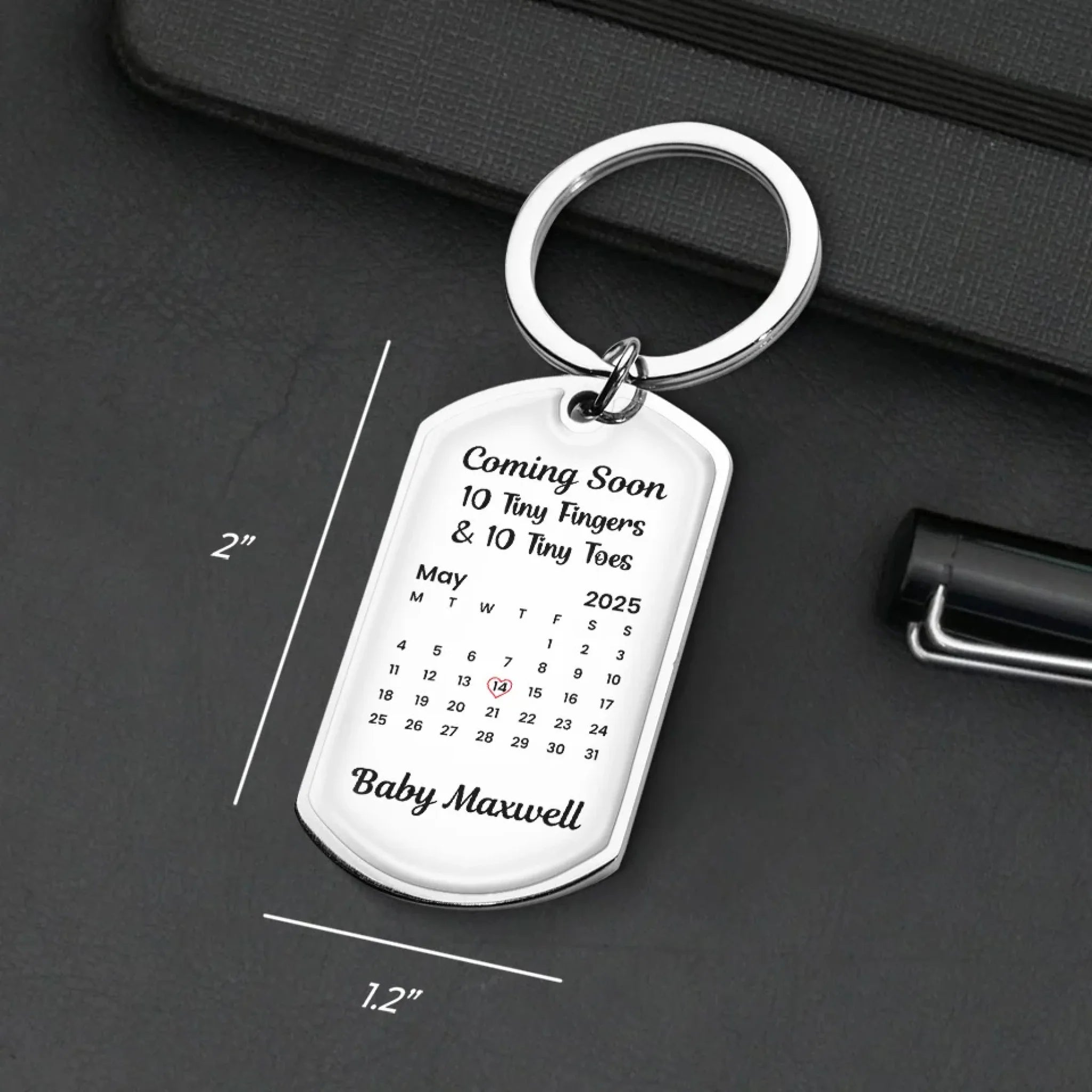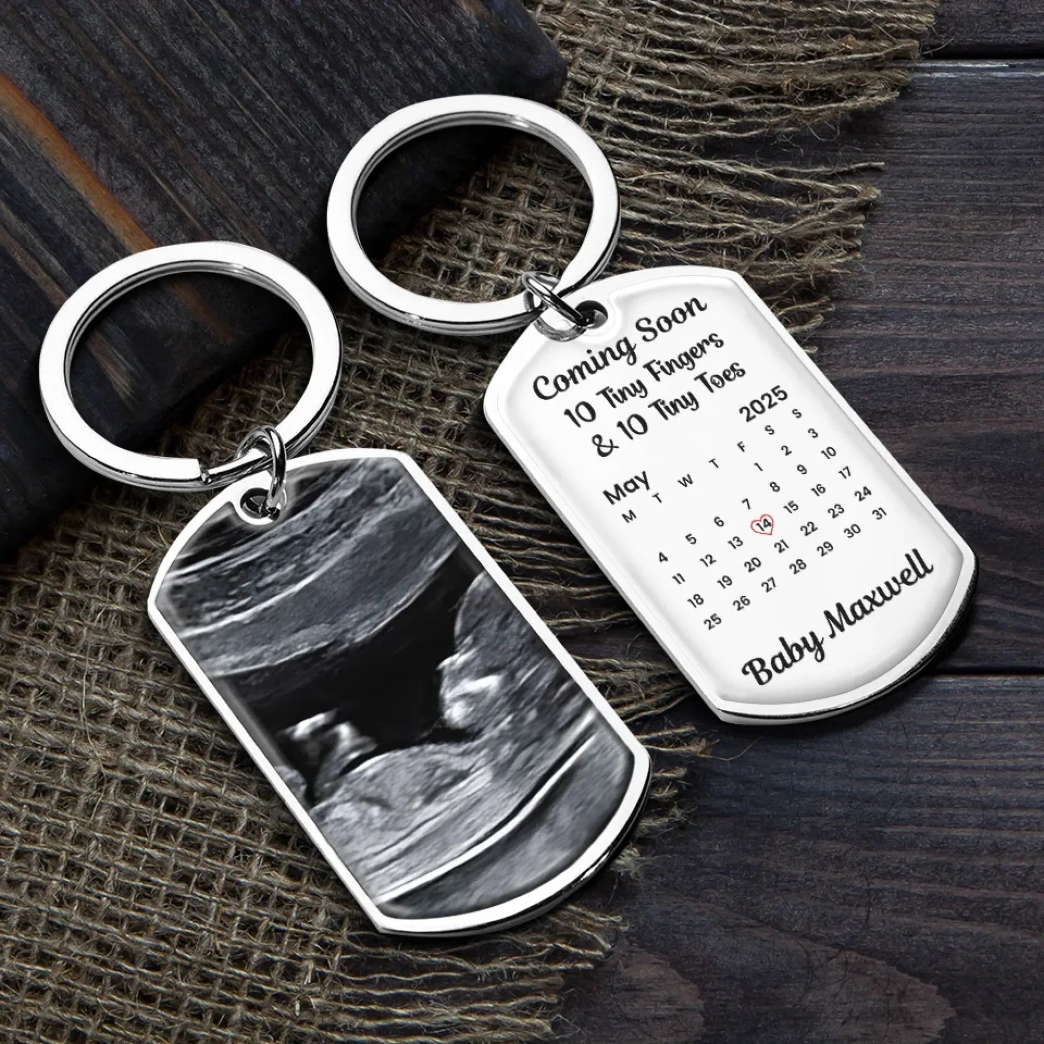 Custom Photo Waiting For The Sweetest Hello - Family Personalized Custom Keychain - Mother's Day, Baby Shower Gift, Gift For First Mom