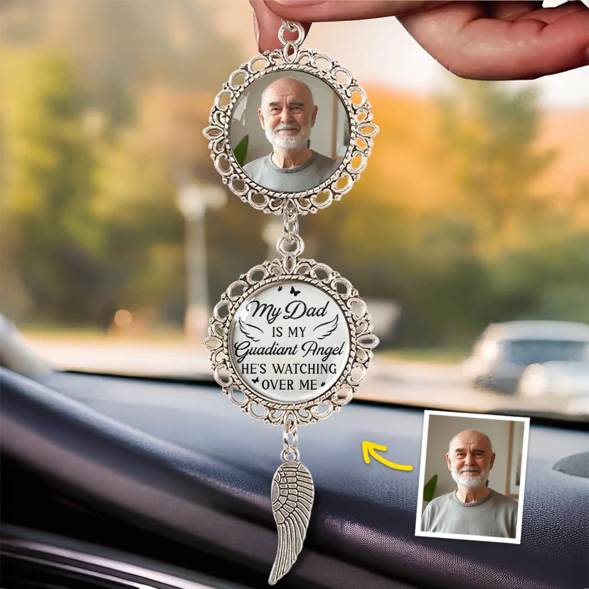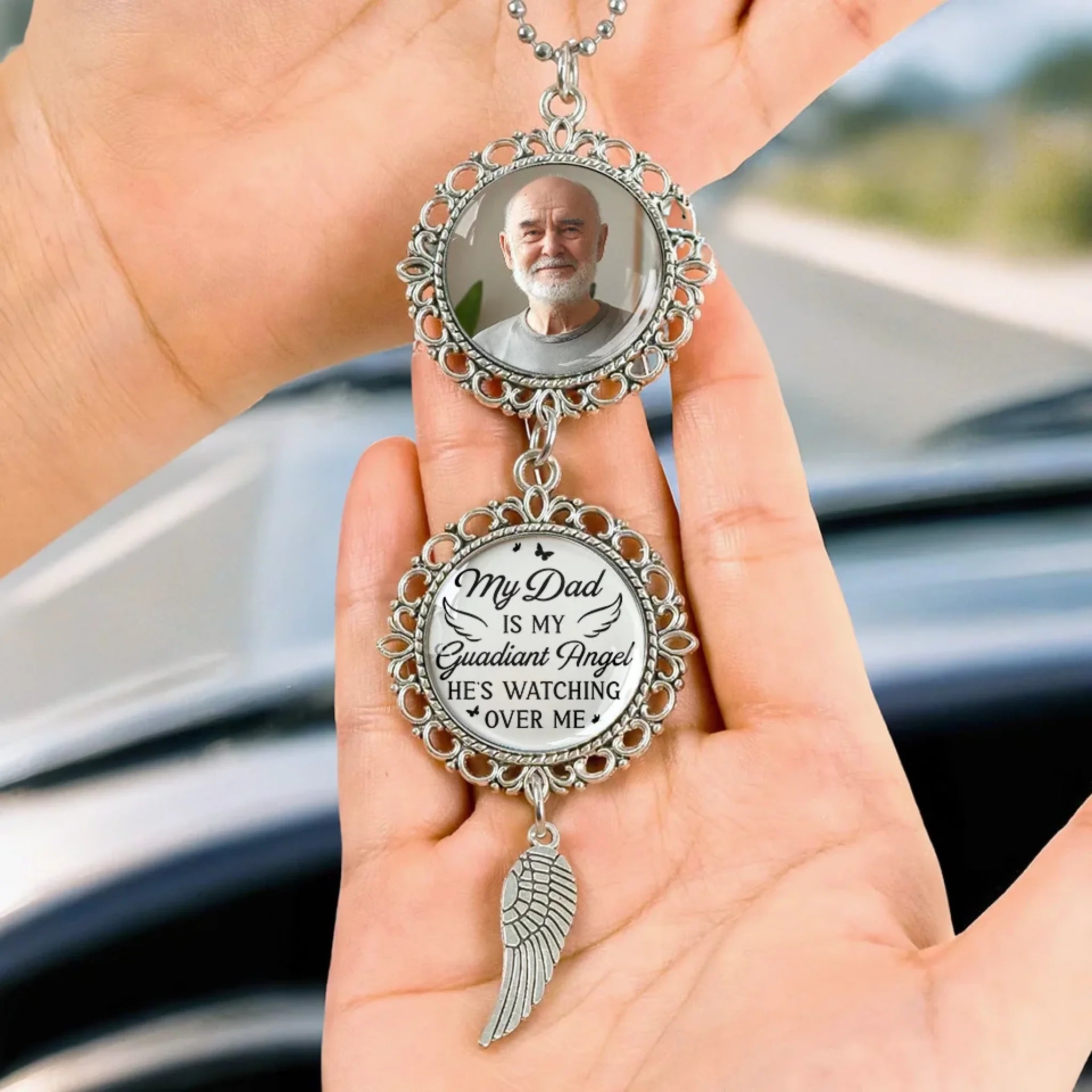 Delivered!If you want to find a car decoration that can show something unique, this car ornament is the best choice. It can be hung on the rearview mirror and serve as a mini gallery of memories that travels with the owner on every drive. This item is suitable for all occasions, so surprise your beloved ones with such cute miniature and let it make them smile every day.