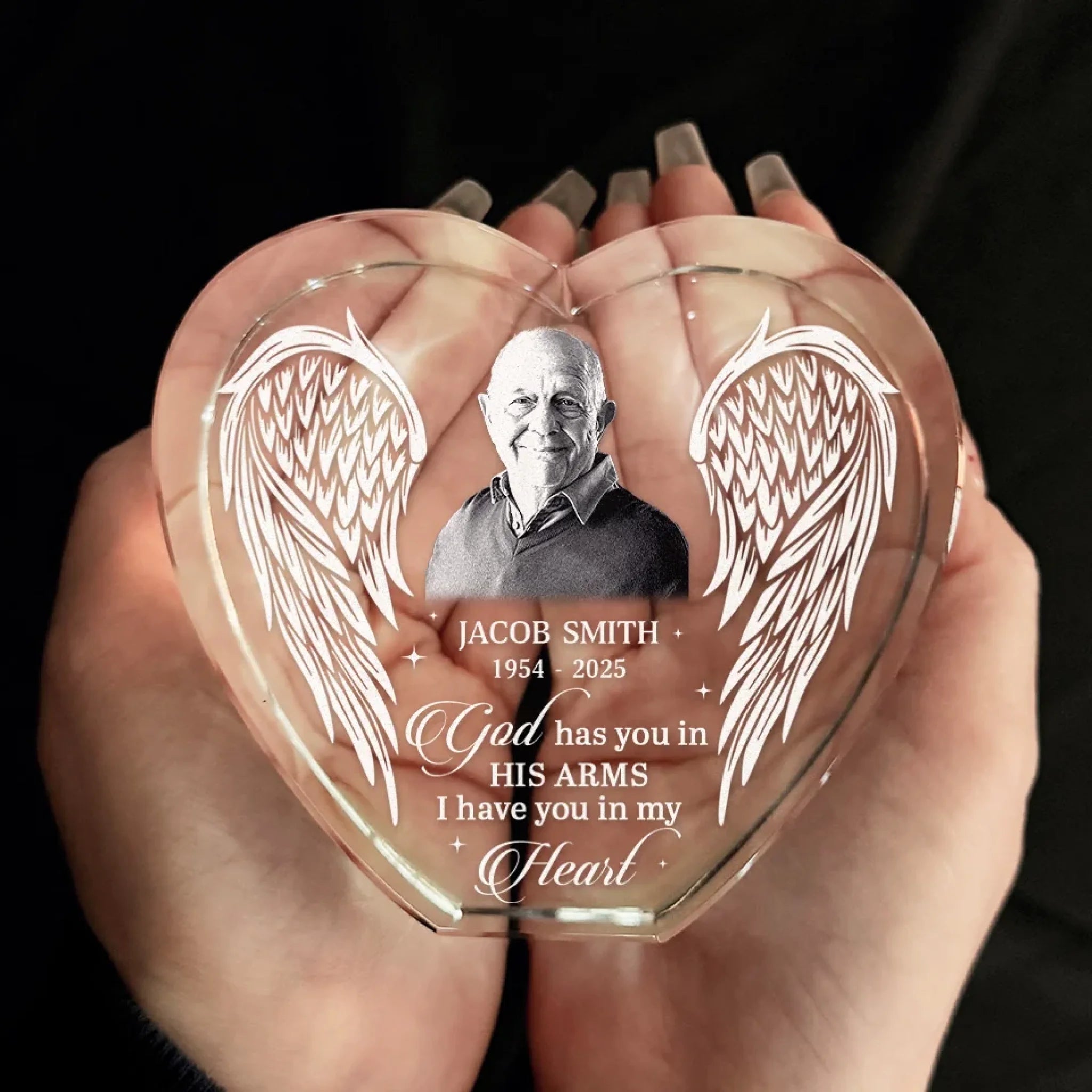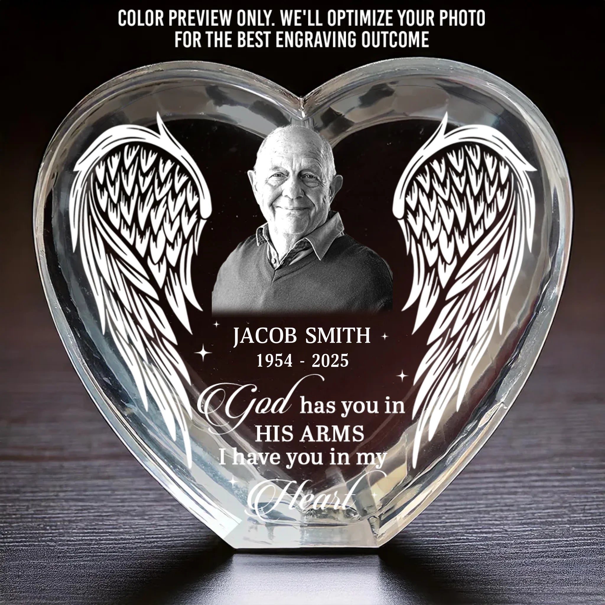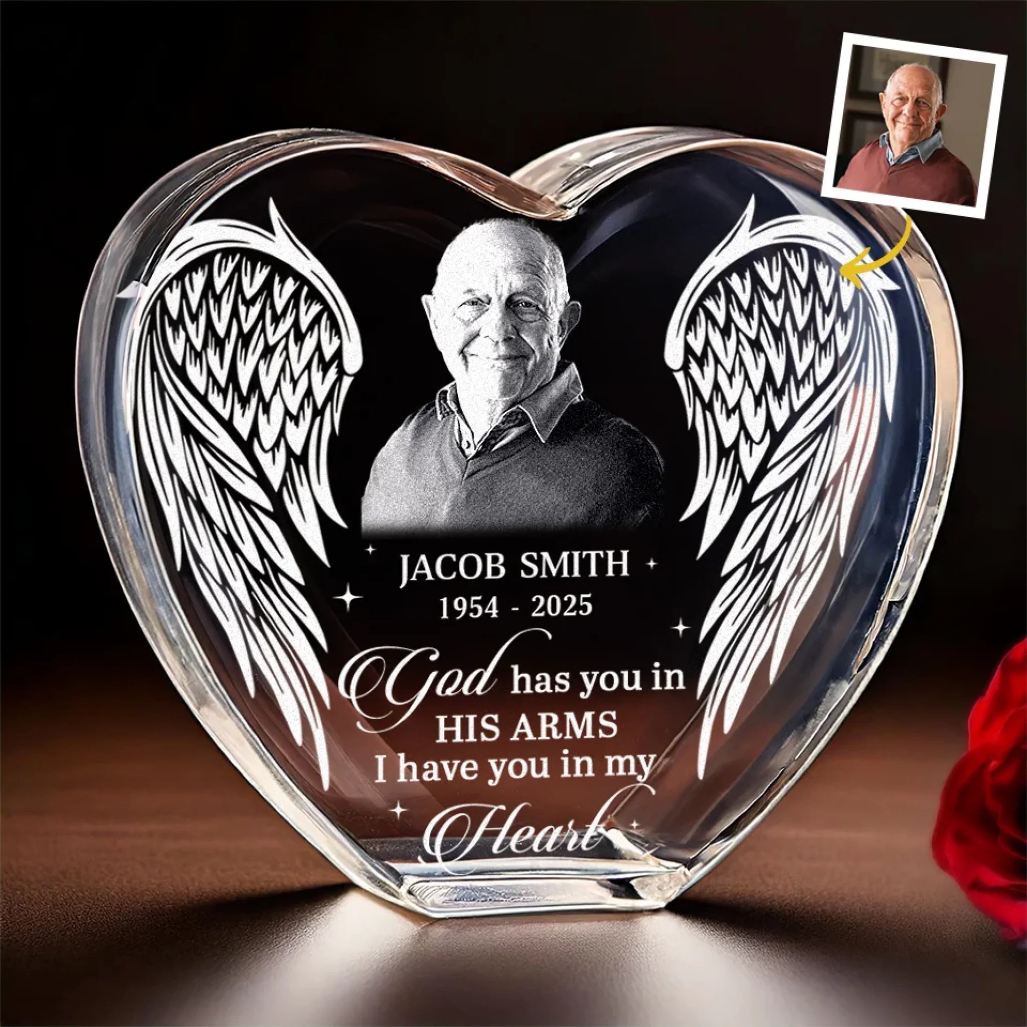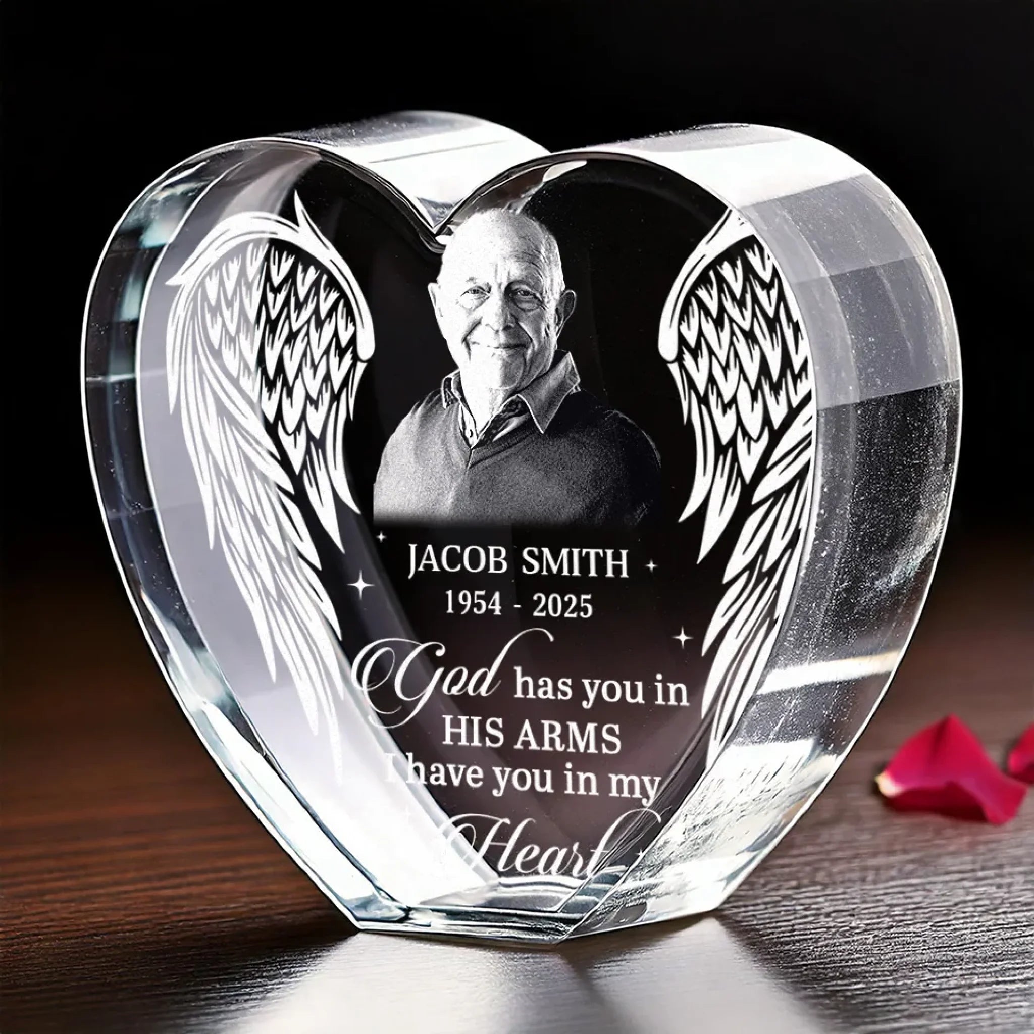 Custom Photo Your Wings Were Ready But My Heart Was Not - Memorial Personalized Custom Engraved 3D Crystal Heart Shaped - Sympathy Gift For Family Members