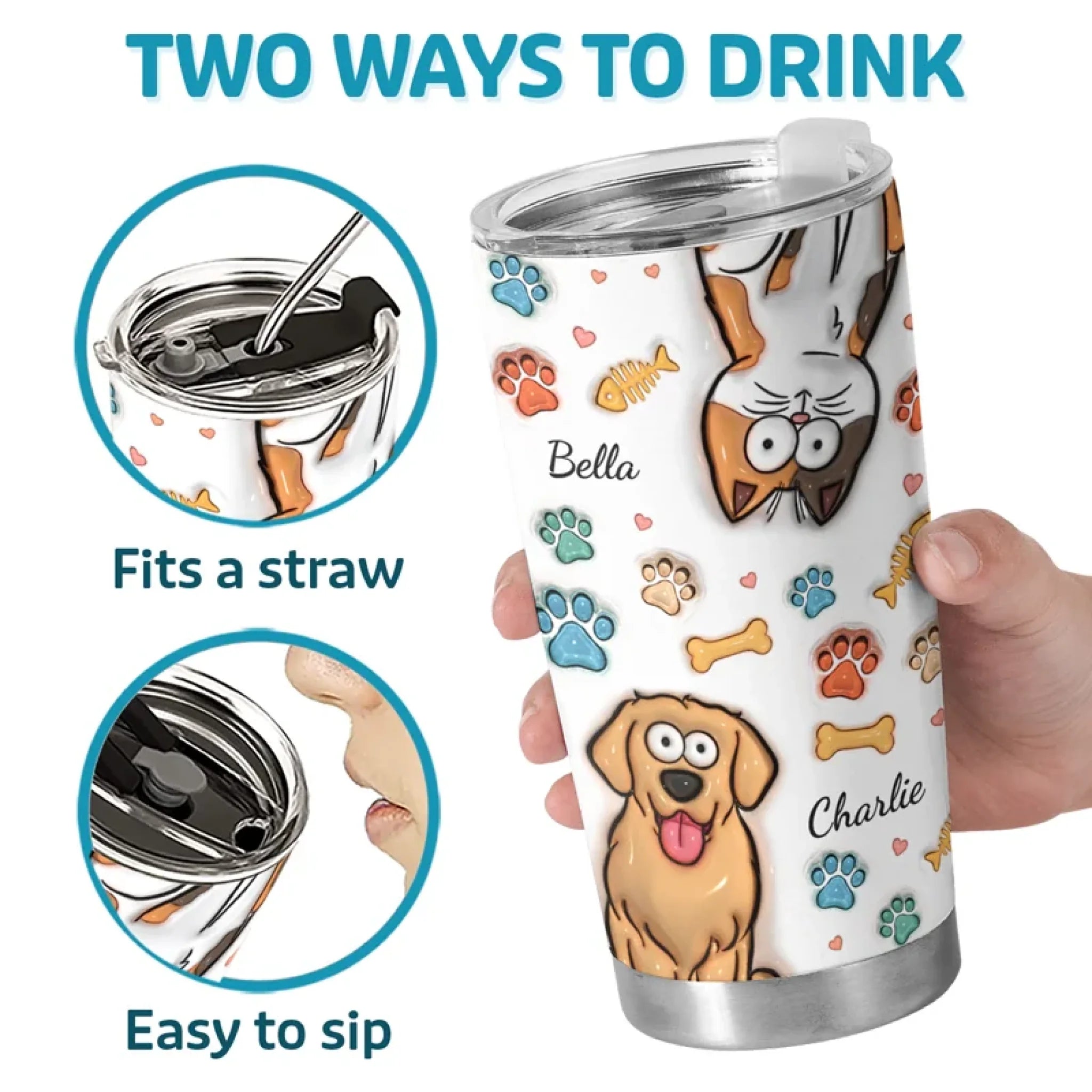 Cuteness Overload In Every Sip - Dog & Cat Personalized Custom 3D Inflated Effect Printed Tumbler - Gift For Pet Owners, Pet Lovers