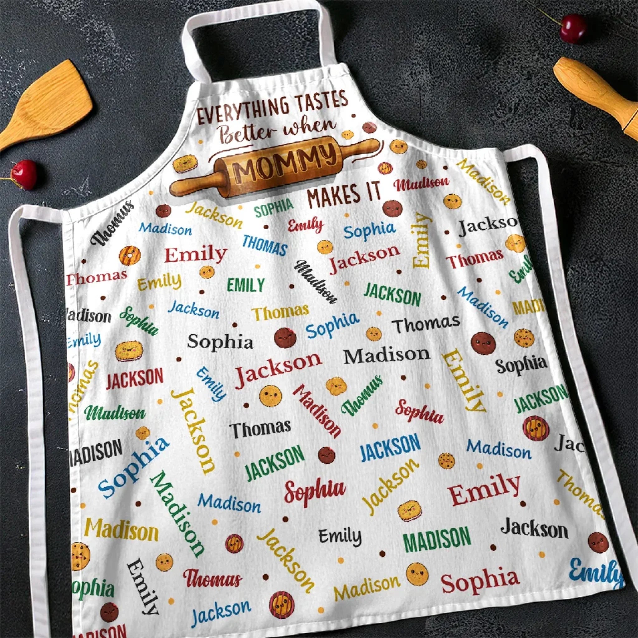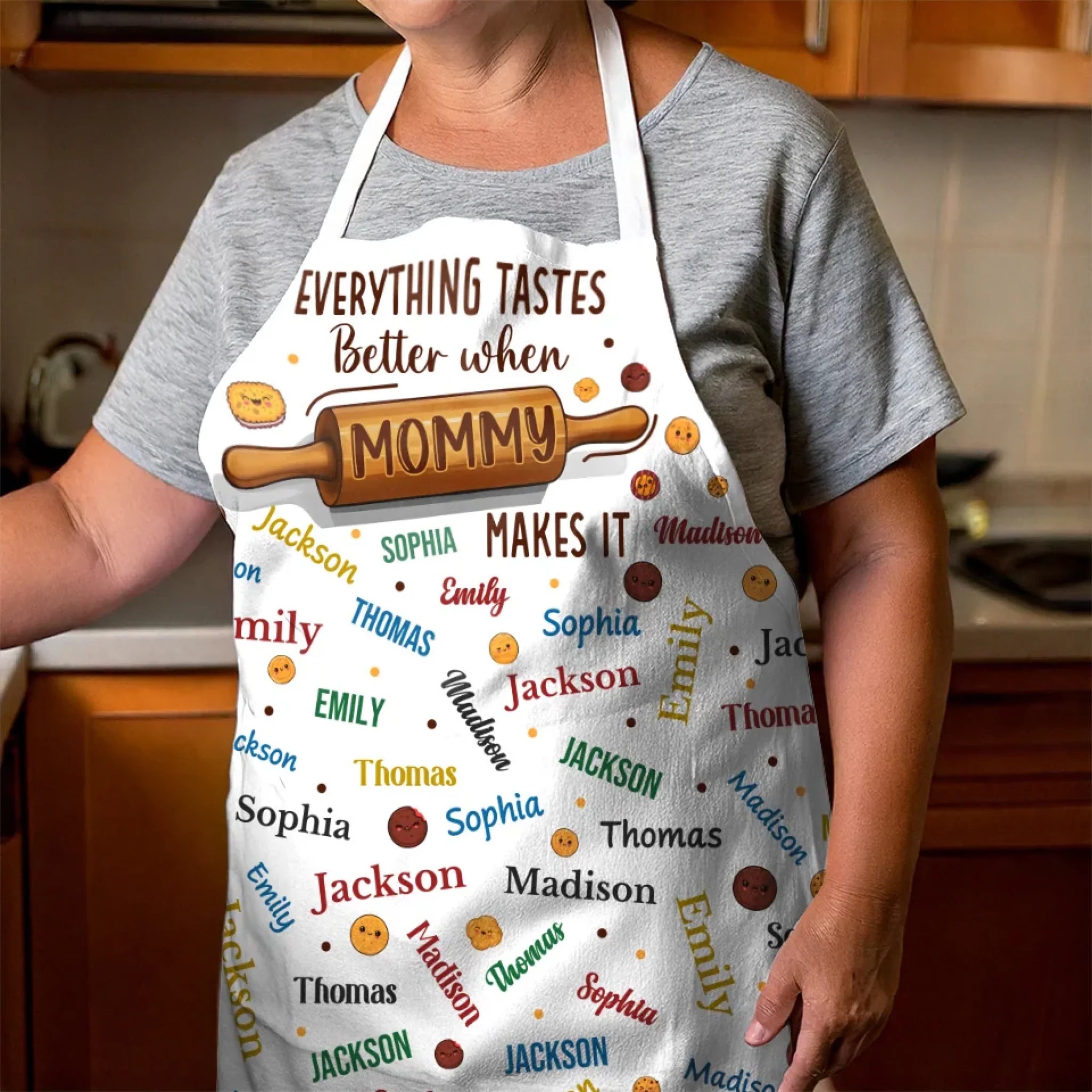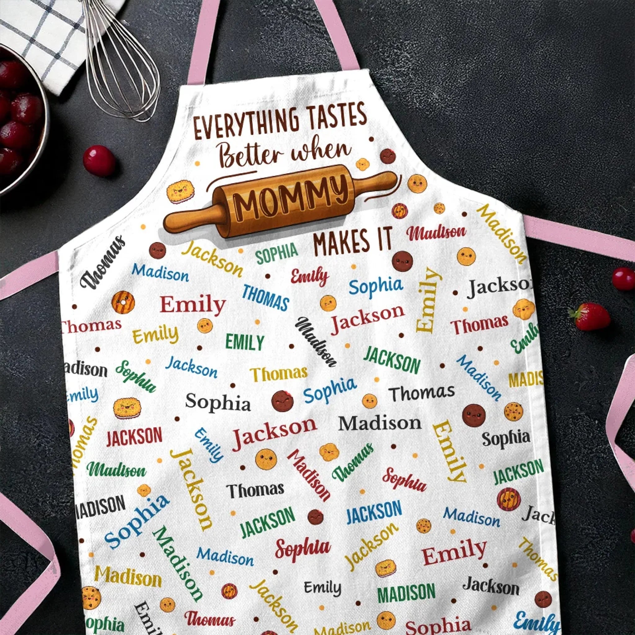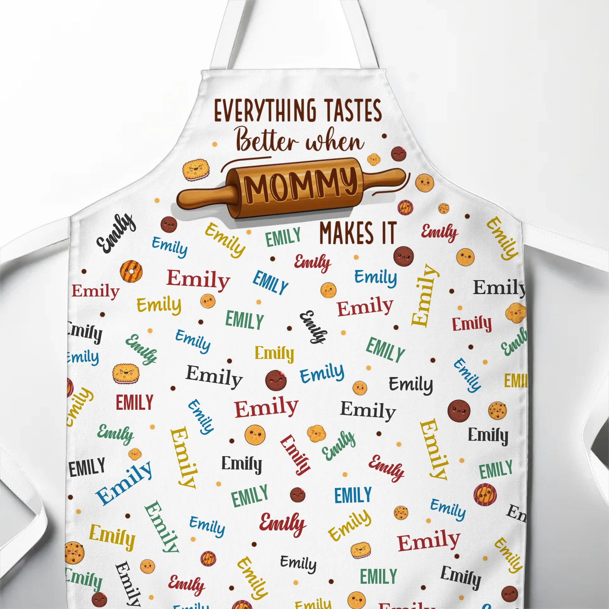Everything Tastes Better When Mommy Makes It - Family Personalized Custom Apron - Mother's Day, Gift For Mom, Grandma
