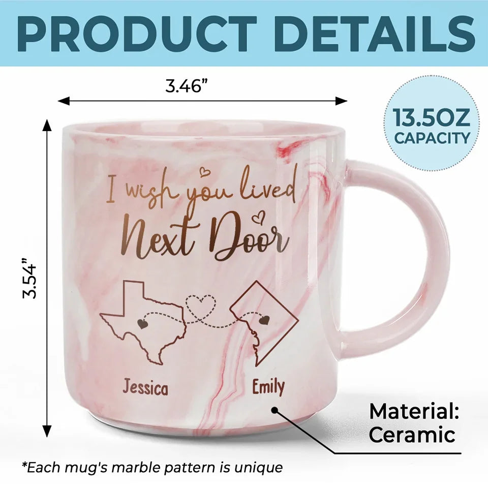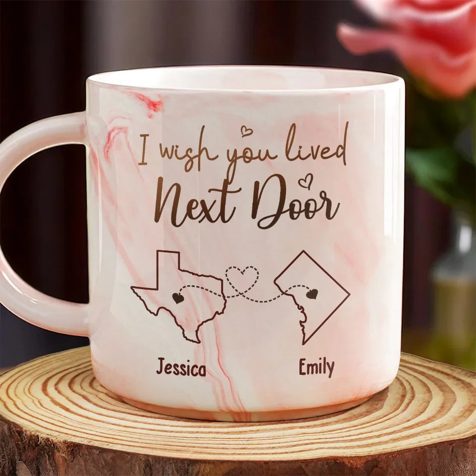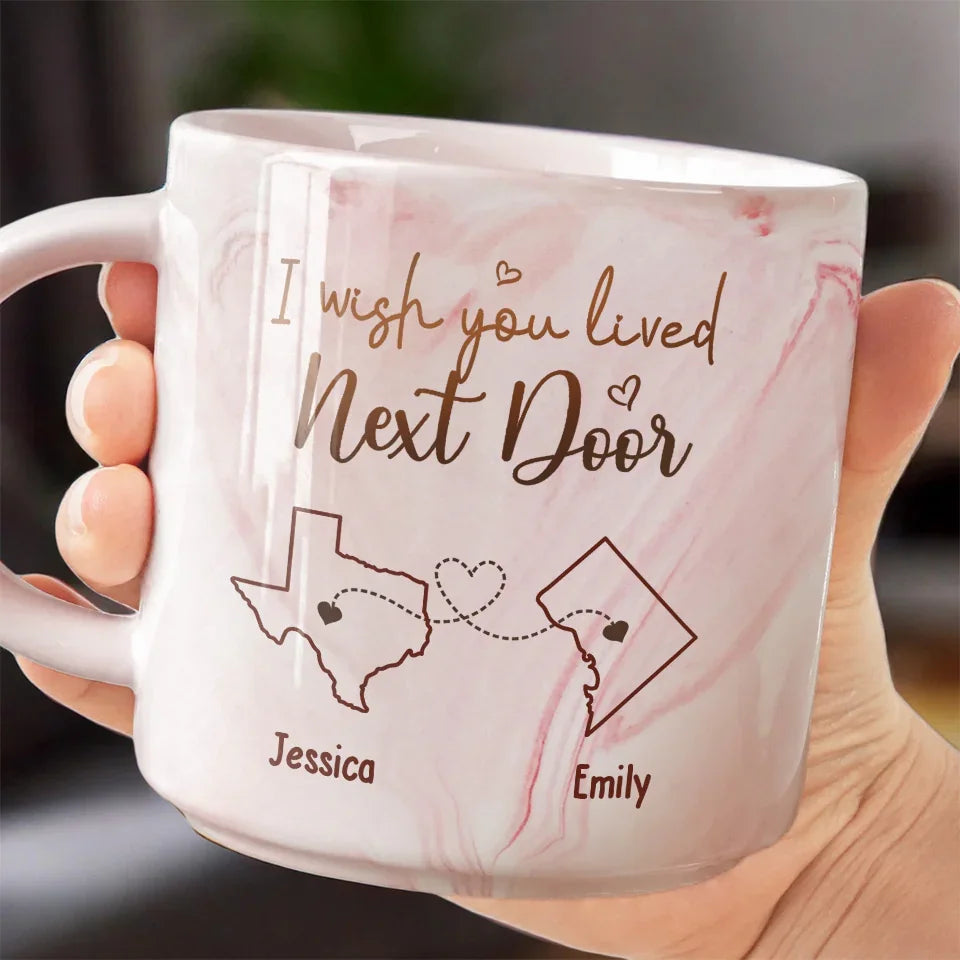 Far Apart, But Close At Heart - Bestie Personalized Custom Marble Mug - Gift For Best Friends, BFF, Sisters