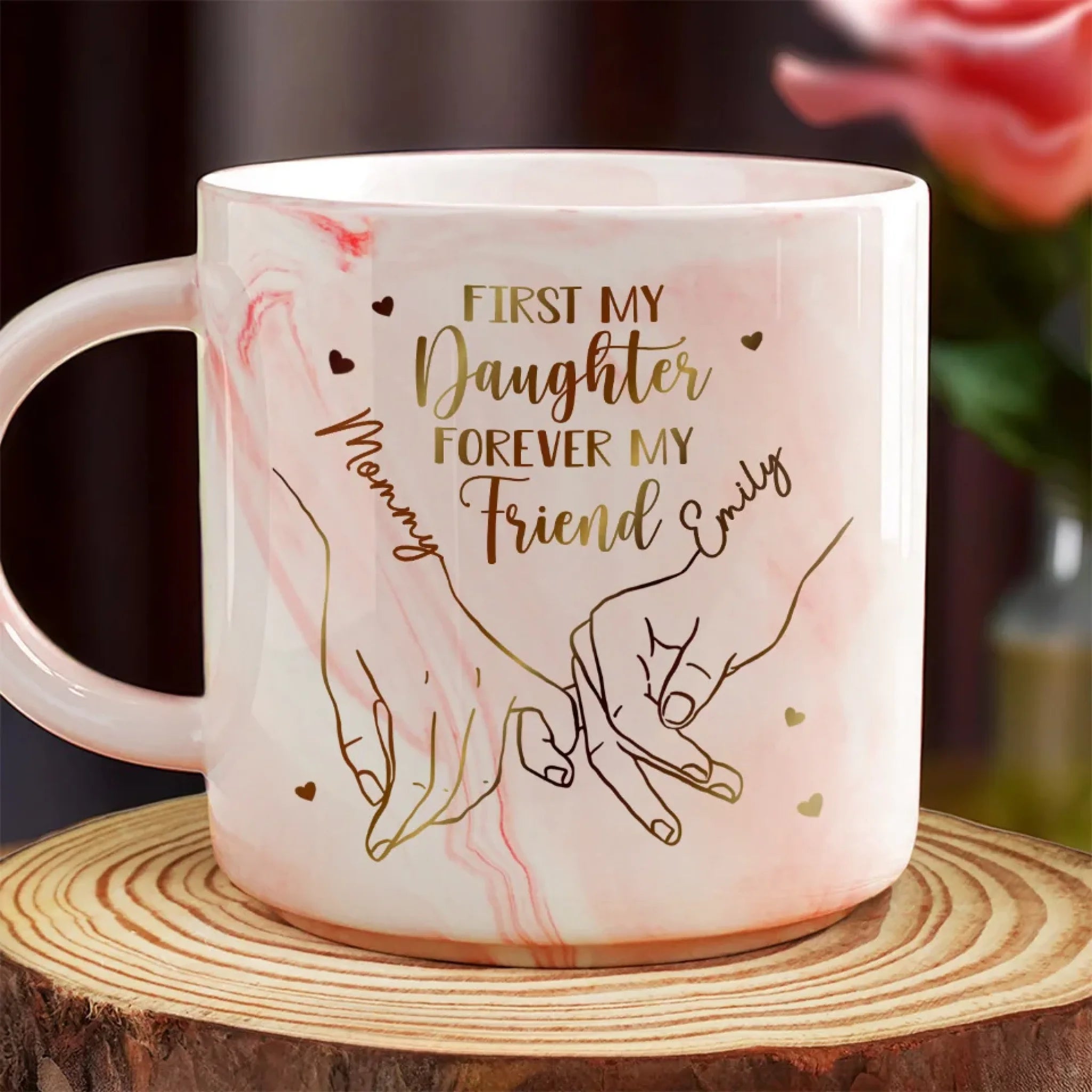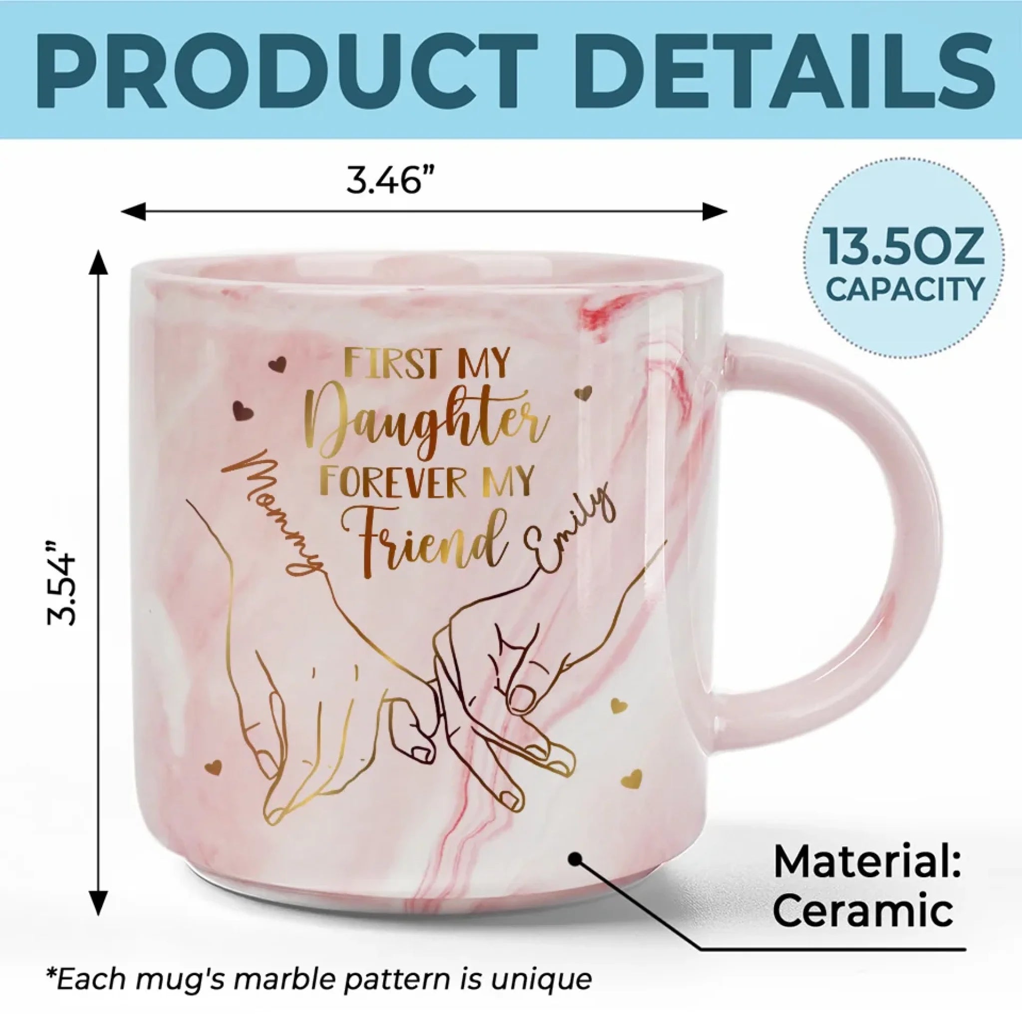 First My Daughter Forever My Friend - Family Personalized Custom Marble Mug - Gift For Mom, Daughter