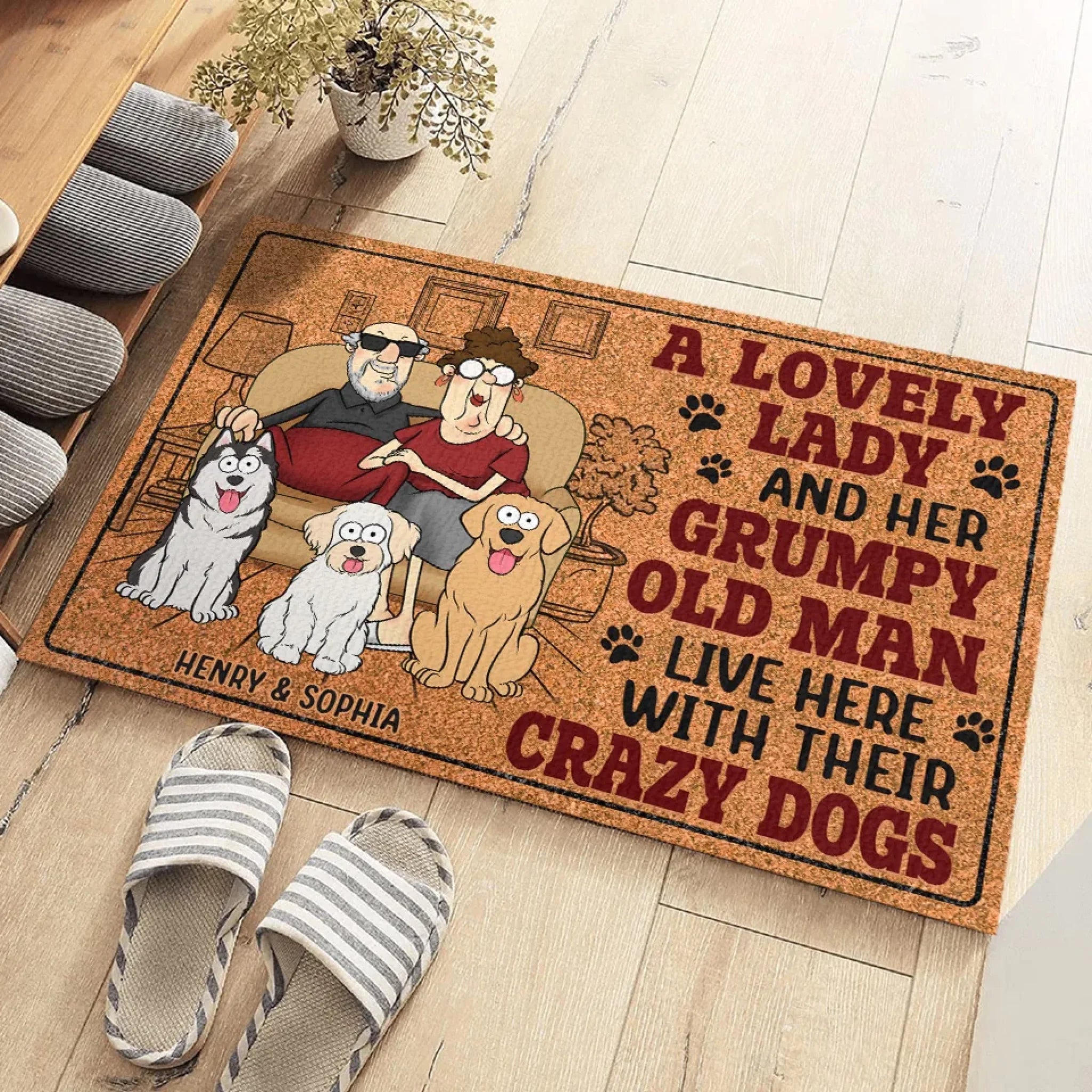 Fluff, Love & A Bit Of Grump - Couple Personalized Custom Home Decor Decorative Mat - House Warming Gift For Husband Wife, Anniversary, Pet Owners, Pet Lovers