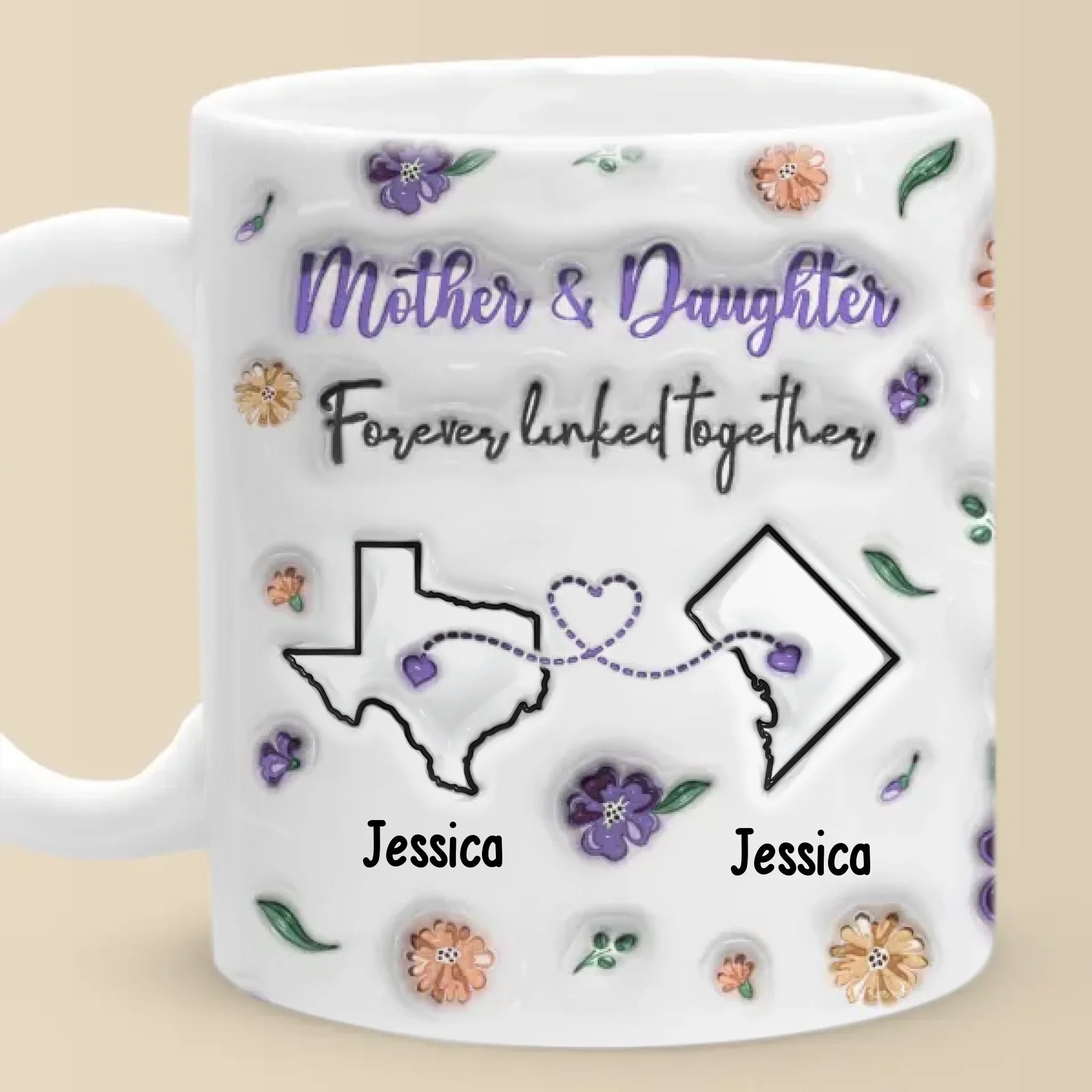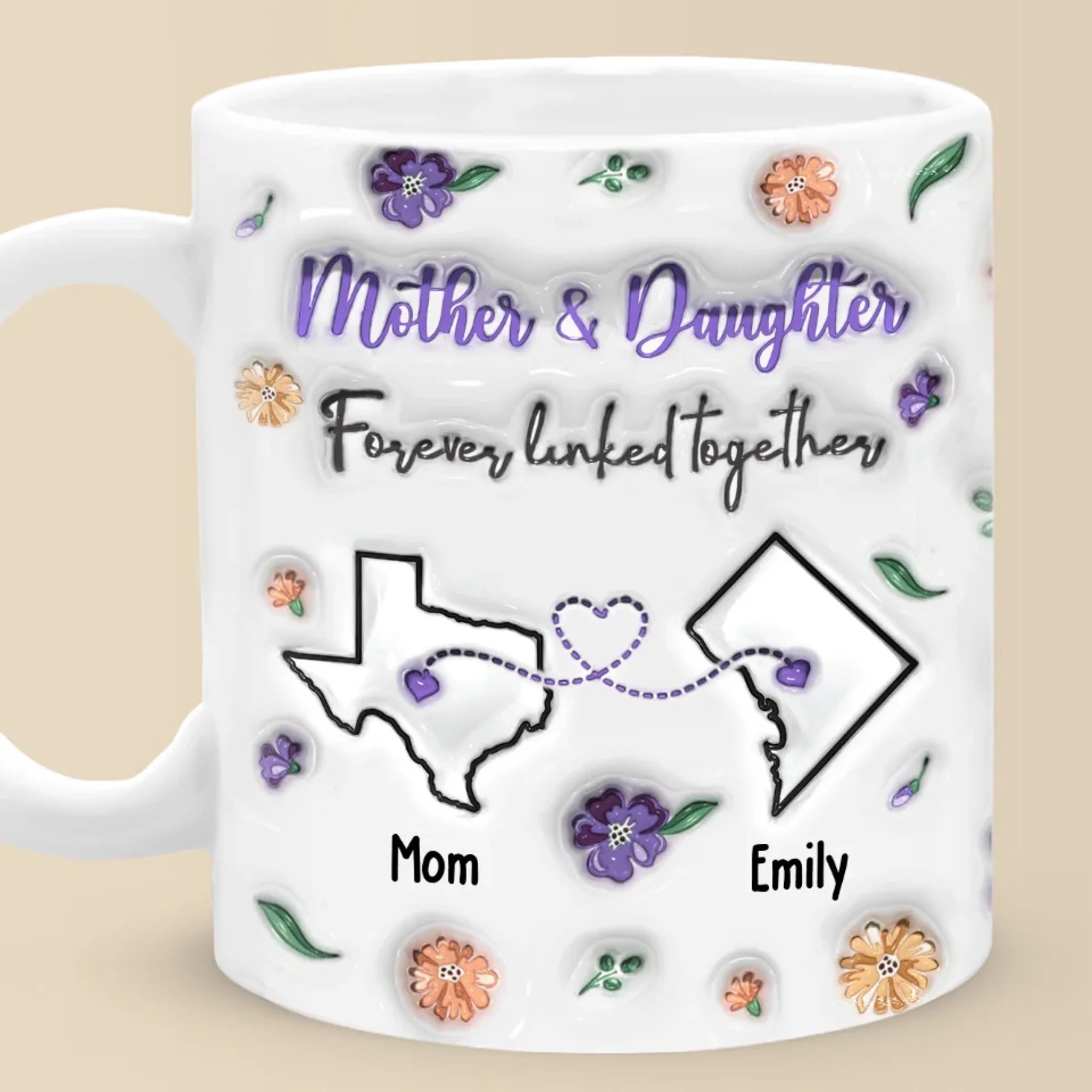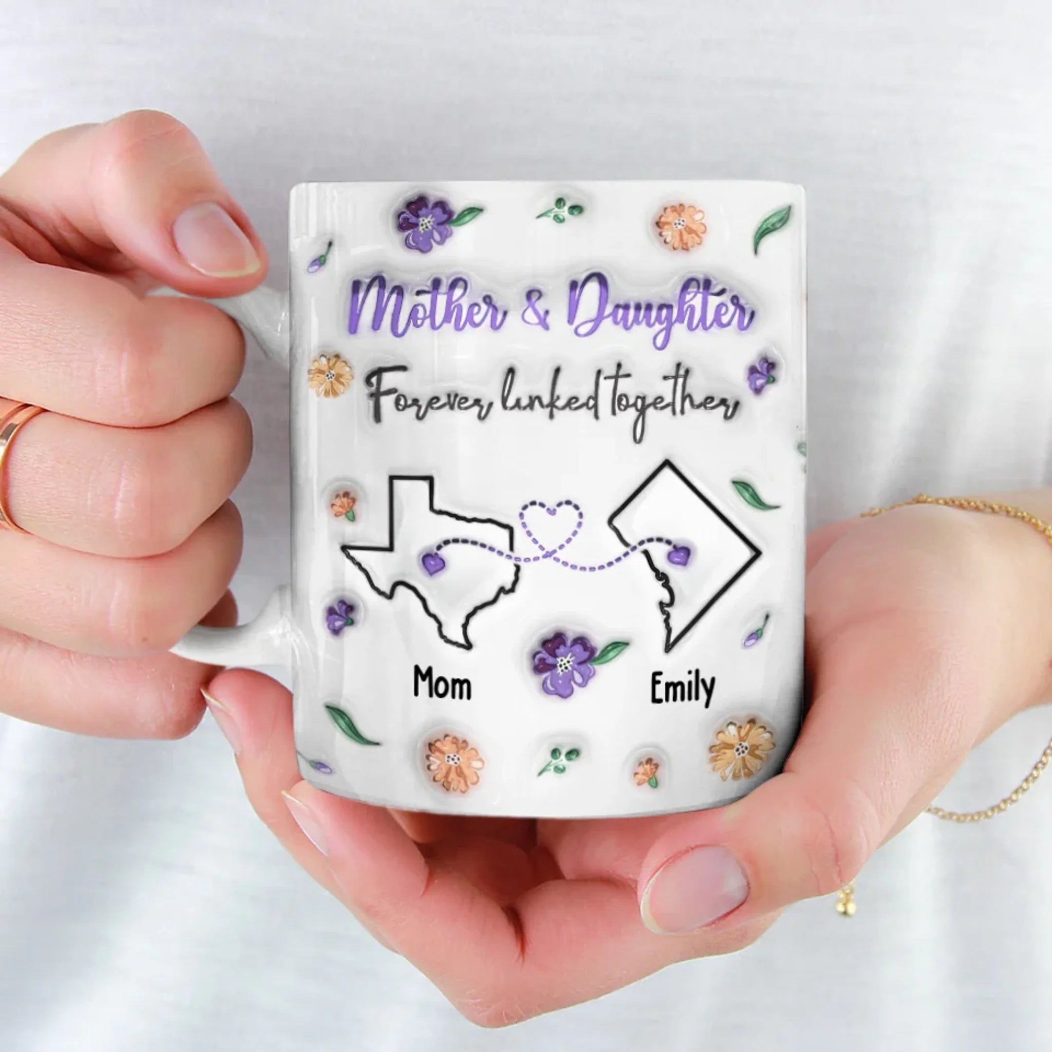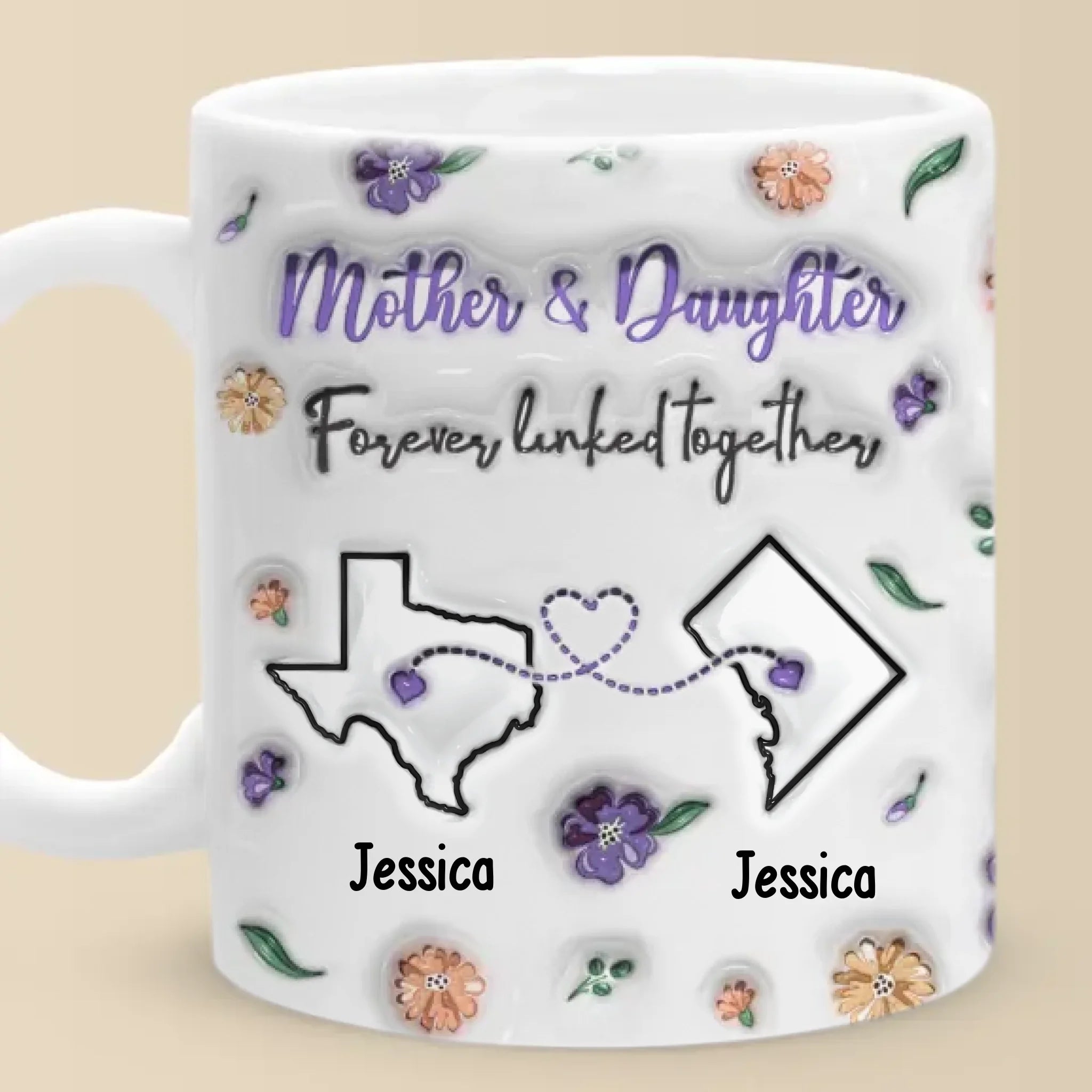 Forever Linked, Heart To Heart - Family Personalized Custom 3D Inflated Effect Printed Mug - Gift For Mom, Daughter