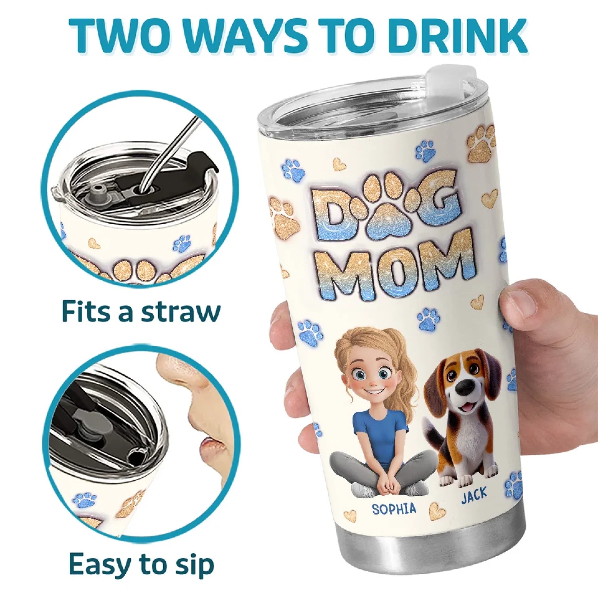 Four Paws, One Heart - Dog & Cat Personalized Custom 3D Inflated Effect Printed Tumbler - Gift For Pet Owners, Pet Lovers