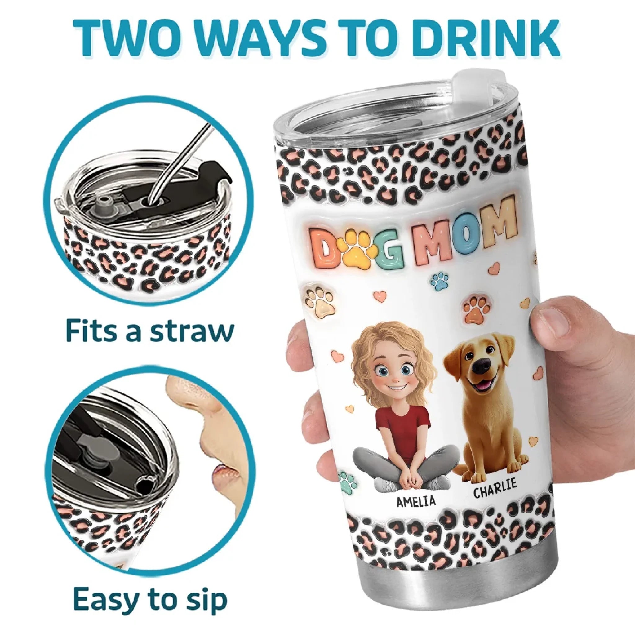 • This is a tumbler with a 3D inflated effect print, used to give the item a premium and deep look.