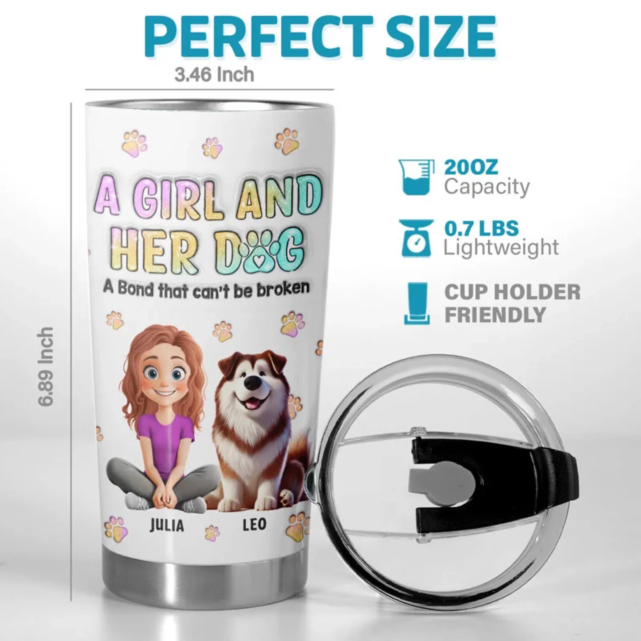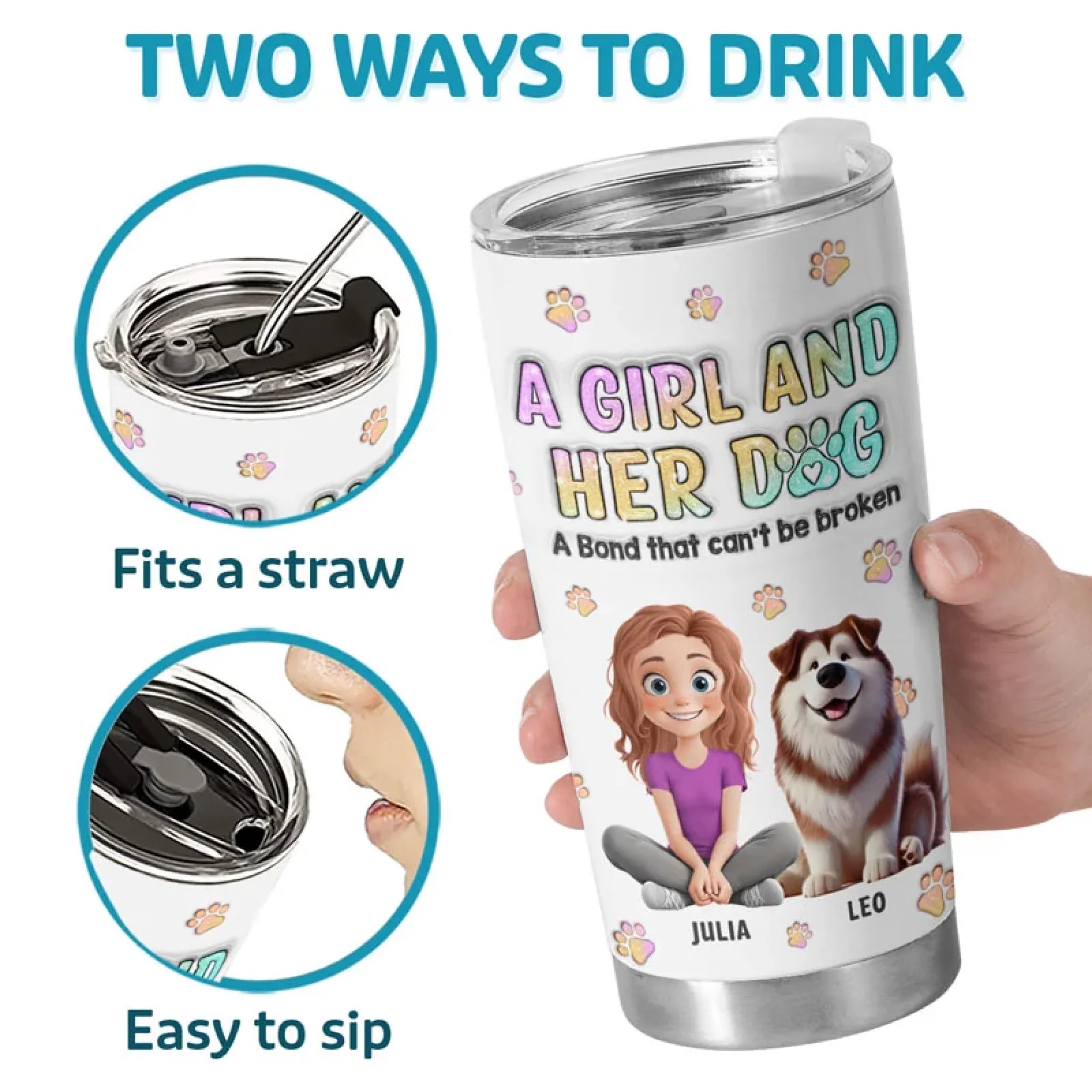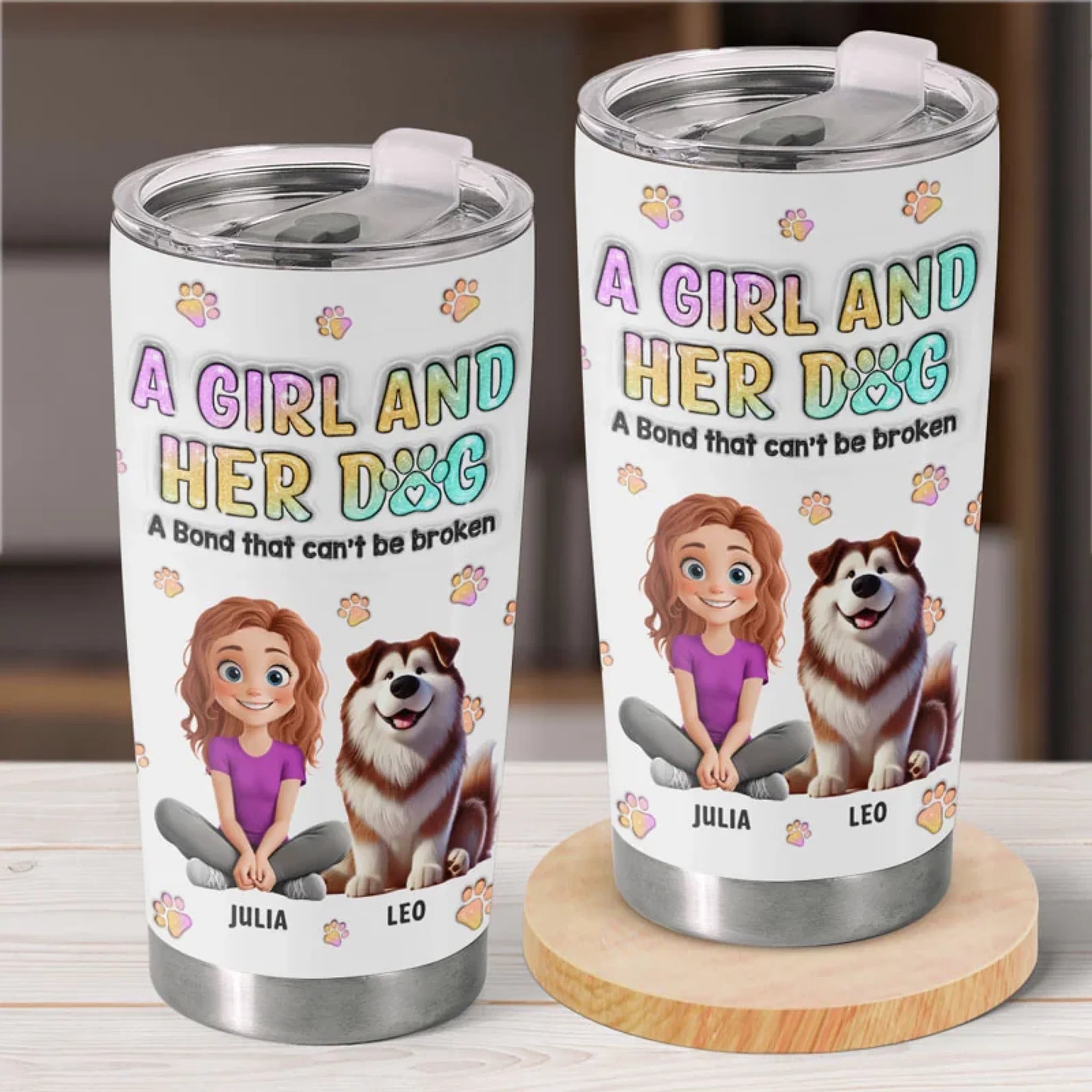 Fur-Ever Together, A Girl & Her Dogs - Dog Personalized Custom 3D Inflated Effect Printed Tumbler - Gift For Pet Owners, Pet Lovers
