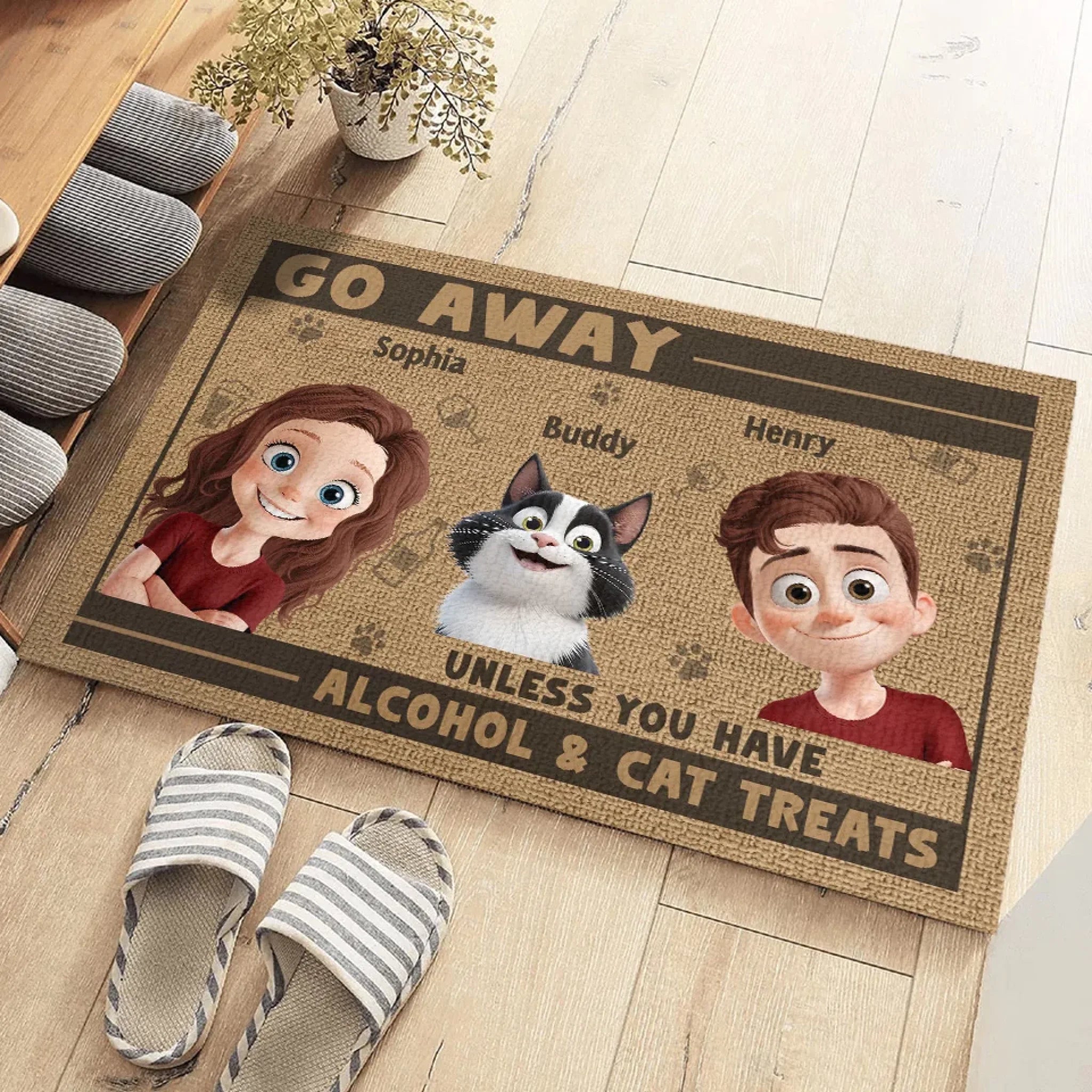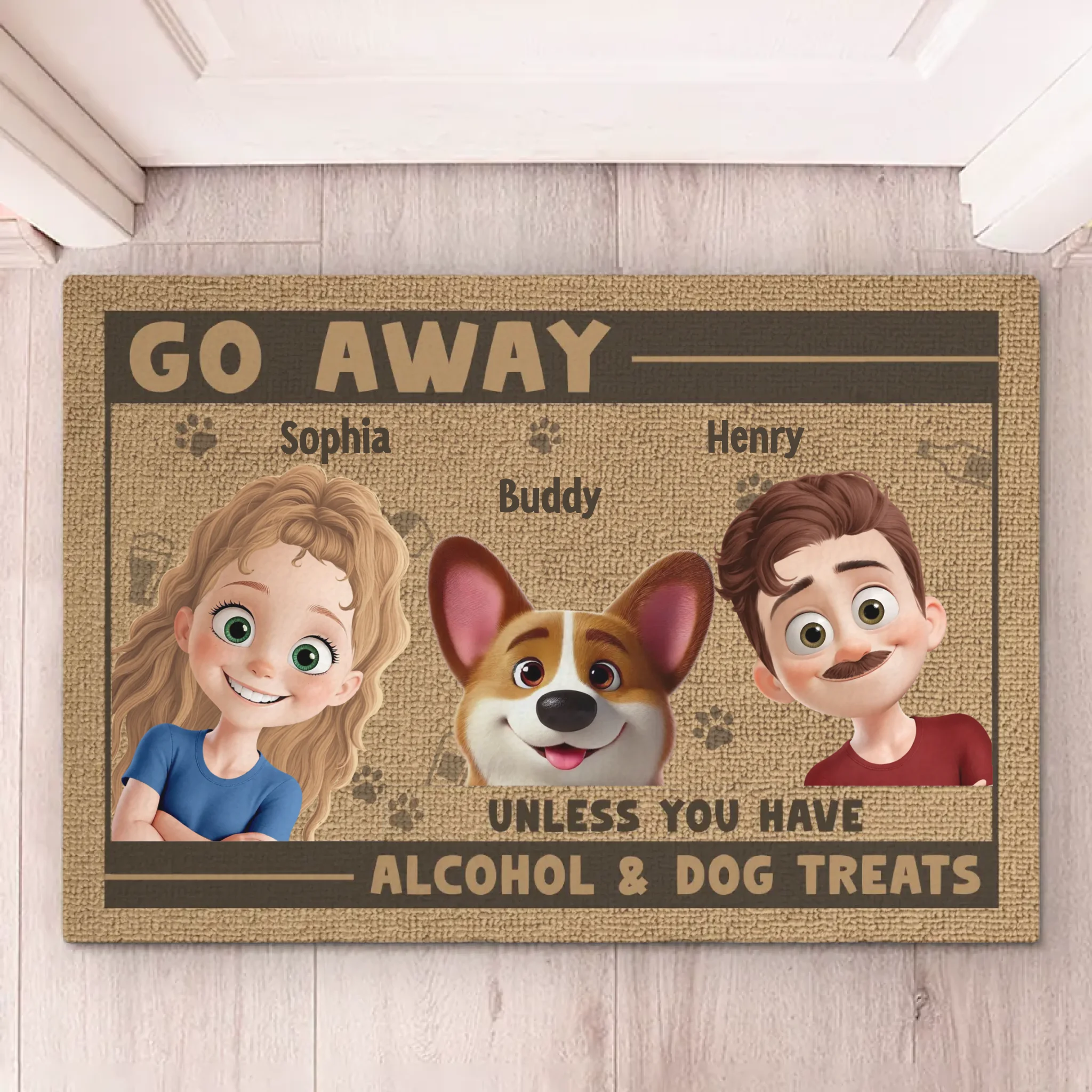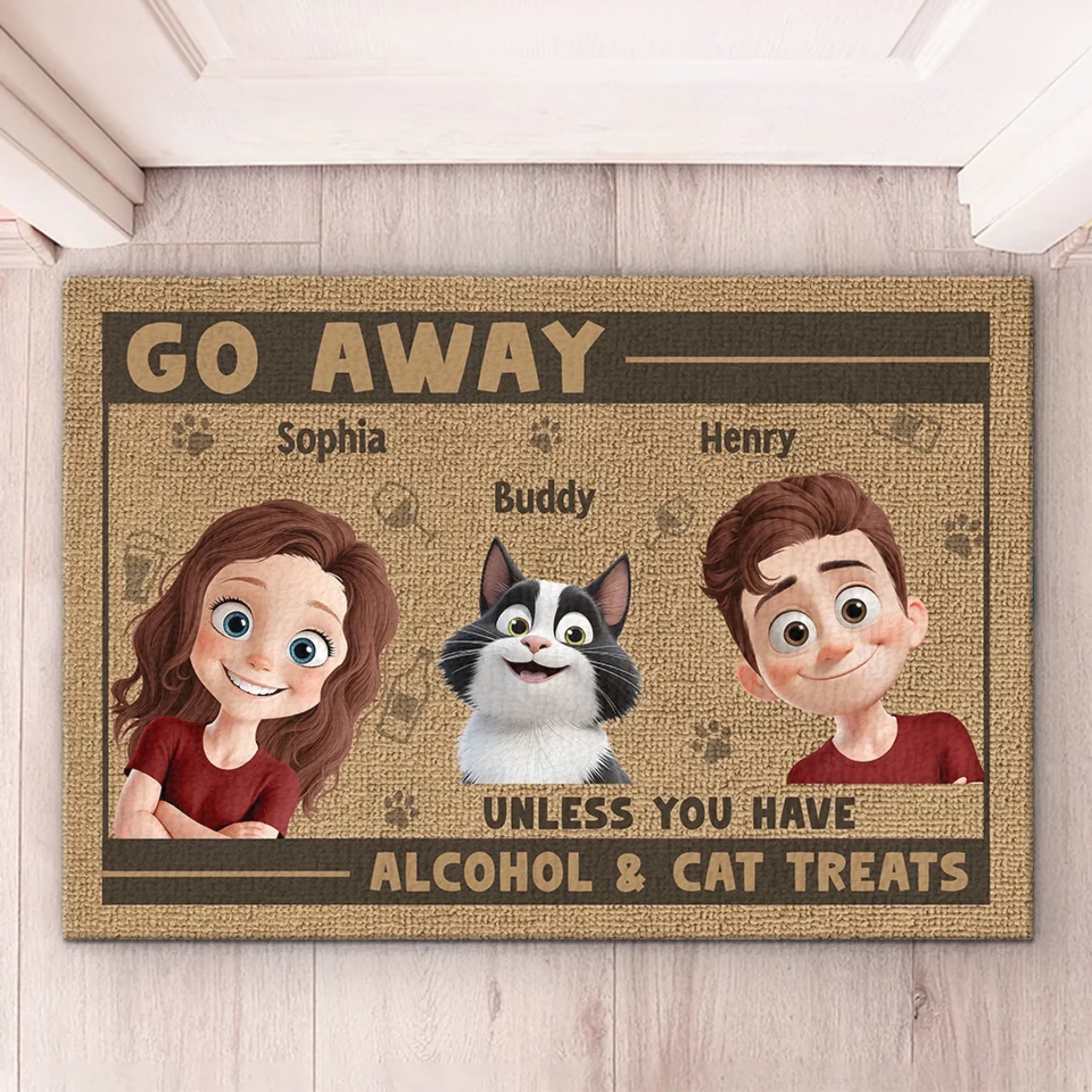 Go Away, Unless You Have Treats For The Boss - Couple Personalized Custom Home Decor Decorative Mat - House Warming Gift For Husband Wife, Anniversary, Pet Owners, Pet Lovers