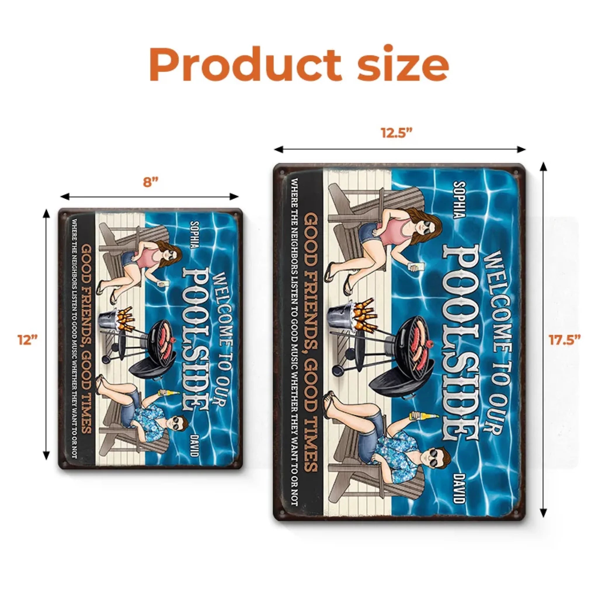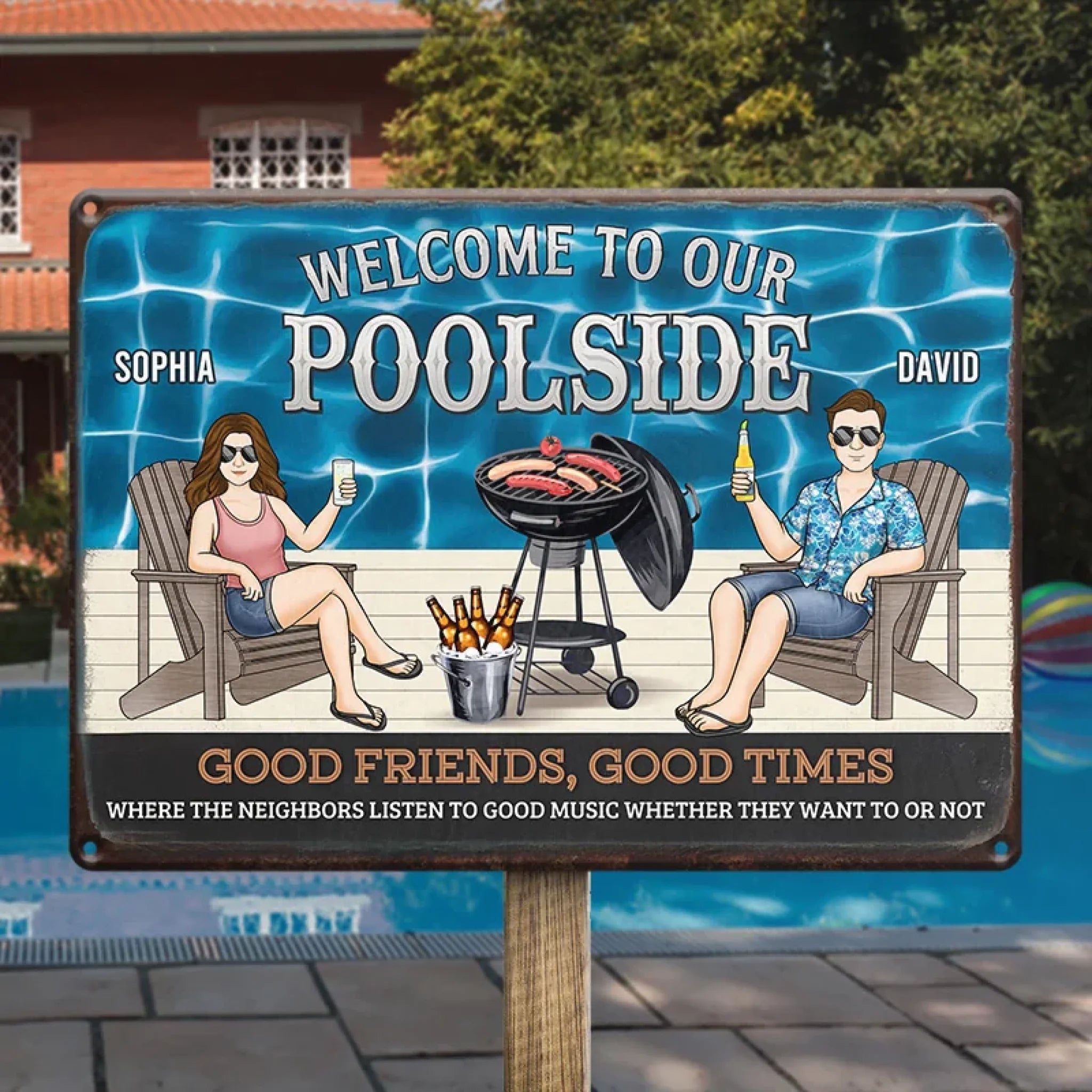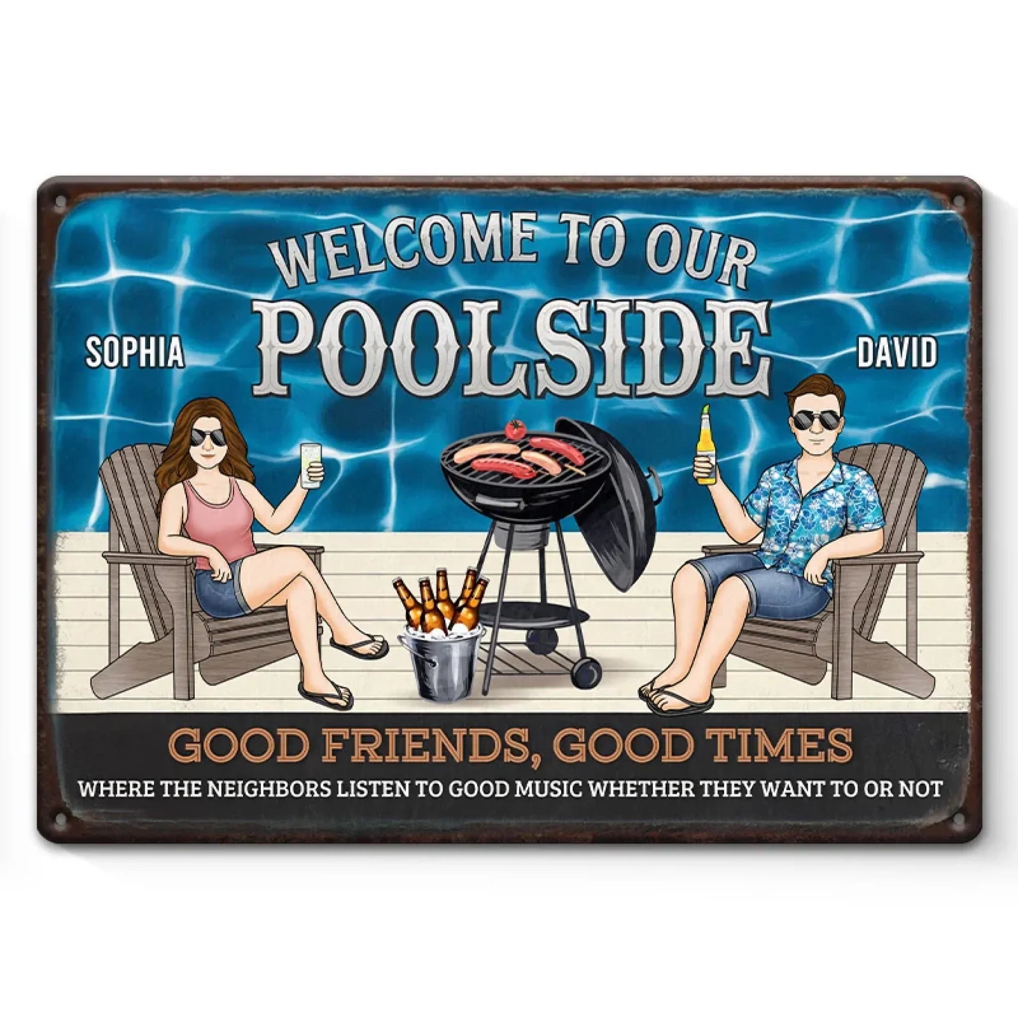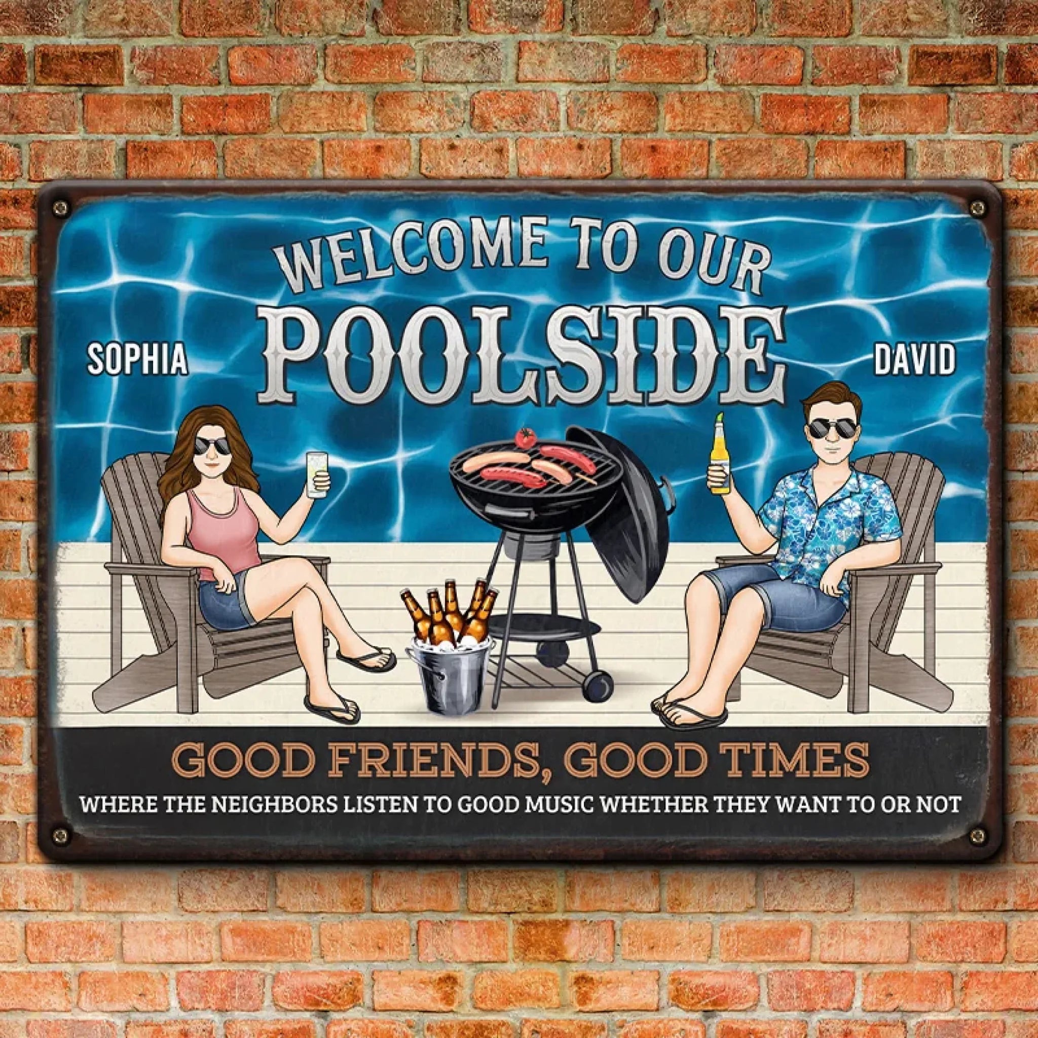 Good Times, Poolside Beats - Couple Personalized Custom Home Decor Metal Sign - House Warming Gift For Yourself, Husband Wife, Best Friends, Family Members