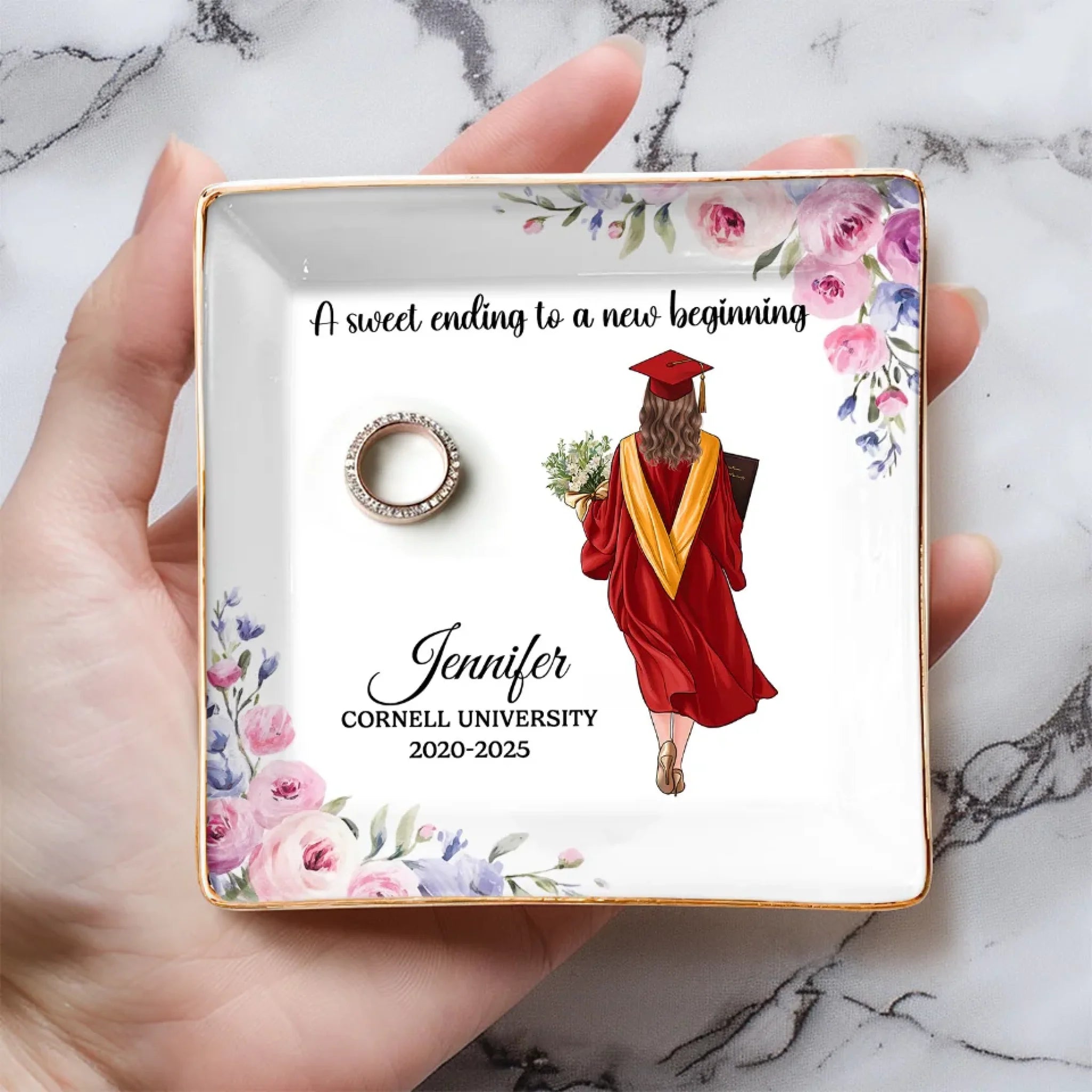 Elevate your space with this elegant full-print jewelry dish—where style meets functionality. Designed to beautifully organize and showcase your cherished jewelry, this exquisite piece adds a touch of sophistication to any setting. This is the perfect gift for anyone, suitable for all occasions: birthdays, holidays, anniversaries, graduations, Valentine's Day, Mother's Day, Father's Day, and just because! Whether for friends, family, or that special someone, this versatile gift is guaranteed to bring joy and make lasting memories.