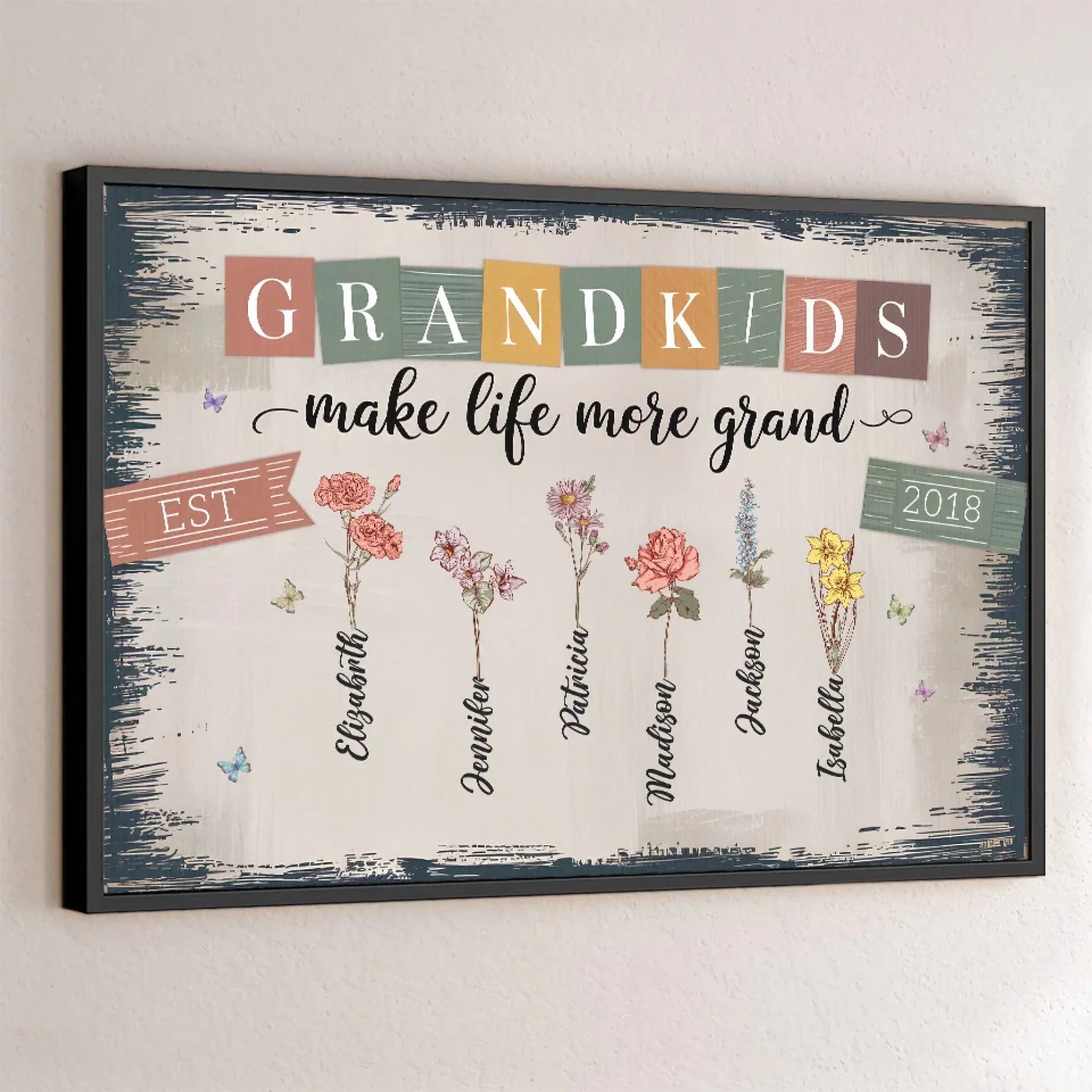 Grandkids Make The World Brighter - Family Personalized Custom Horizontal Poster - Gift For Mom, Grandma