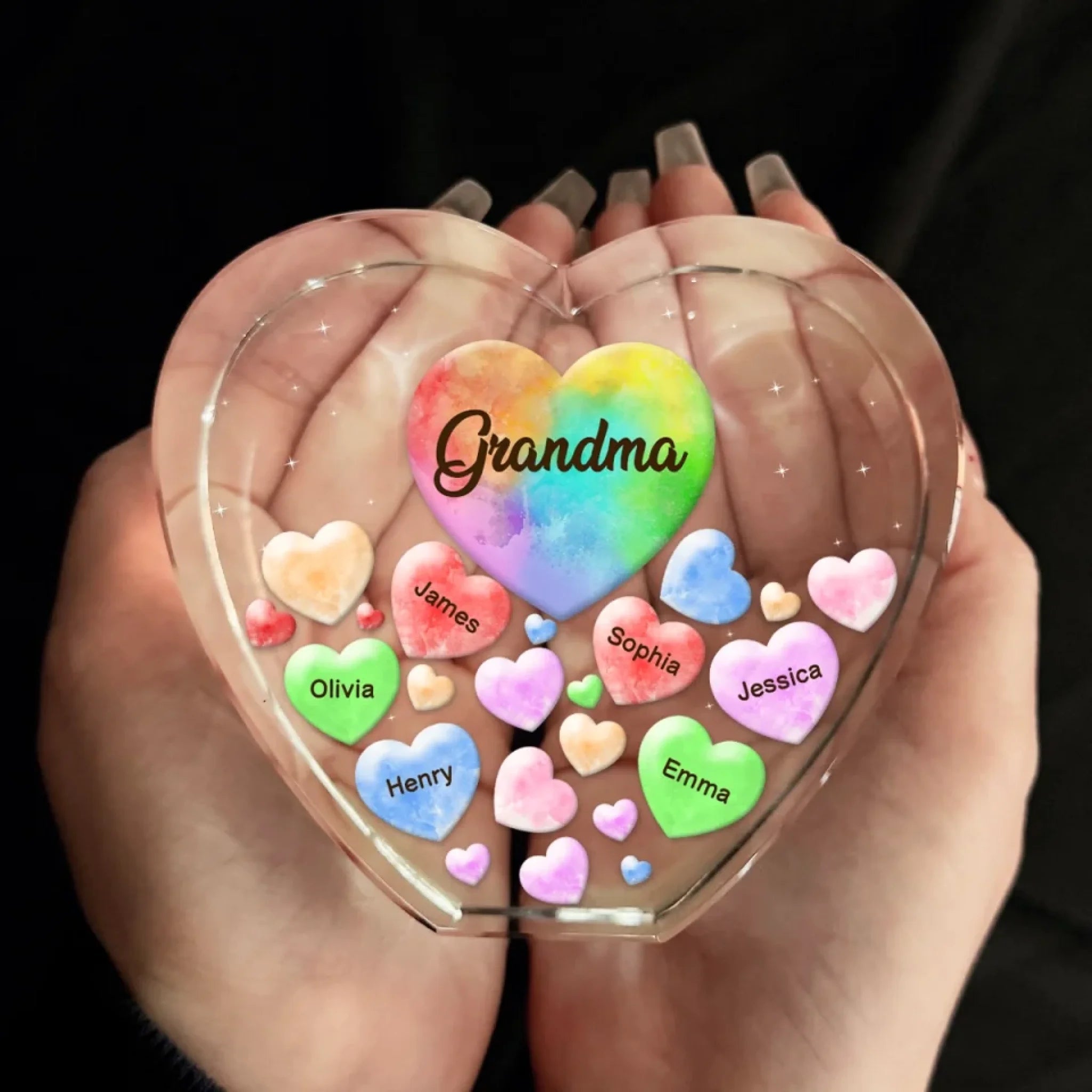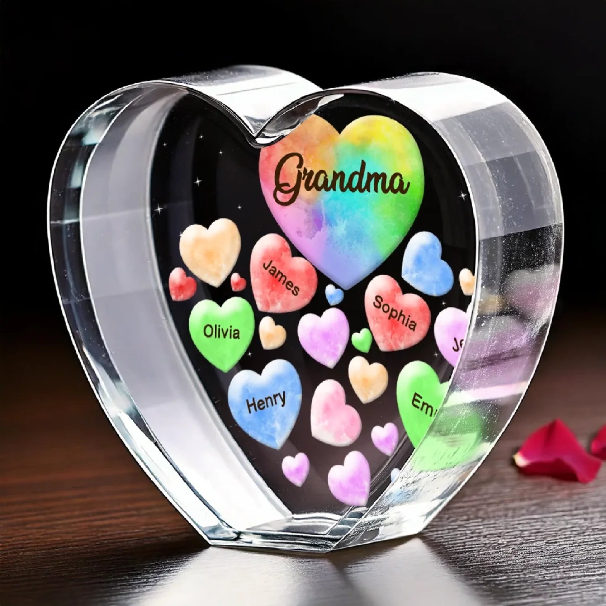Grandma Makes Life Sweeter - Family Personalized Custom 3D Crystal Heart Shaped - Mother's Day, Gift For Mom, Grandma