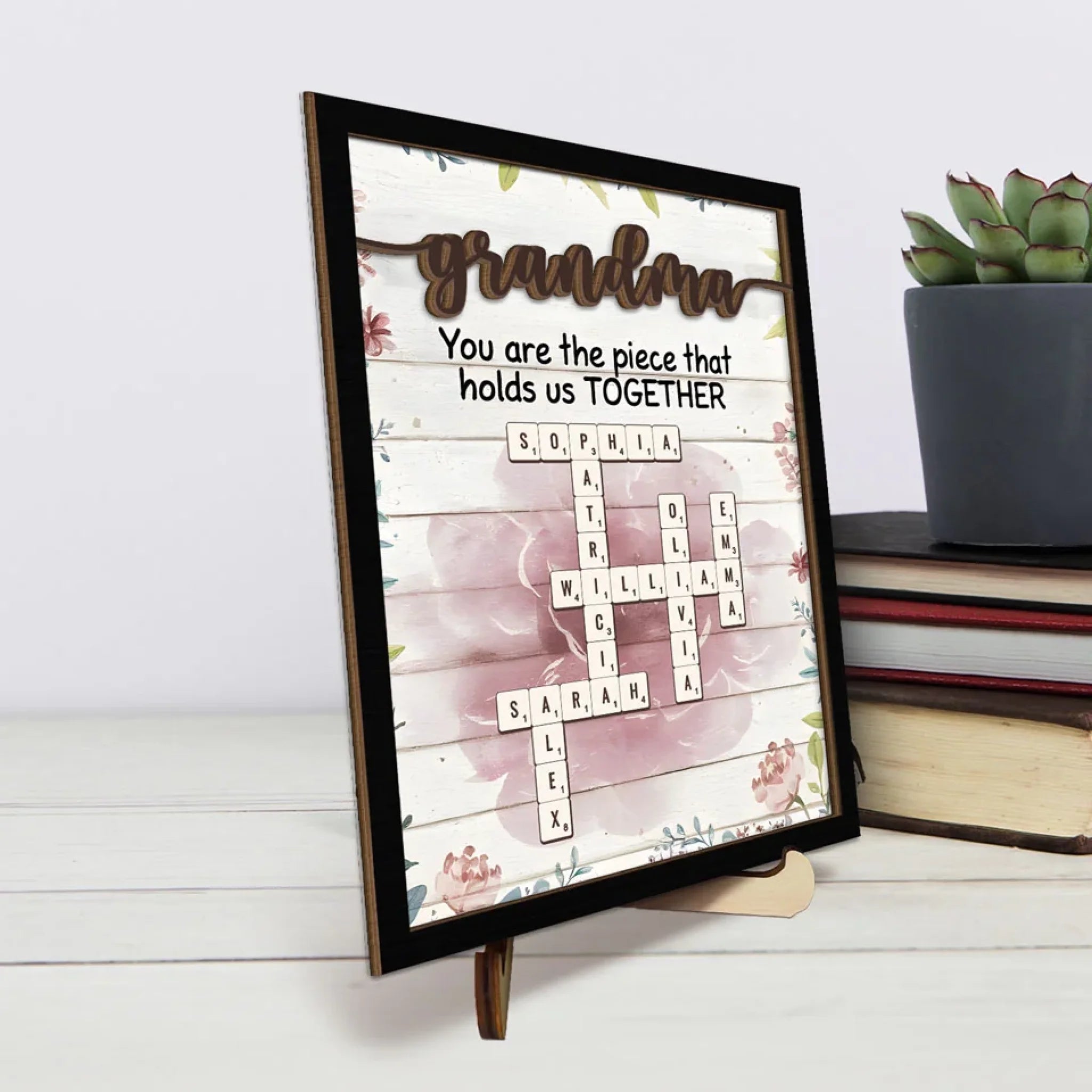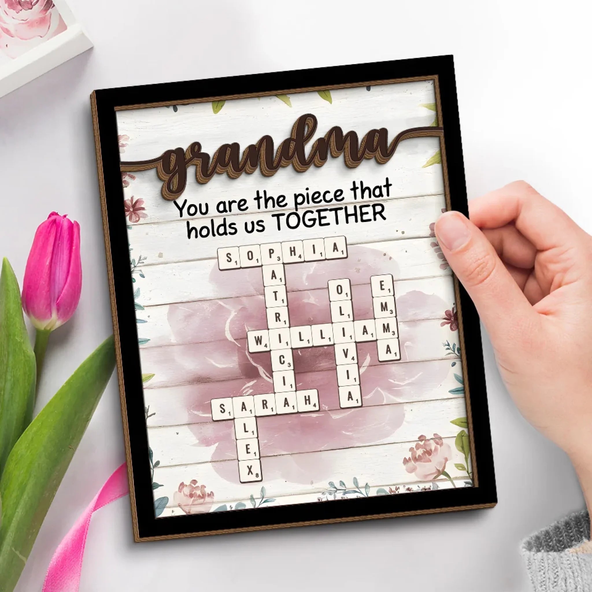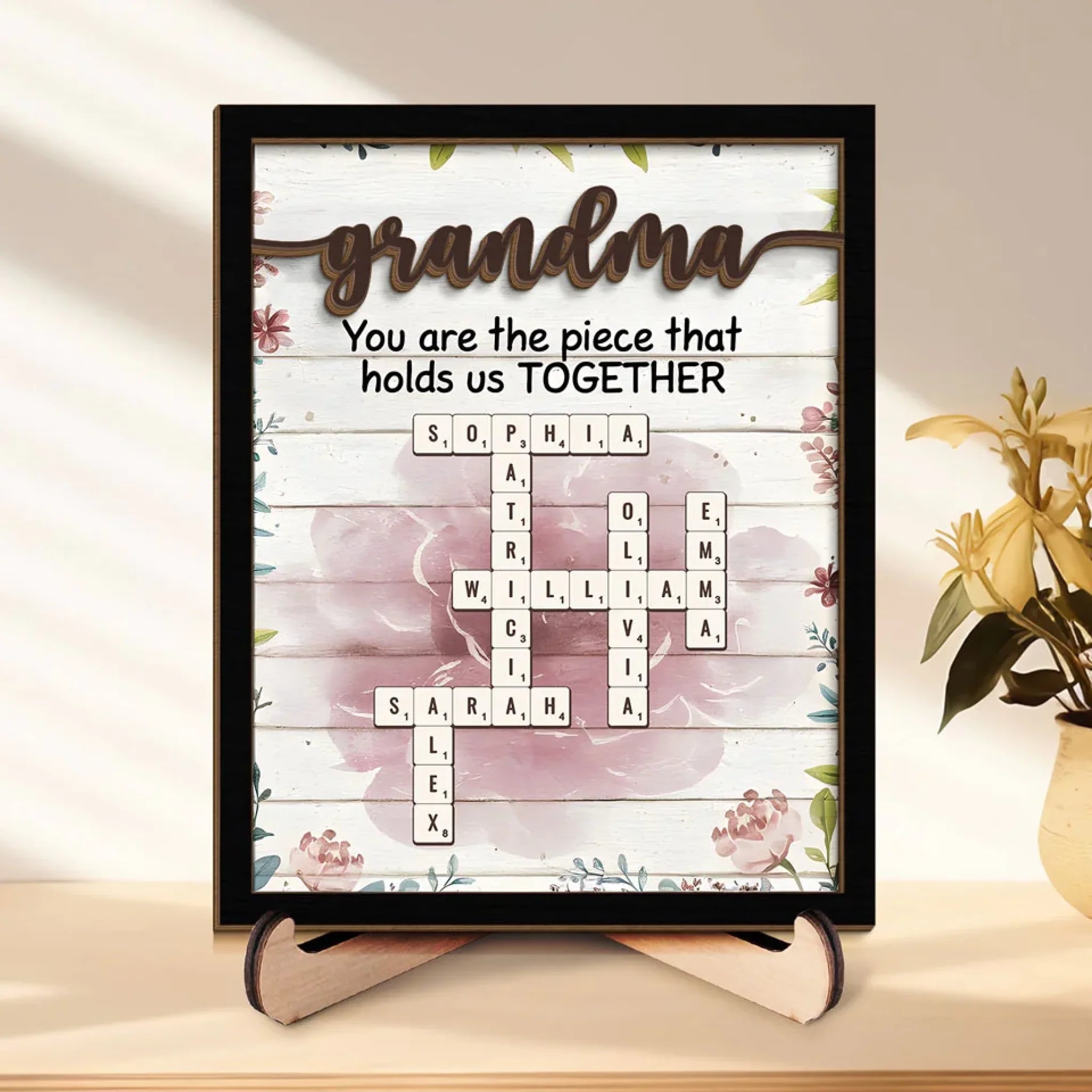 Grandmas Are The Glue That Holds Families Together - Family Personalized Custom 2-Layered Wooden Plaque With Stand - Mother's Day Gift For Mom, Grandma