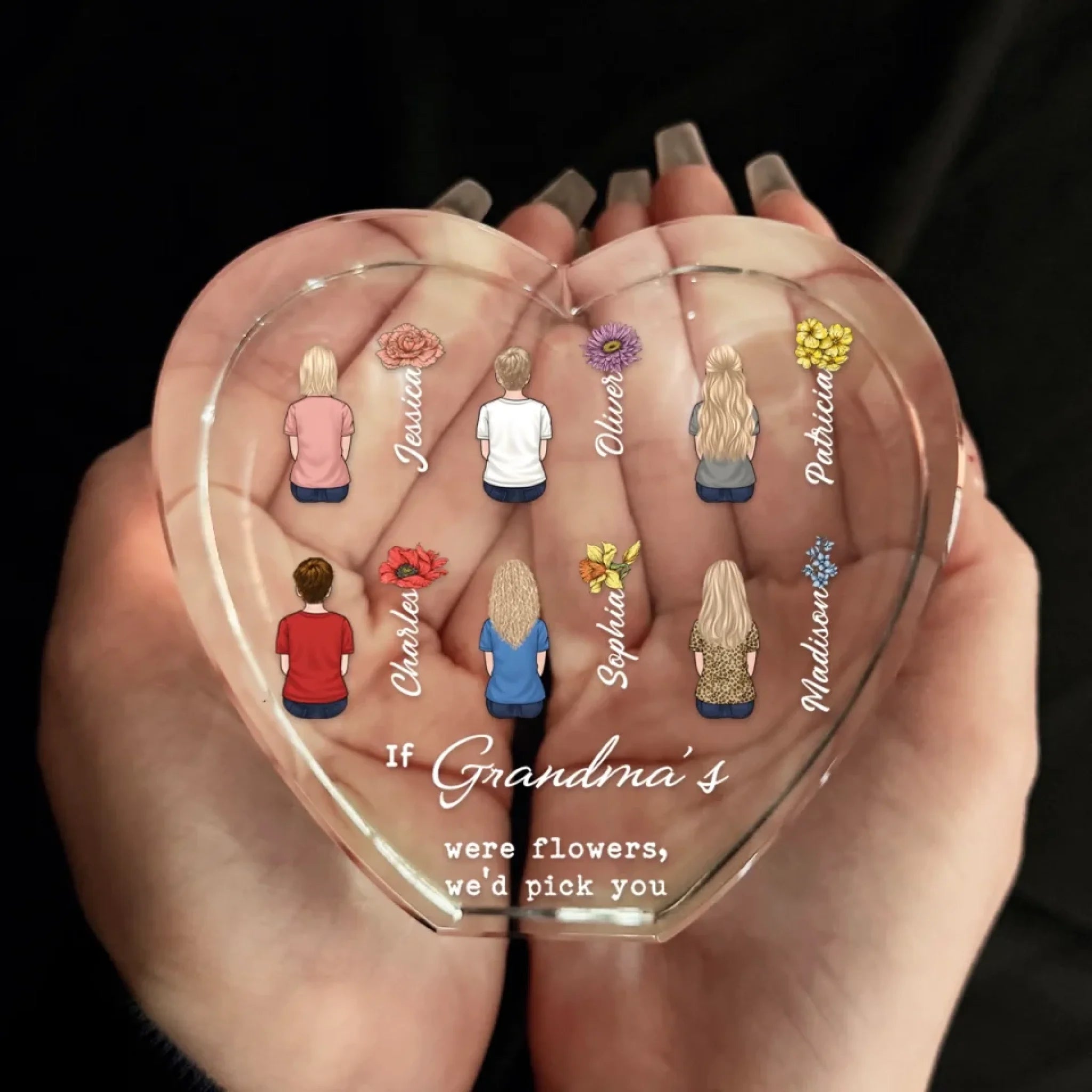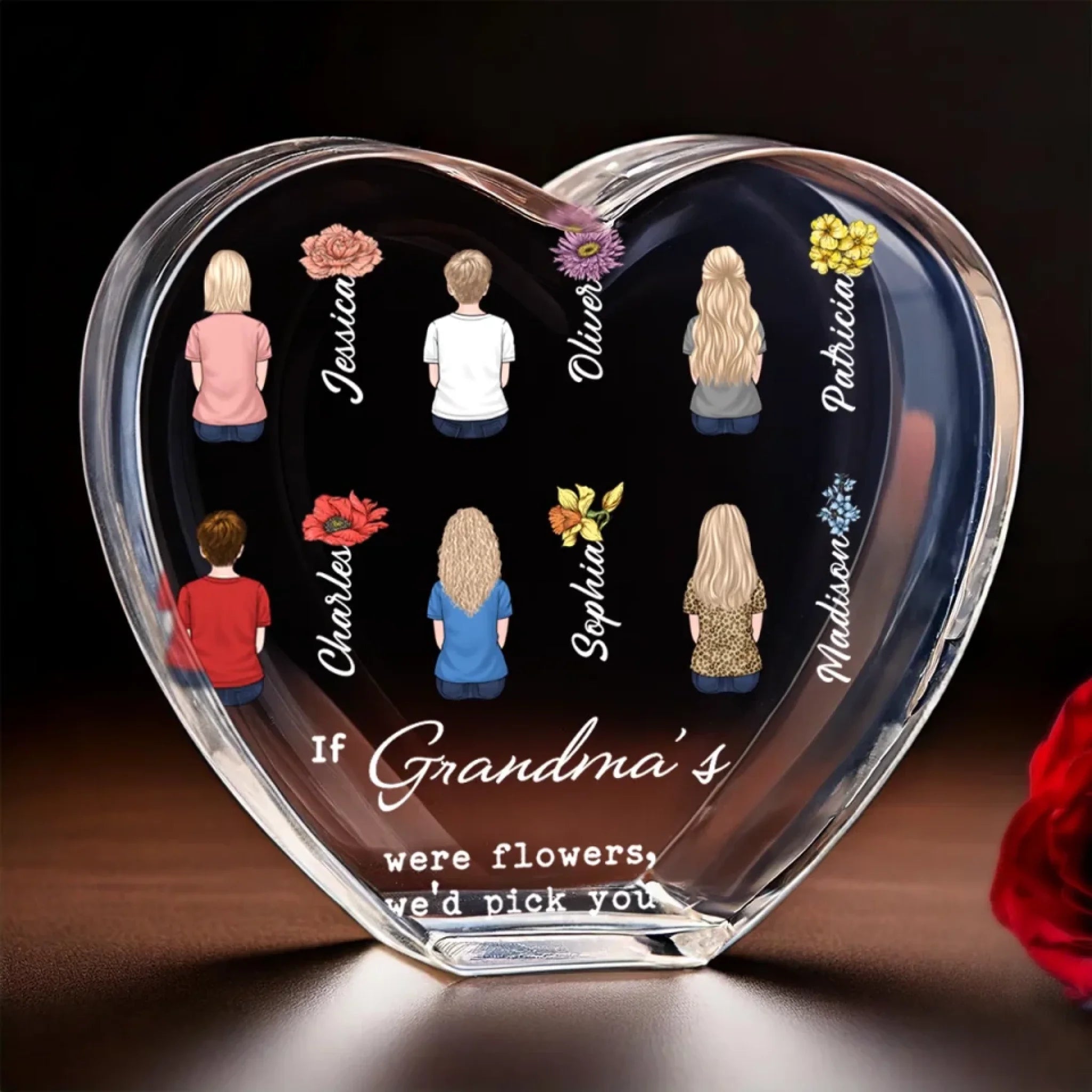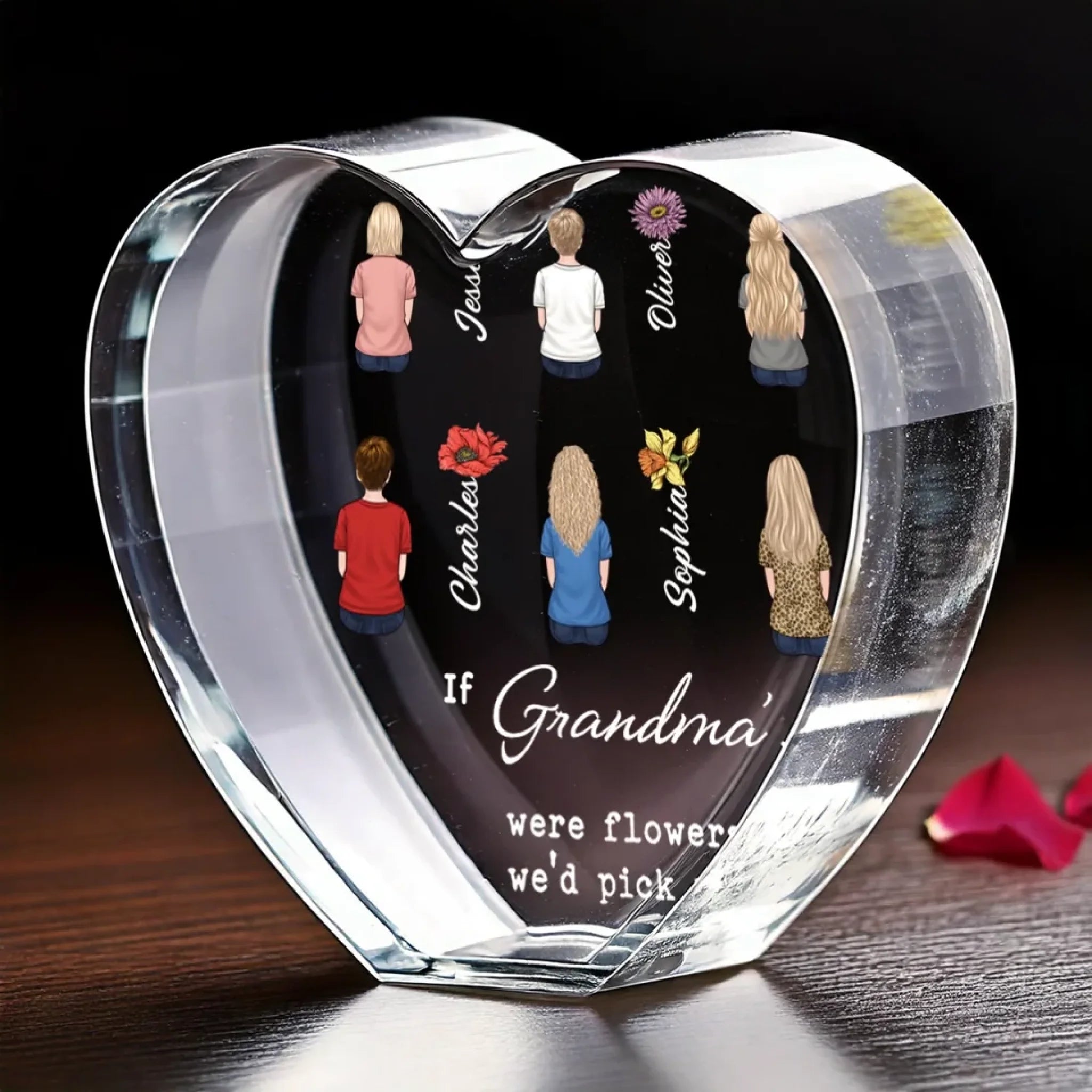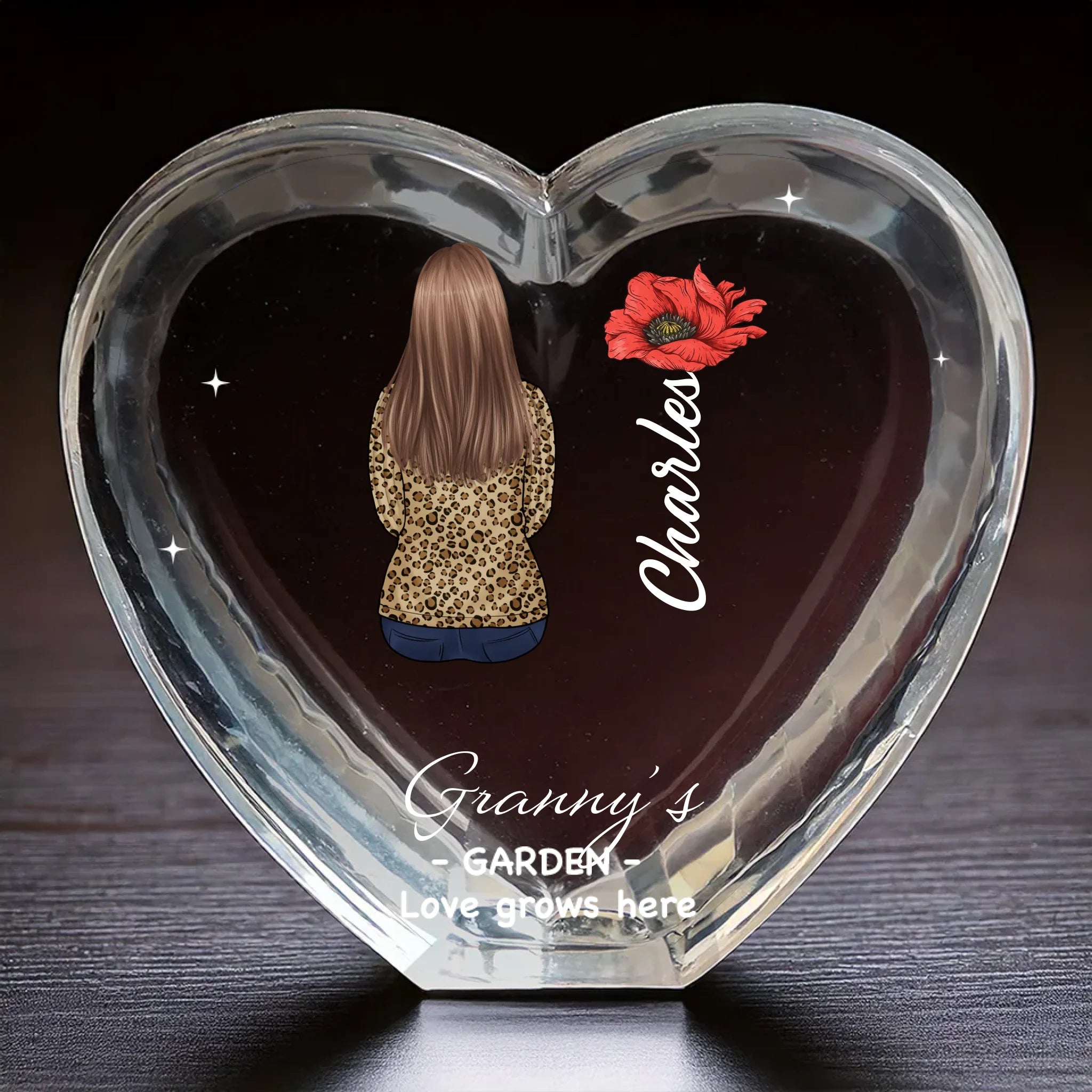 Grandma's Garden Grows Here - Family Personalized Custom 3D Crystal Heart Shaped - Mother's Day, Gift For Mom, Grandma