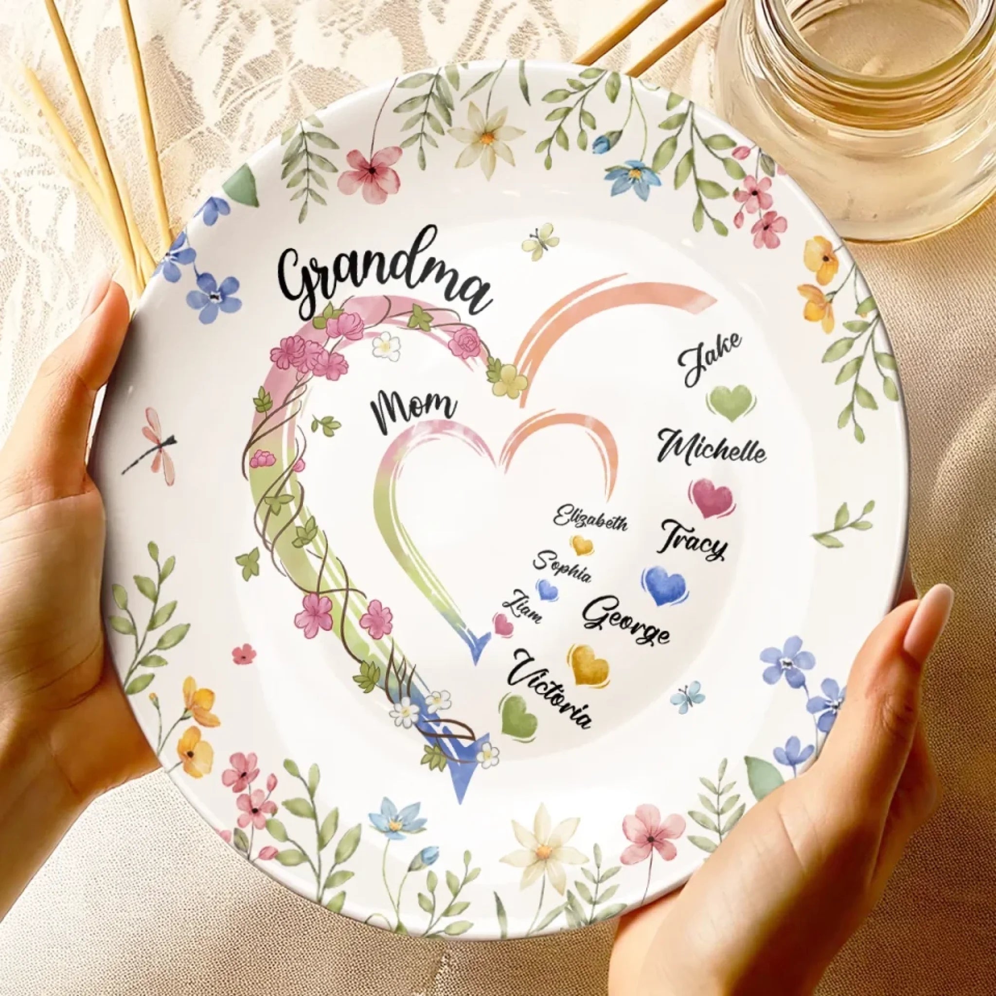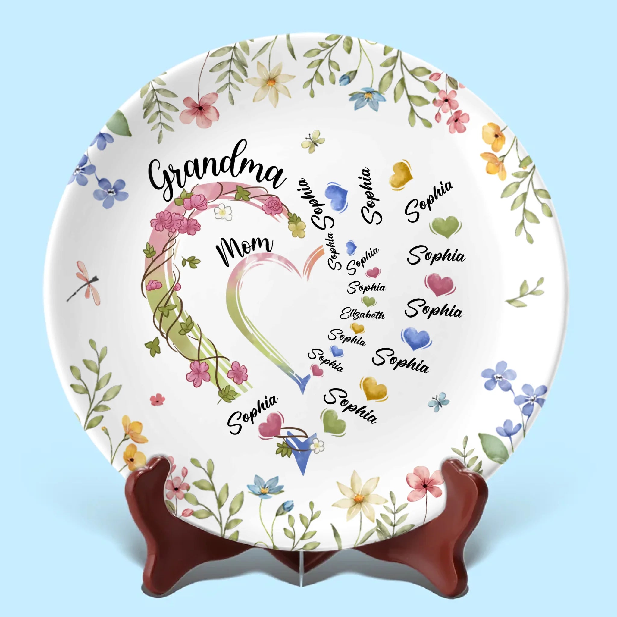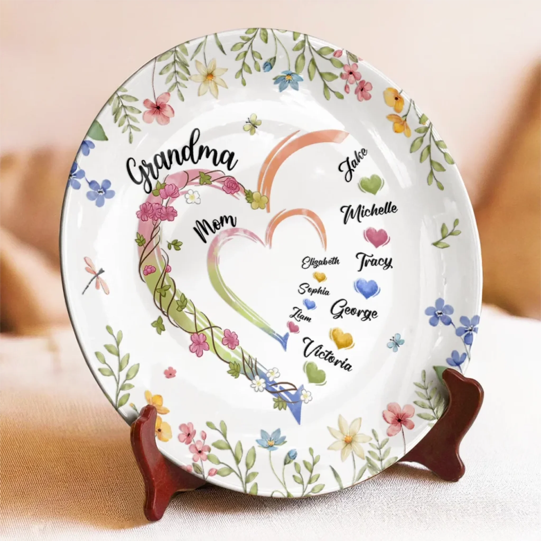 Grandma's Love Is The Heart Of Our Family - Family Personalized Custom Ceramic Plate - Mother's Day, Gift For Mom, Grandma