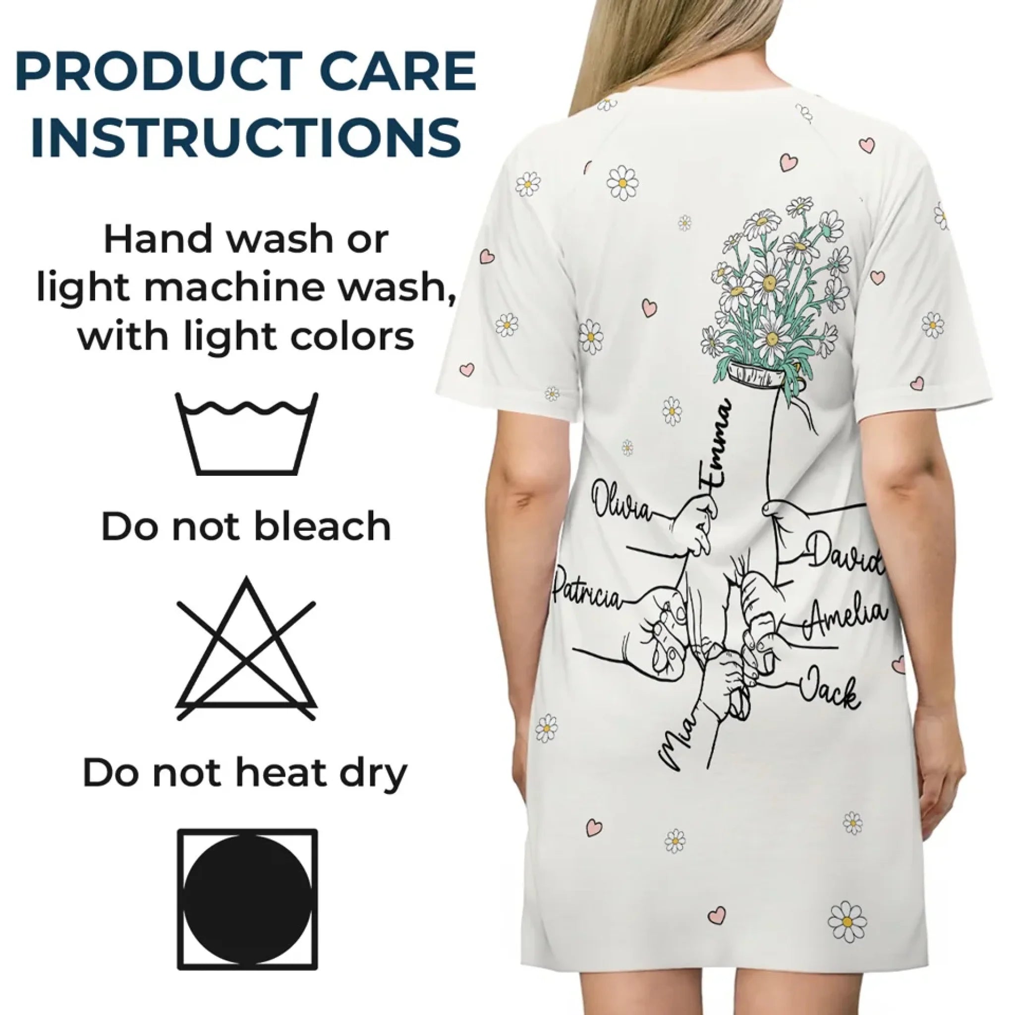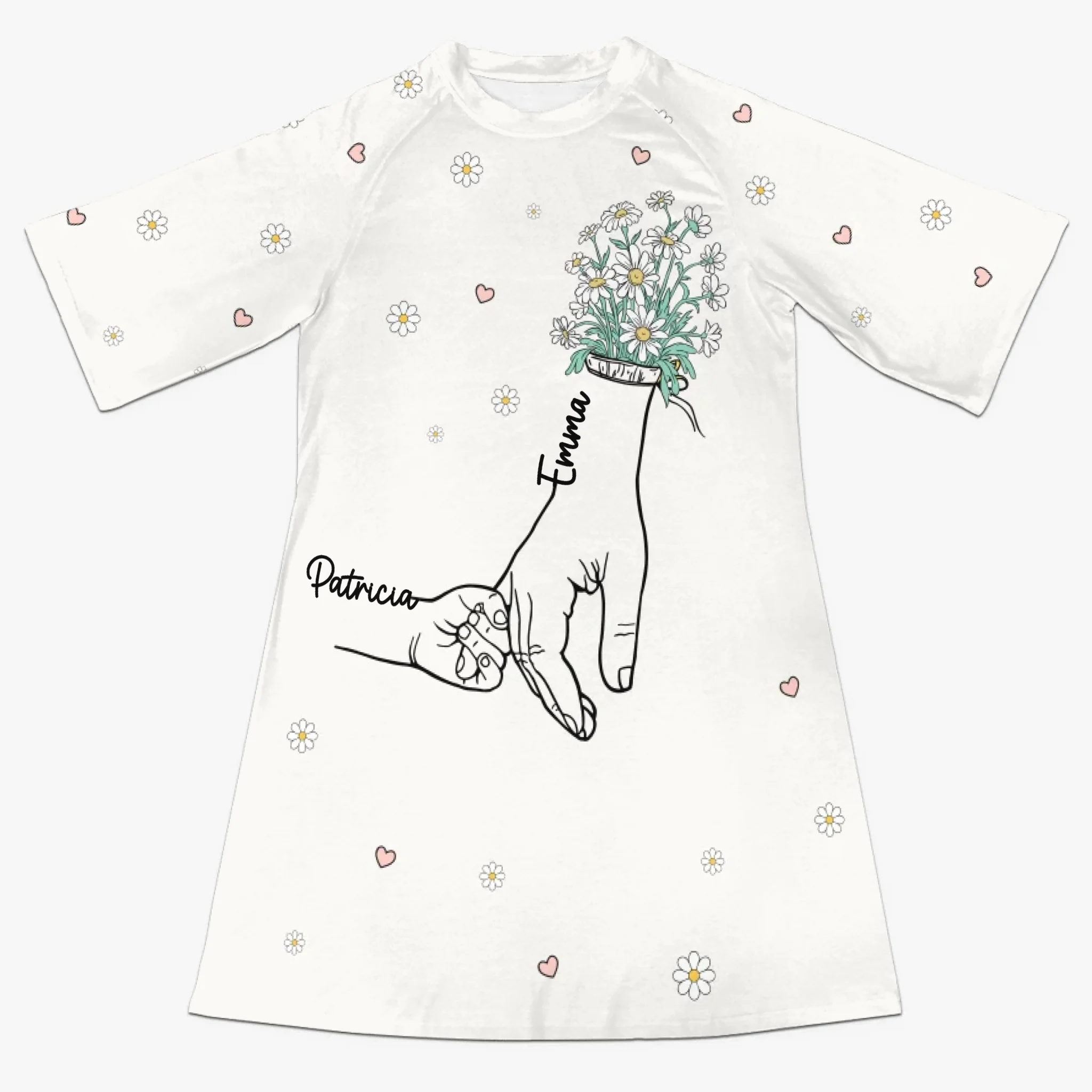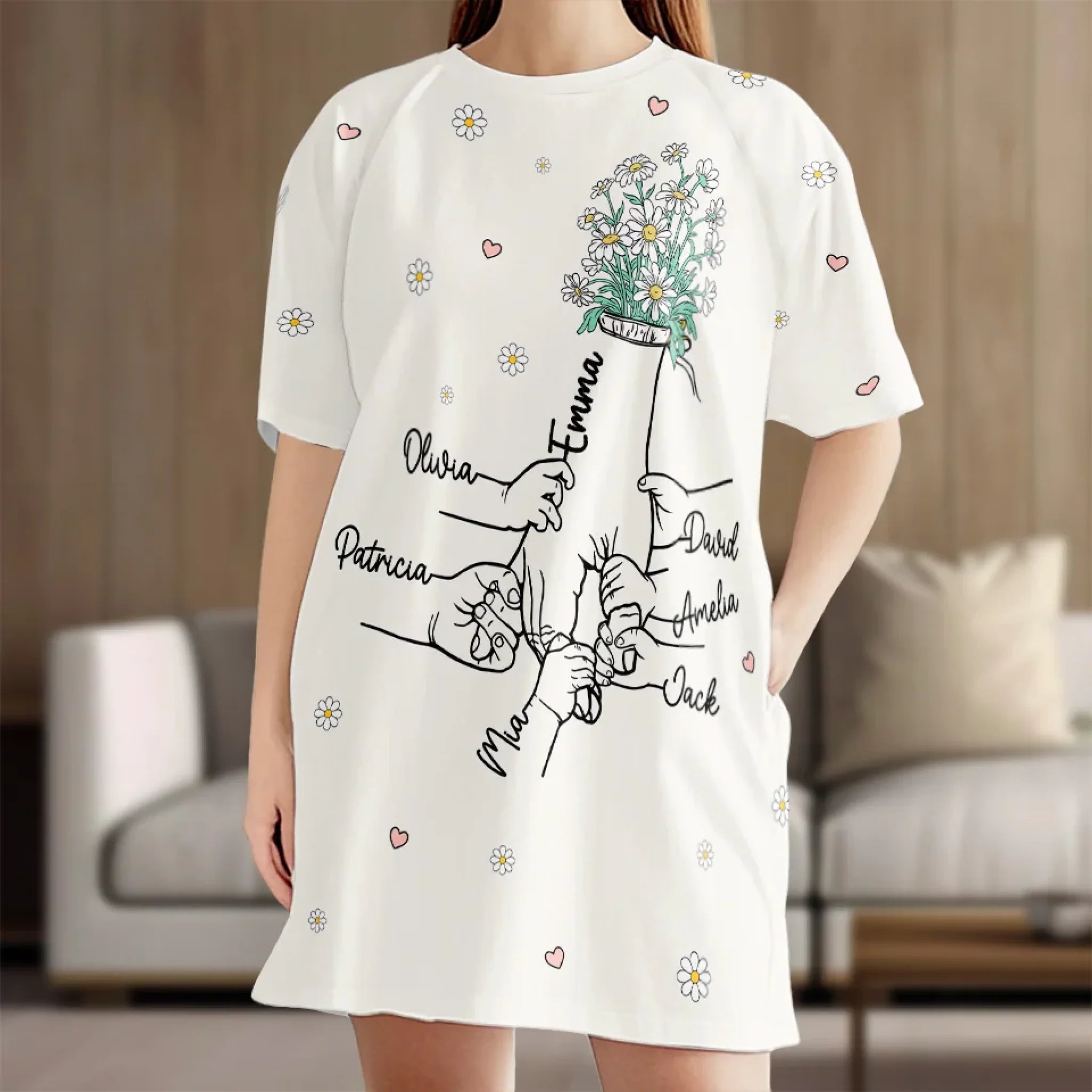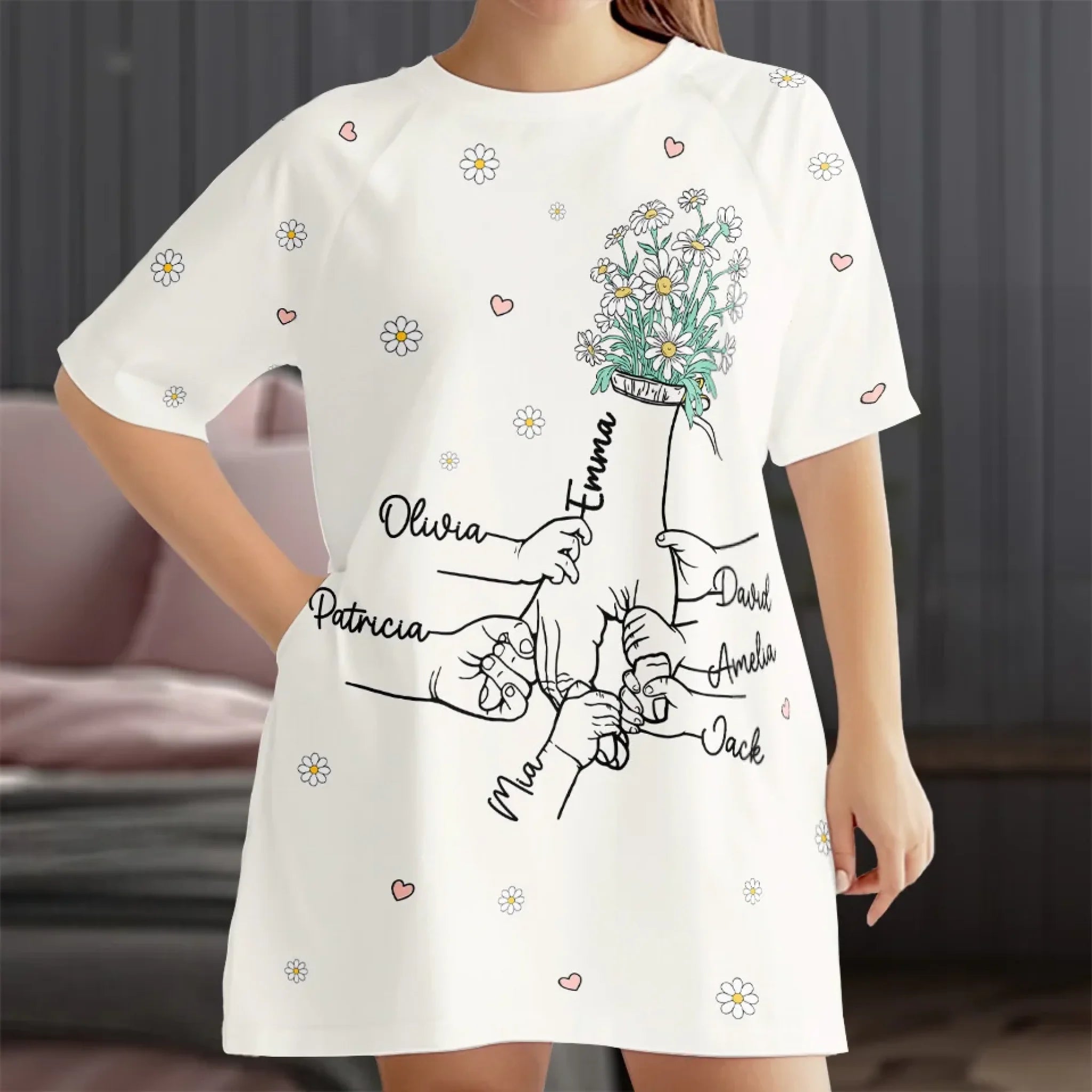 Hand In Hand, Heart To Heart - Family Personalized Custom Women's Sleep Tee - Mother's Day Gift For Mom, Grandma