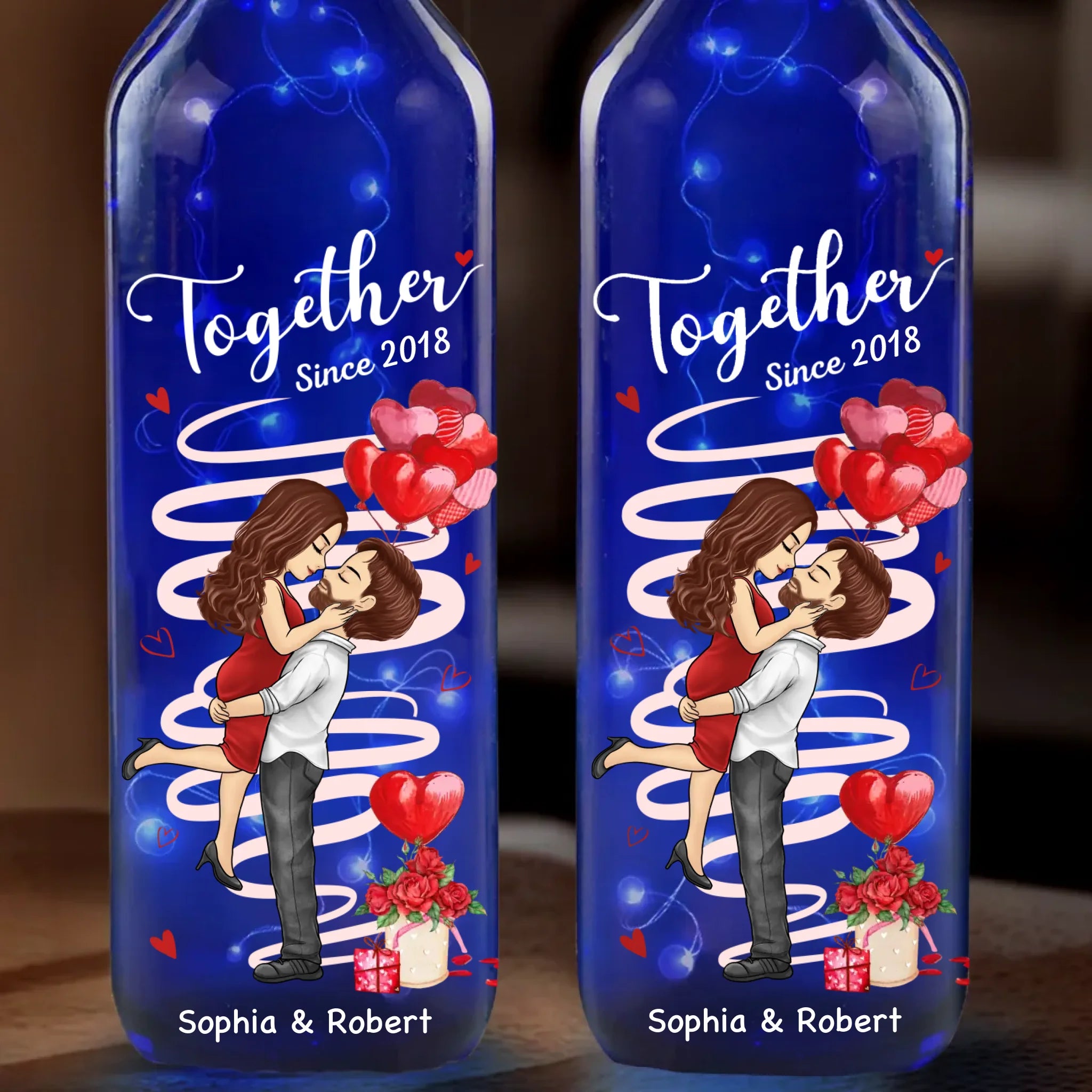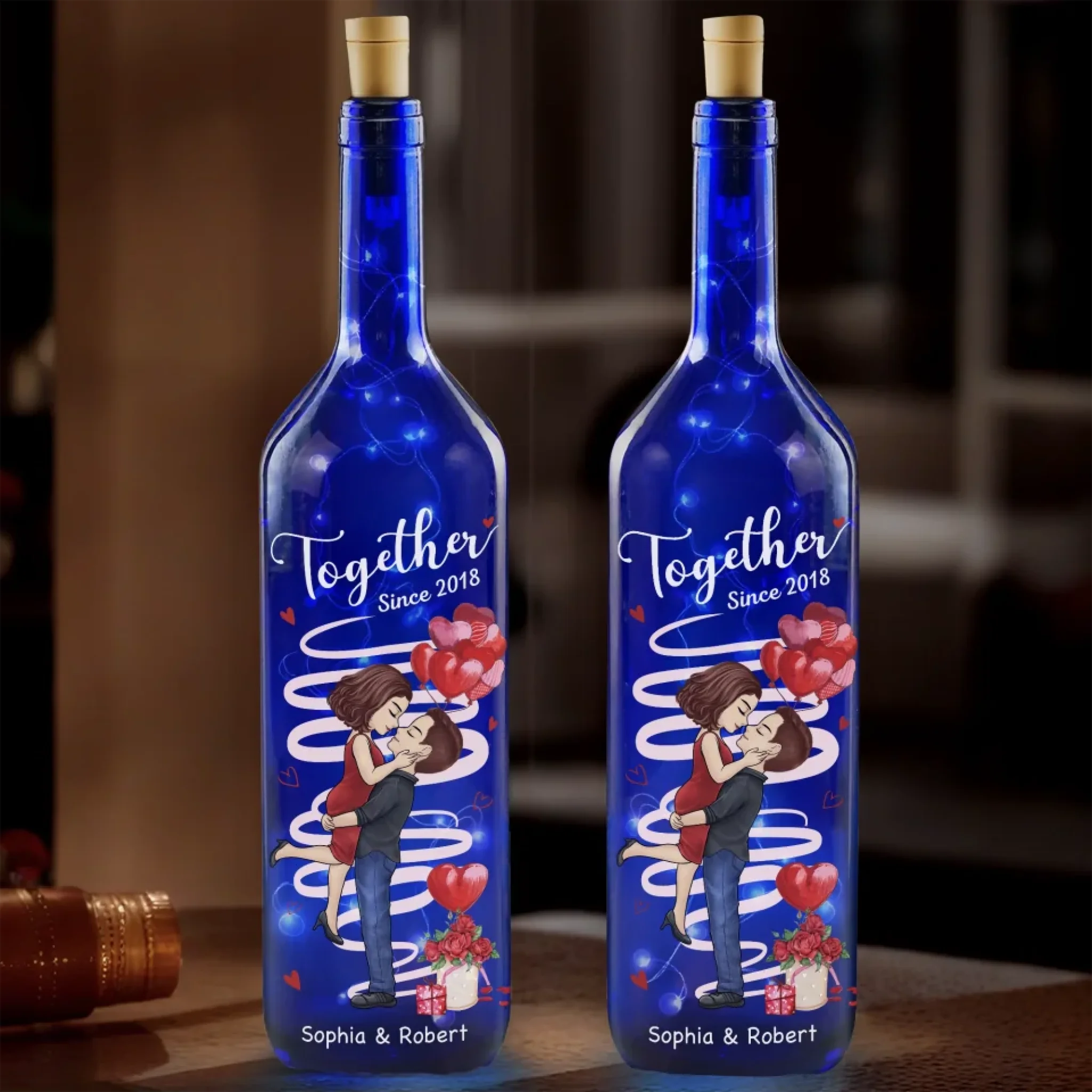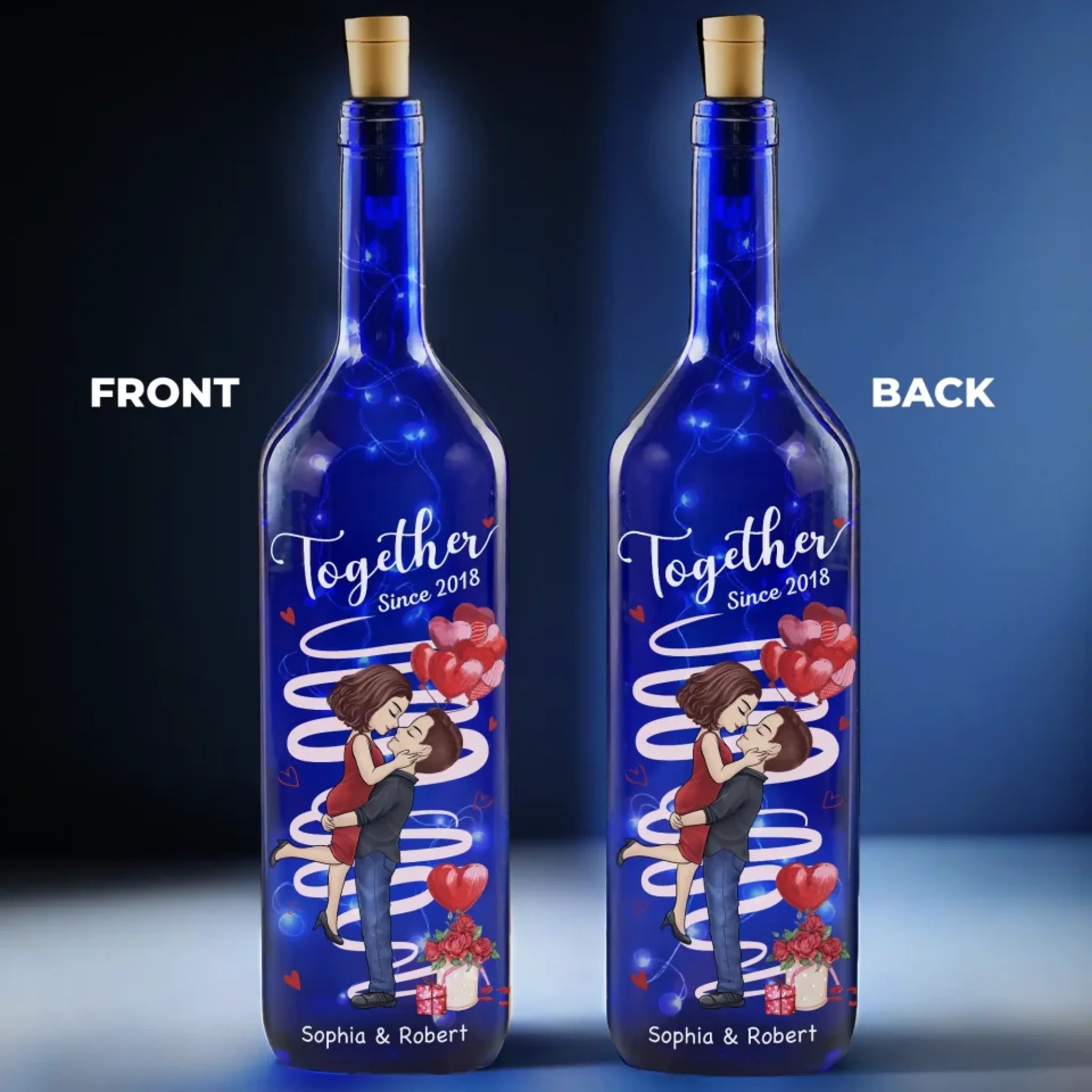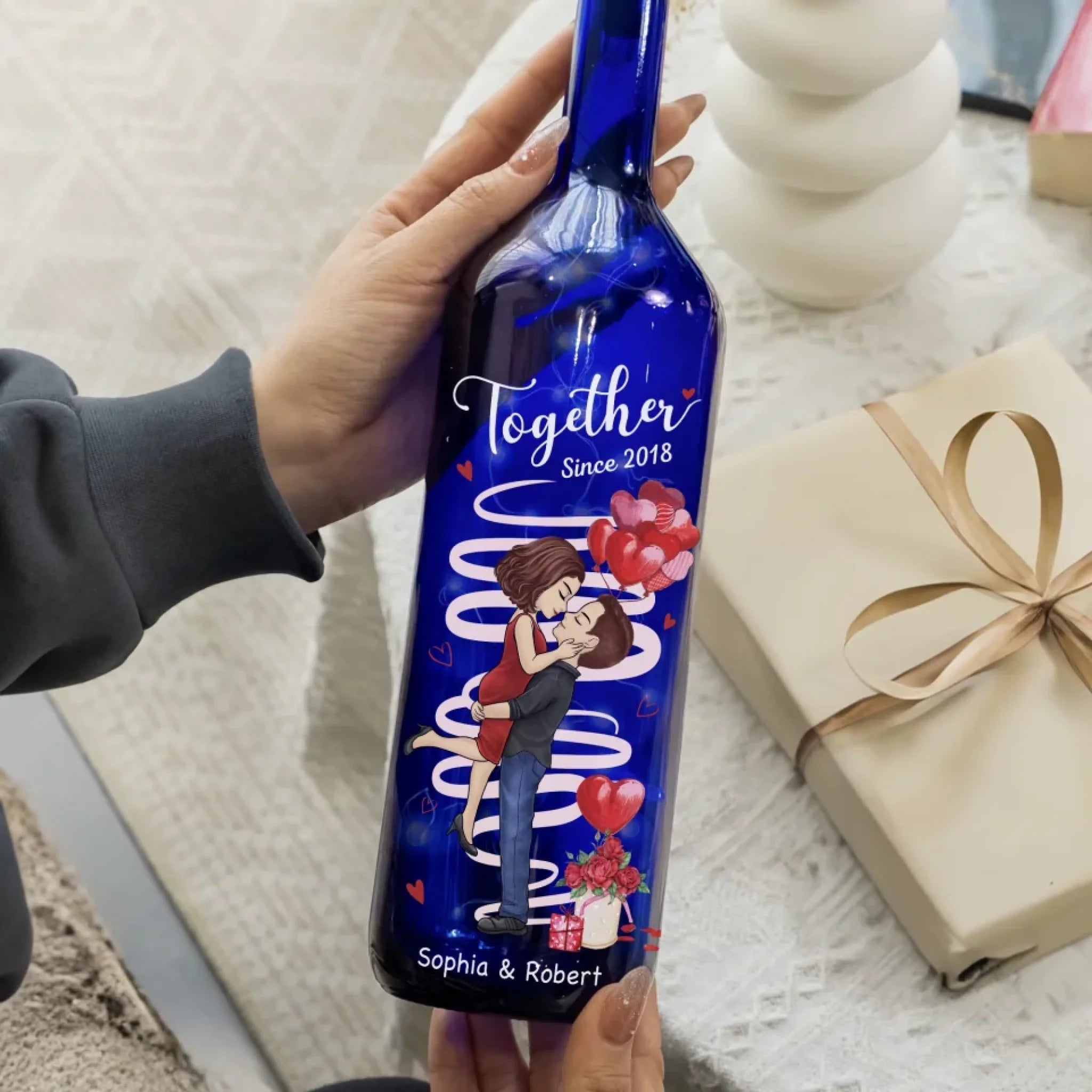 Hand In Hand, Heart To Heart, Forever Ours - Couple Personalized Custom Blue Bottle Lamp - Gift For Husband Wife, Anniversary