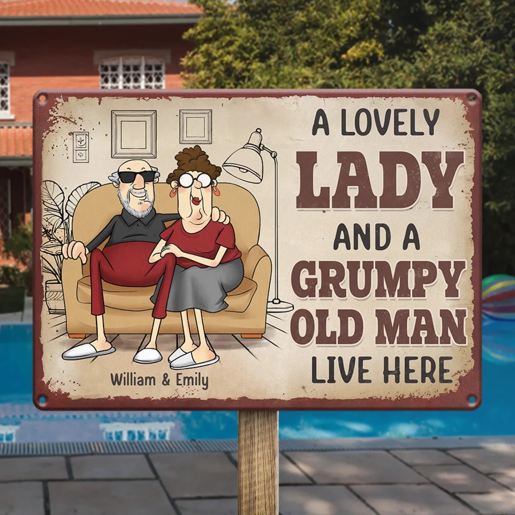 Happily Ever After, With A Side Of Grump - Couple Personalized Custom Home Decor Metal Sign - House Warming Gift For Husband Wife, Anniversary