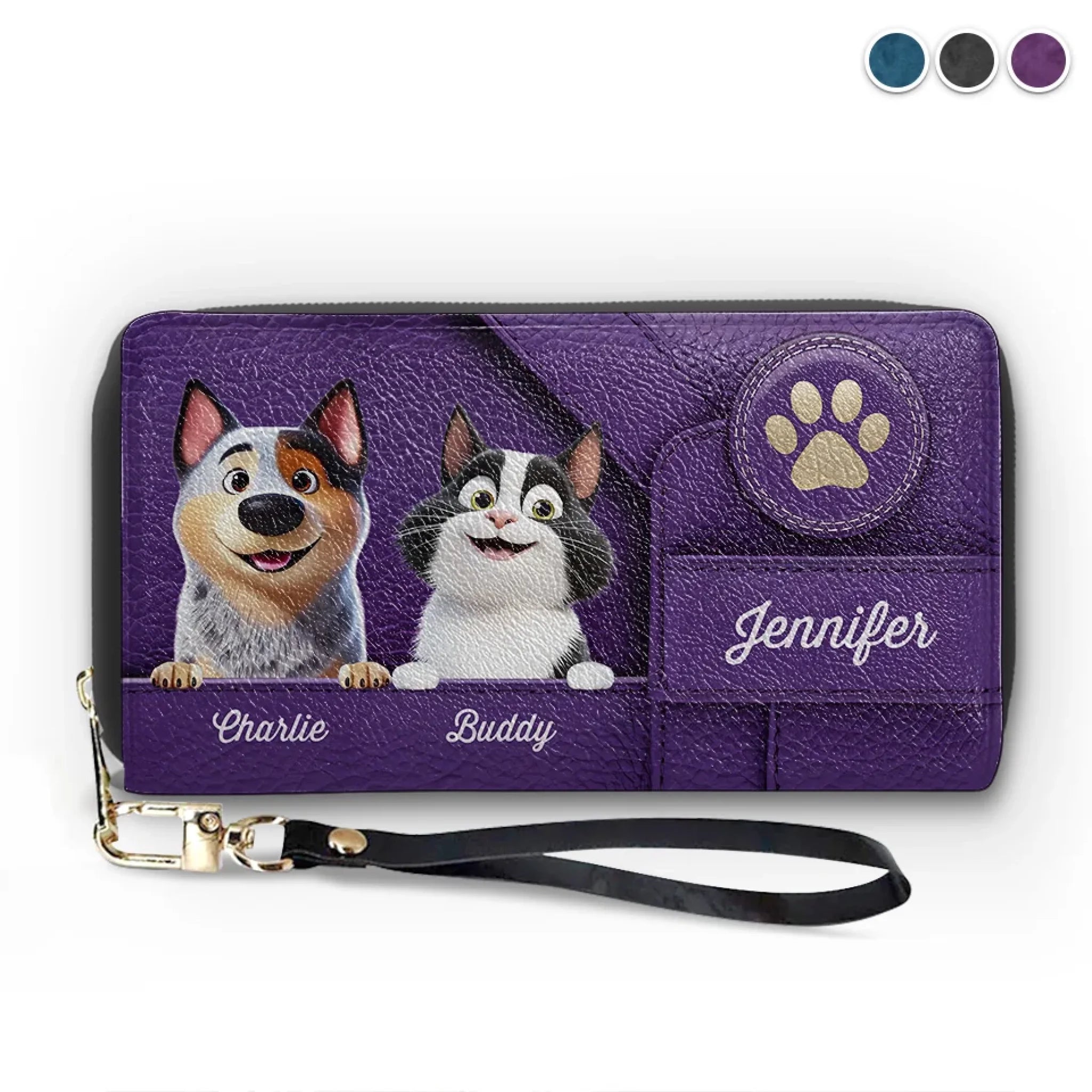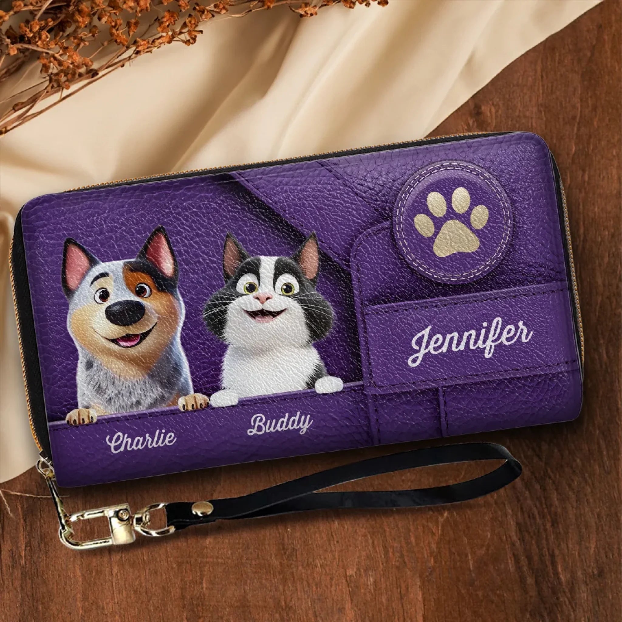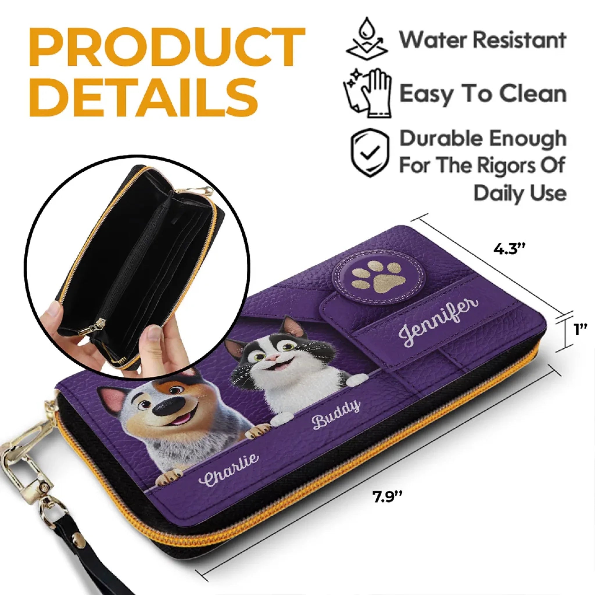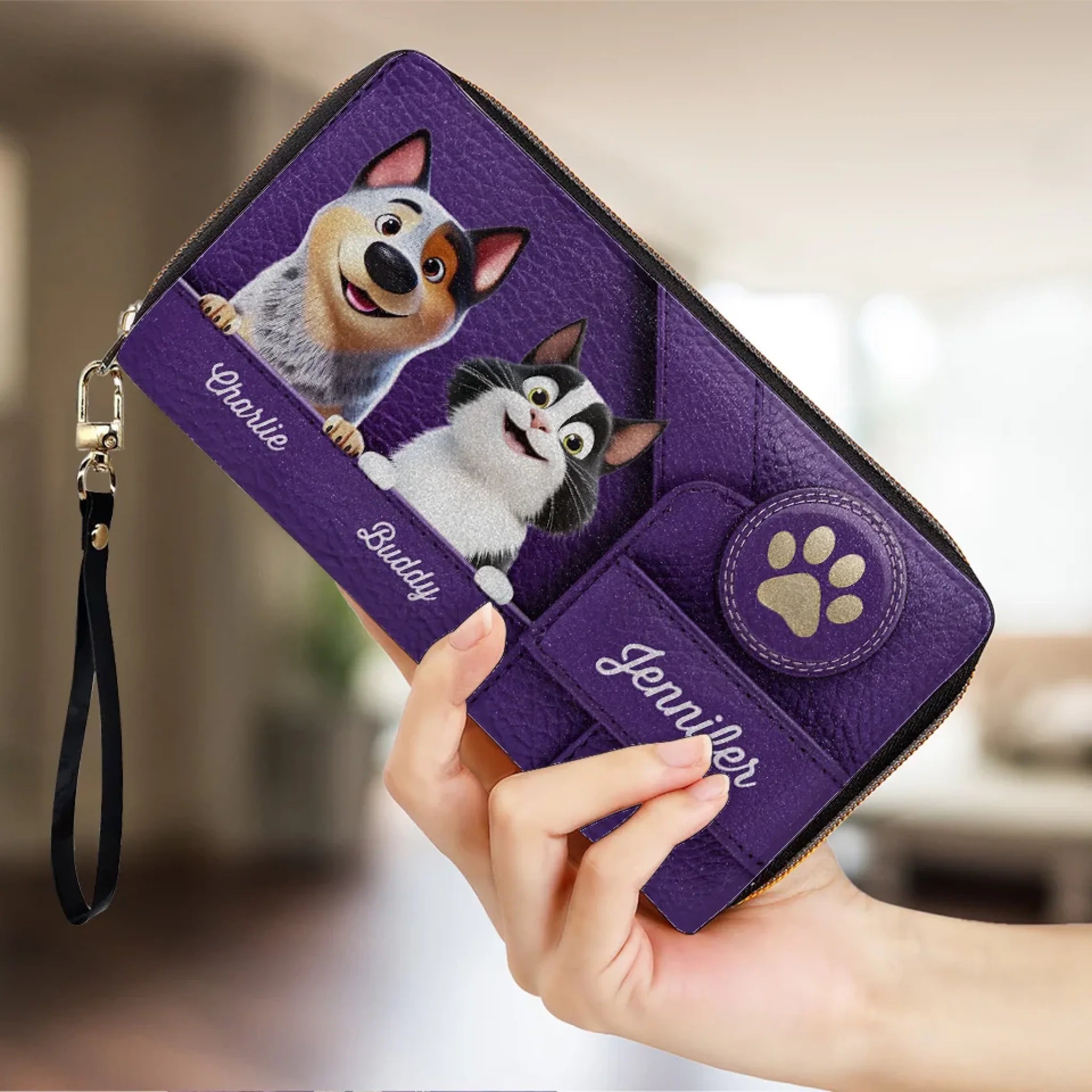 Happiness Is A Wagging Tail - Dog & Cat Personalized Custom Leather Long Wallet - Gift For Pet Owners, Pet Lovers