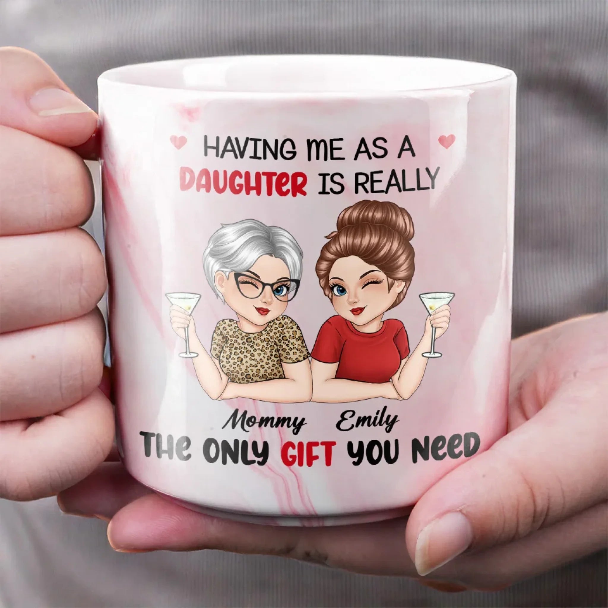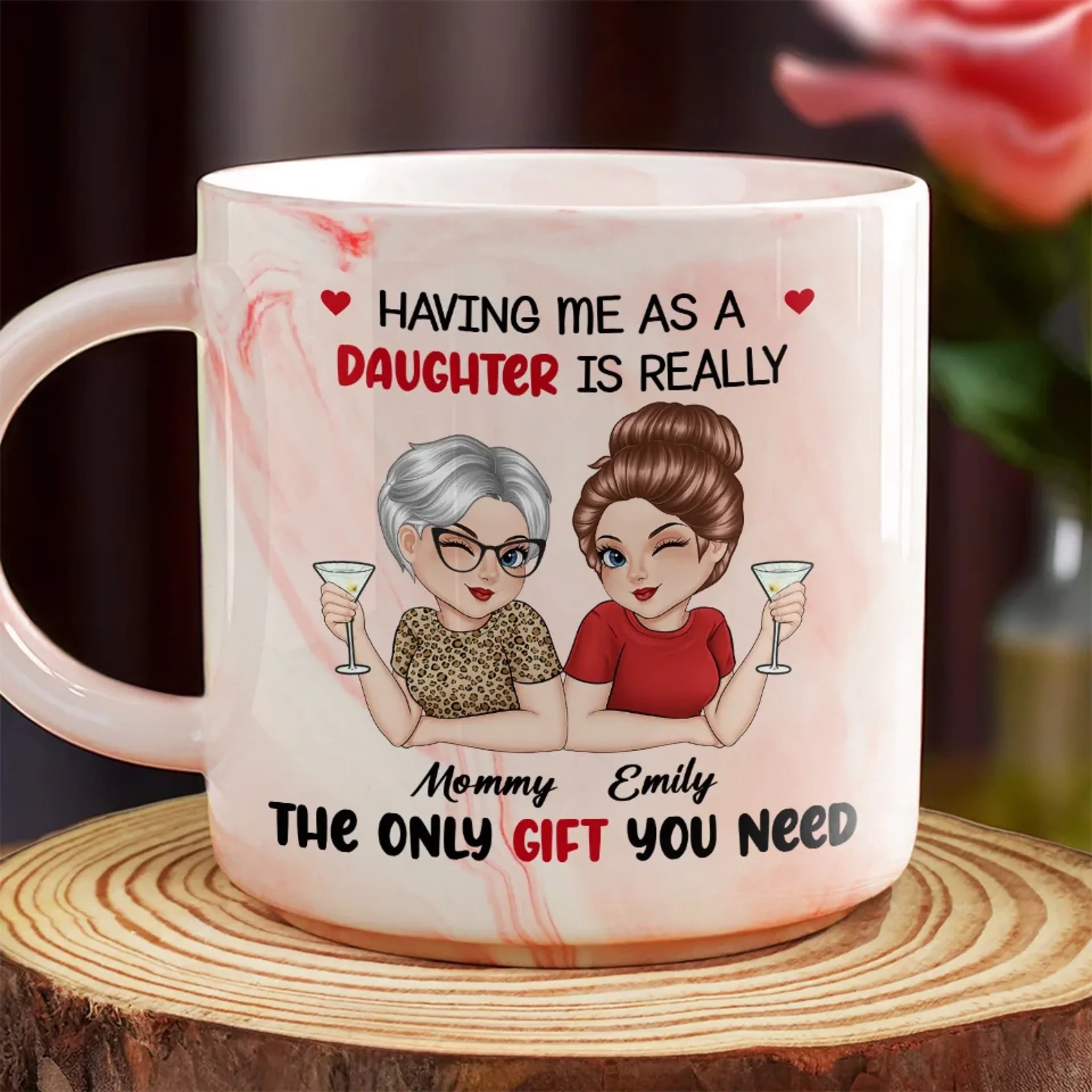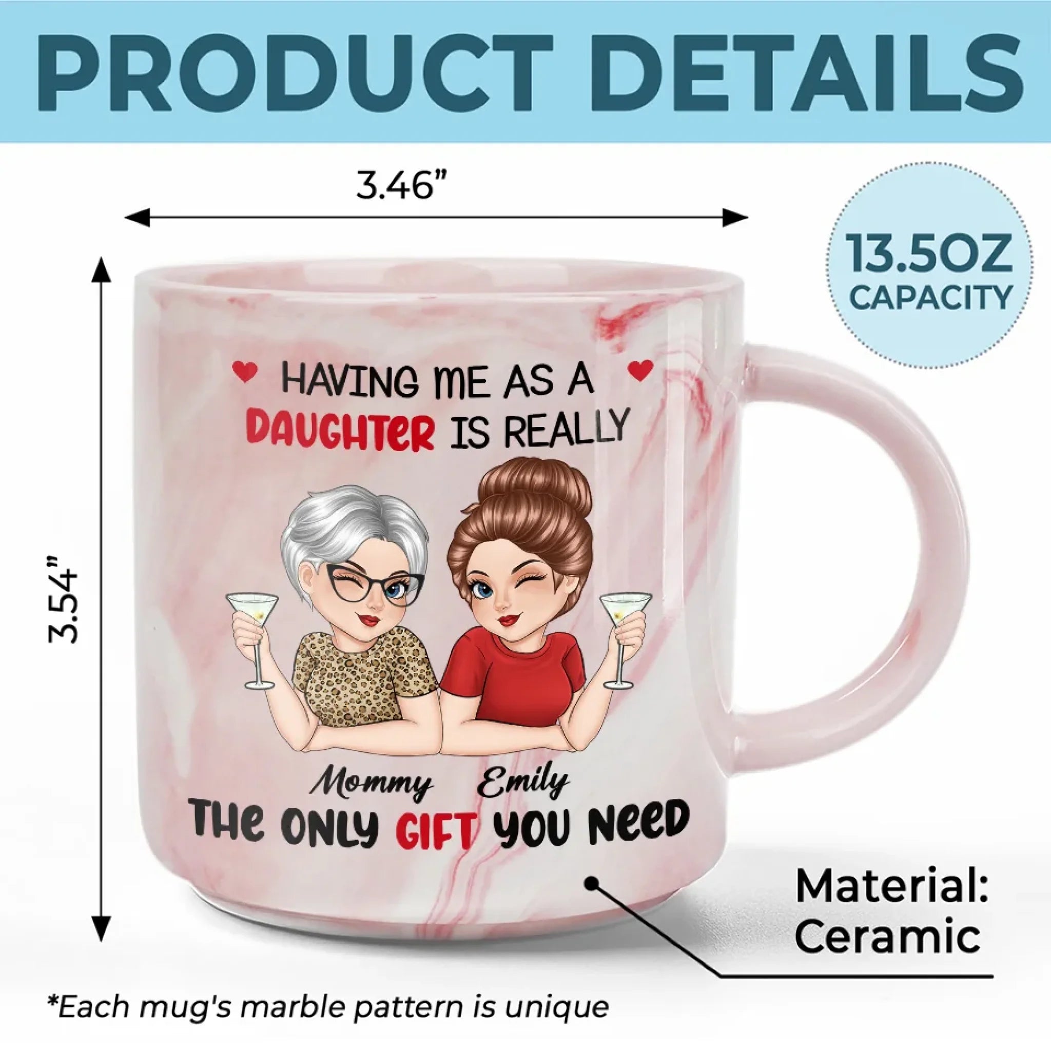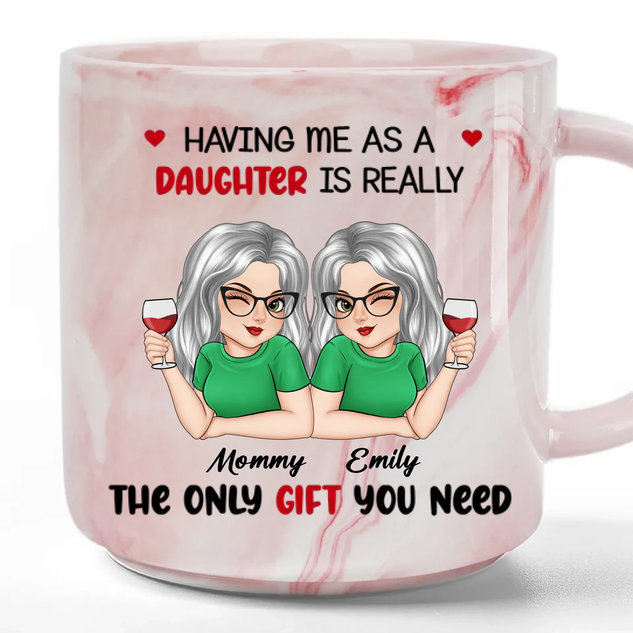 Having A Daughter Like Me, You Don’t Need Any More Gifts - Family Personalized Custom Marble Mug - Mother's Day, Gift For Mom, Daughter, Son