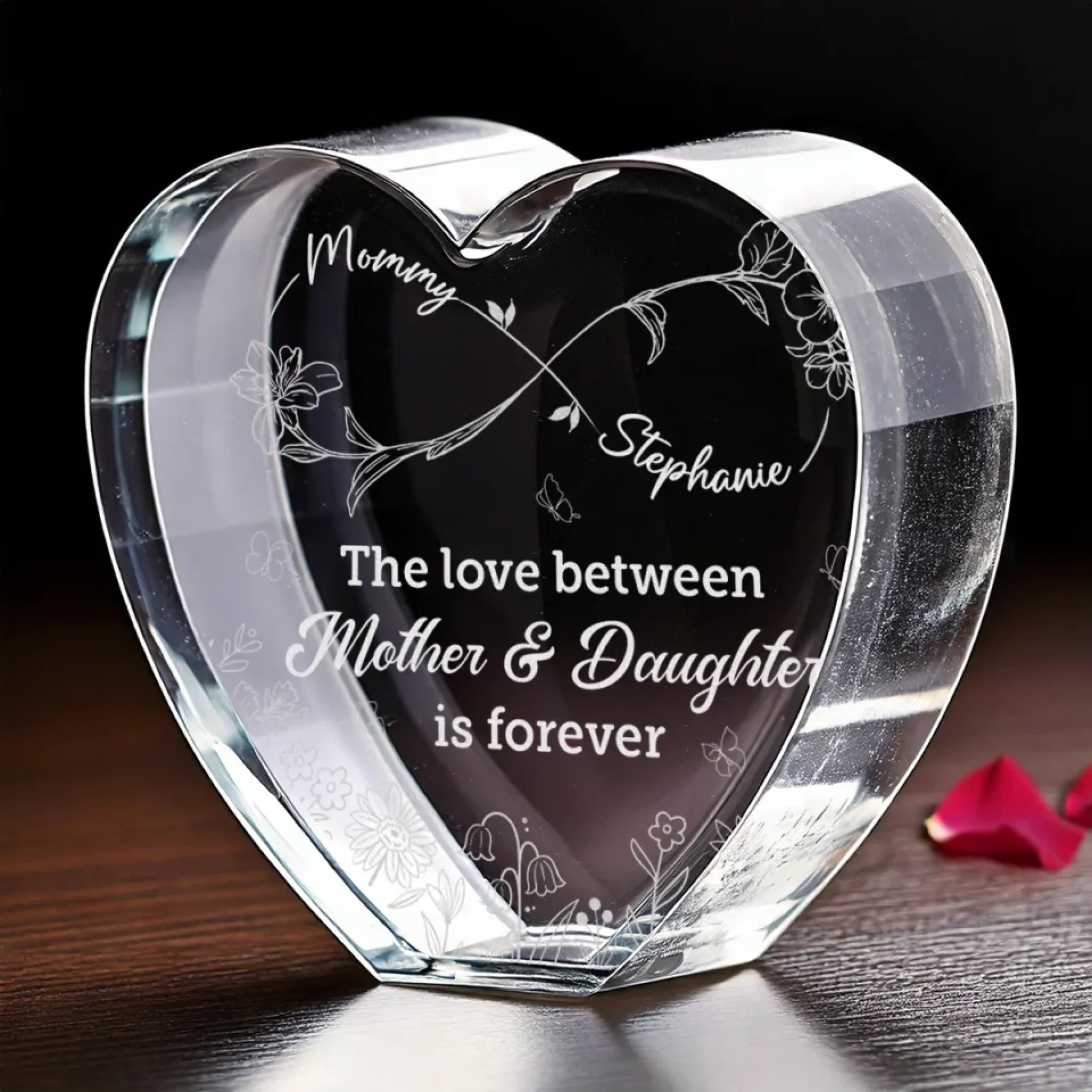 Utilizing advanced internal laser engraving technology, this crystal heart displays intricate, permanent designs inside the crystal, creating a stunning and timeless piece.