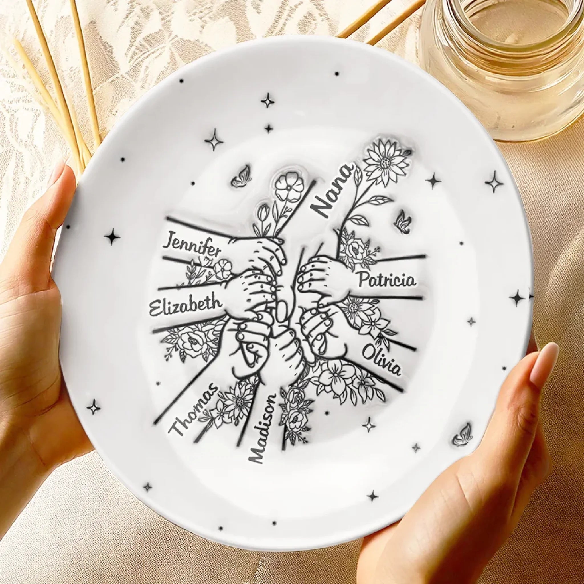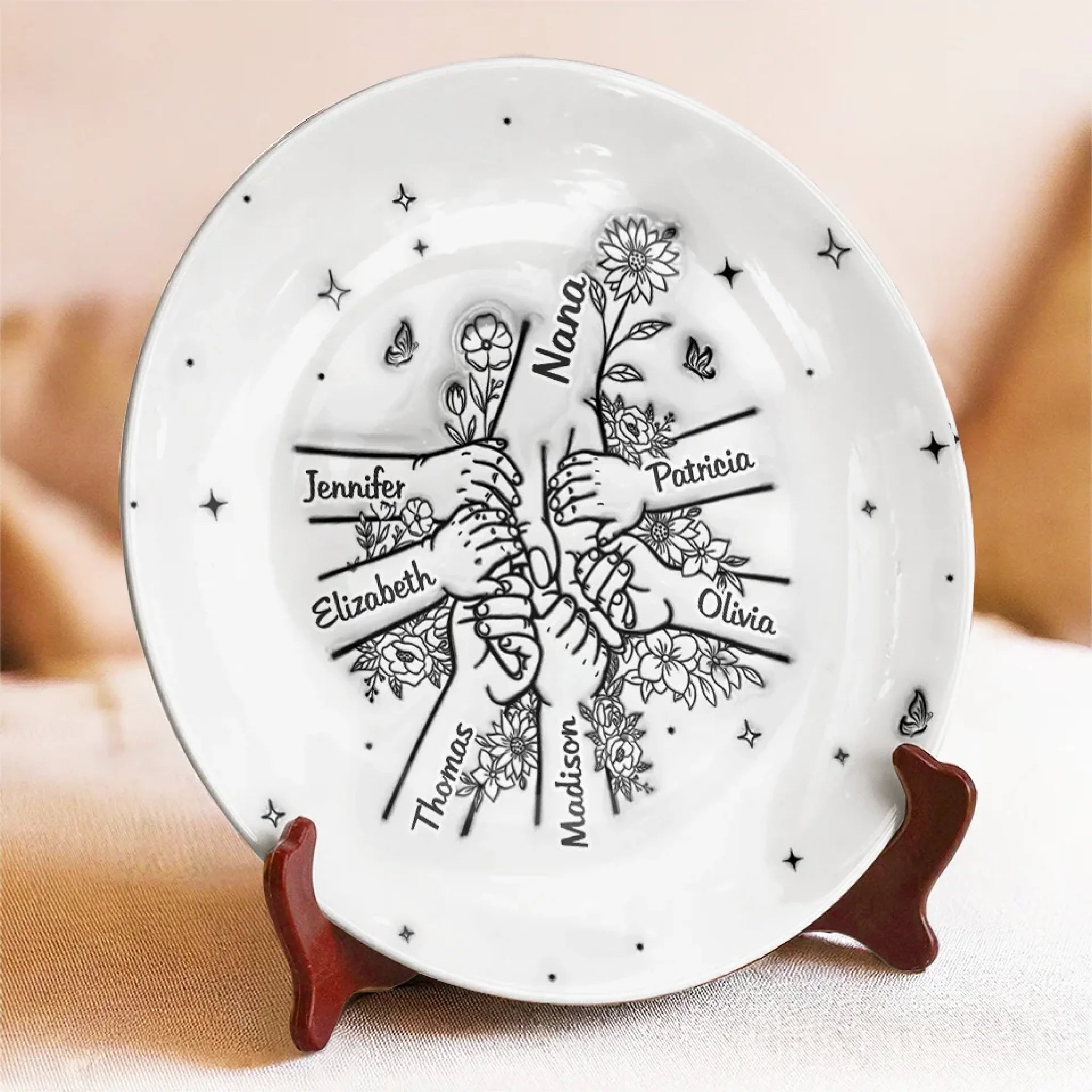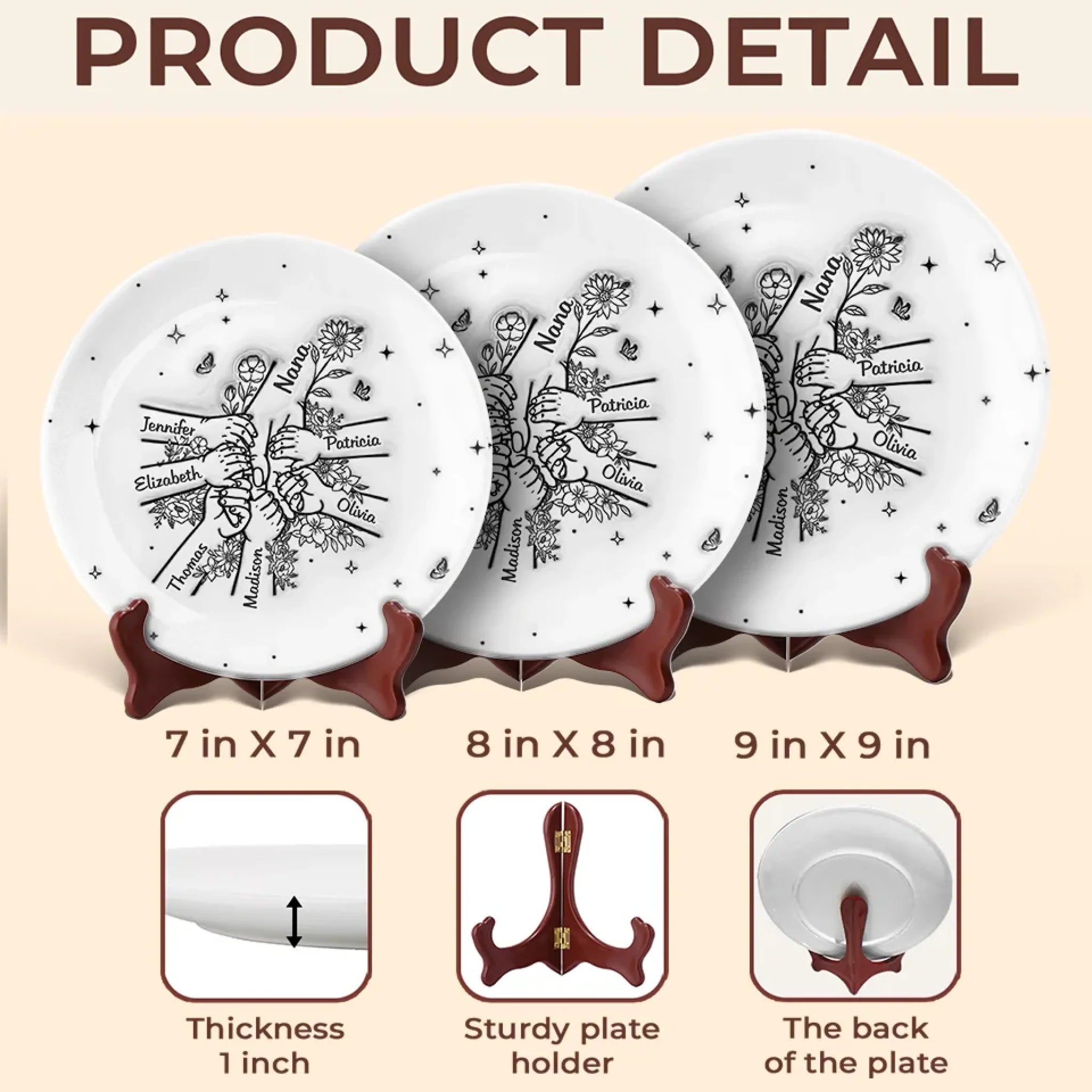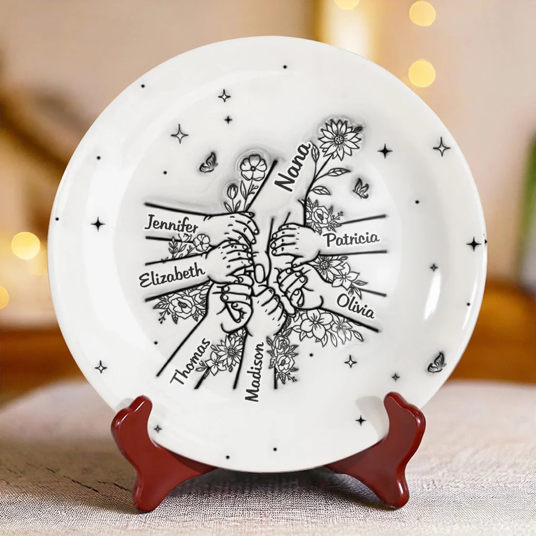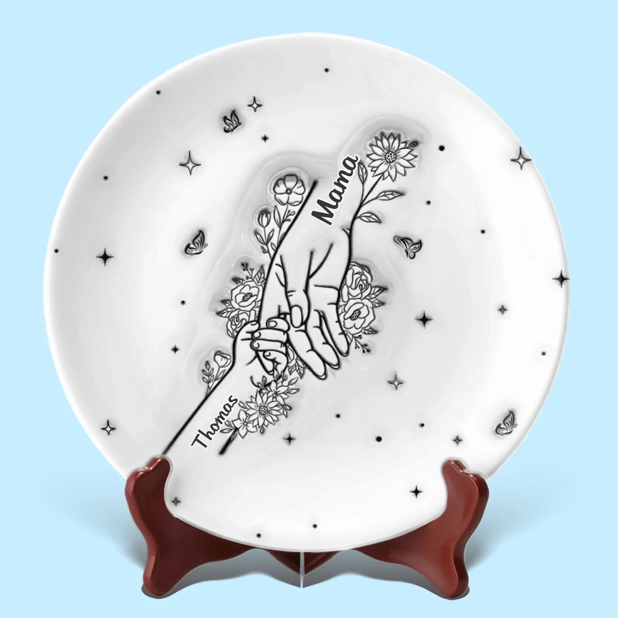 Holding Mom’s Hand, Holding Love - Family Personalized Custom 3D Inflated Effect Printed Ceramic Plate - Mother's Day, Gift For Mom, Grandma
