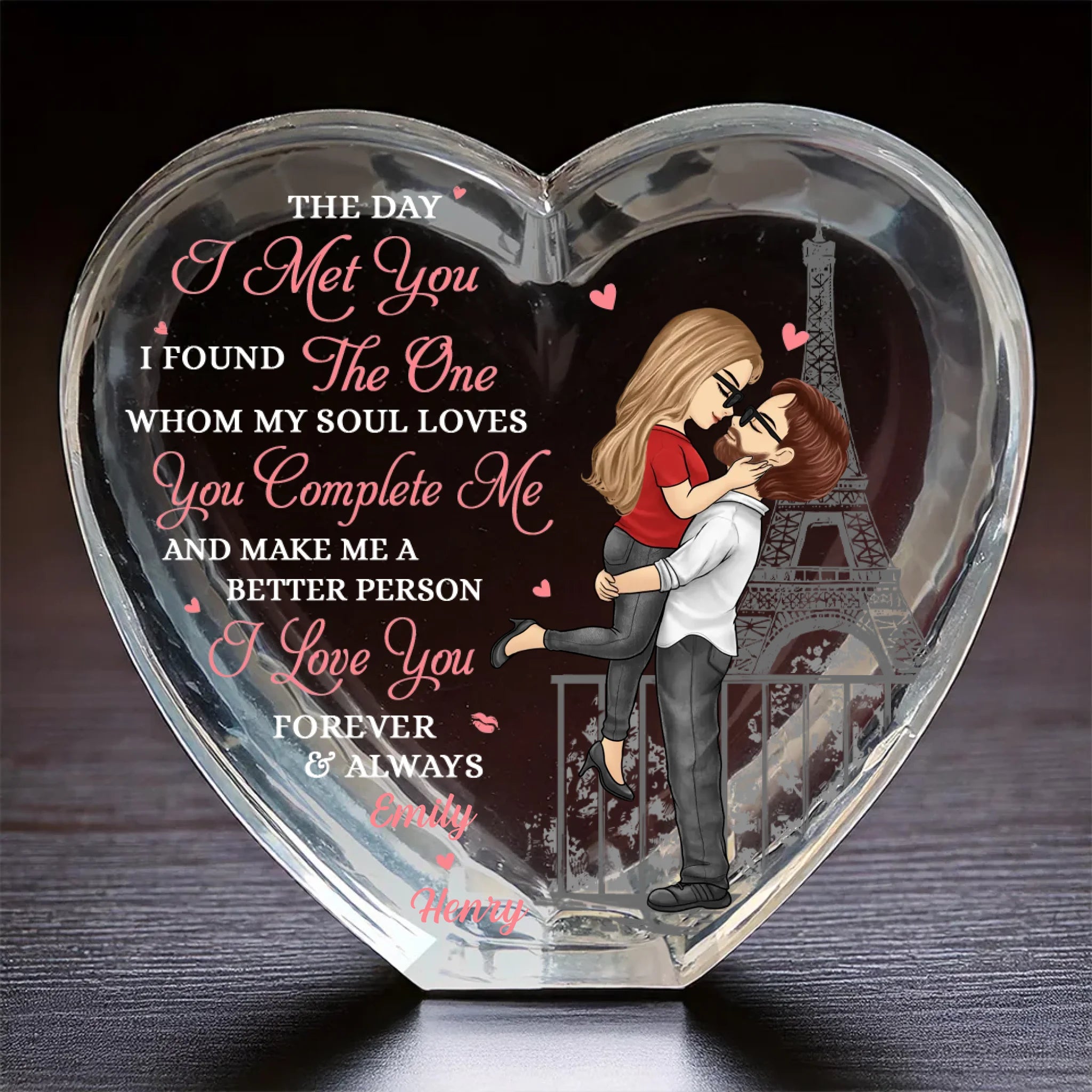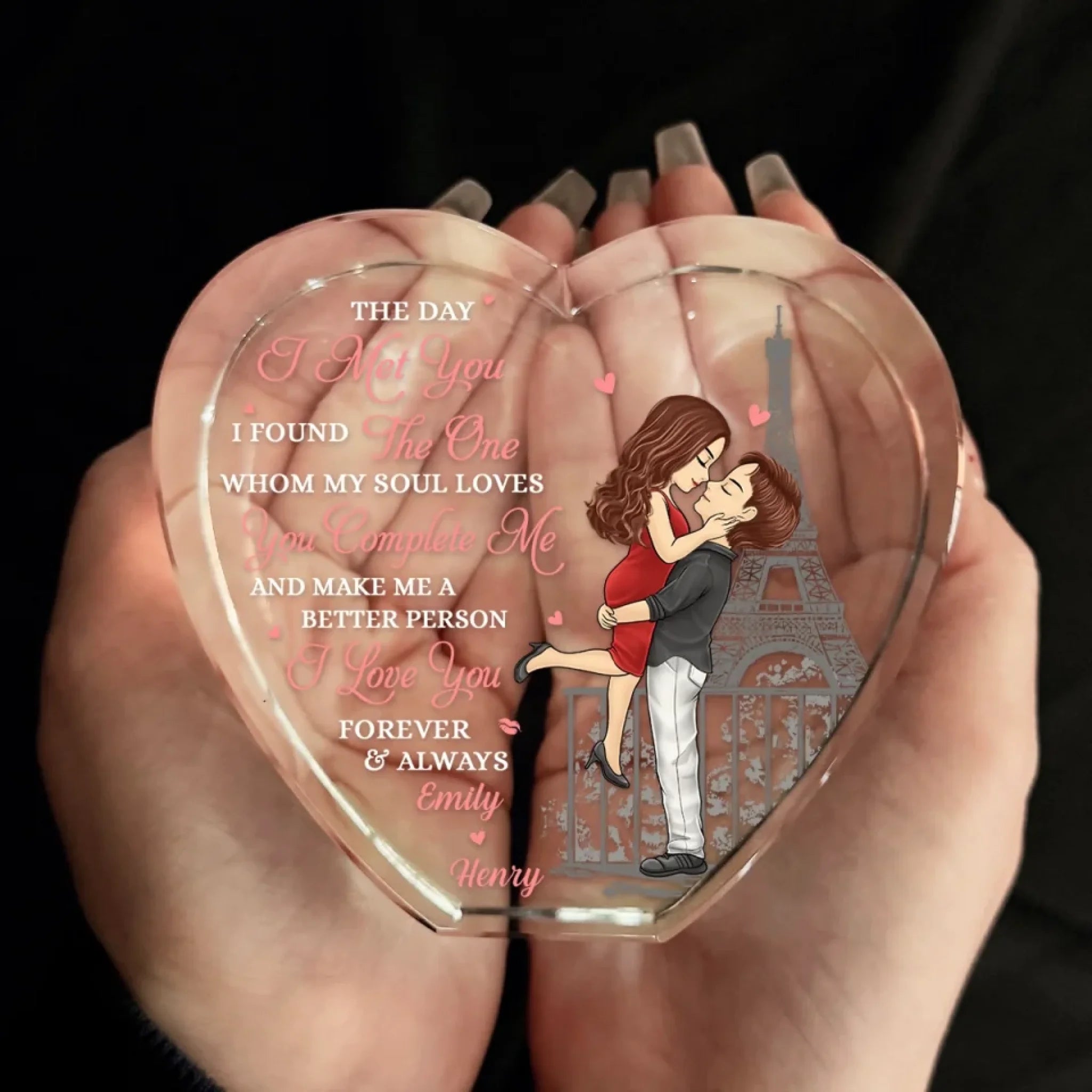 Holding You Forever - Couple Personalized Custom 3D Crystal Heart Shaped - Gift For Husband Wife, Anniversary