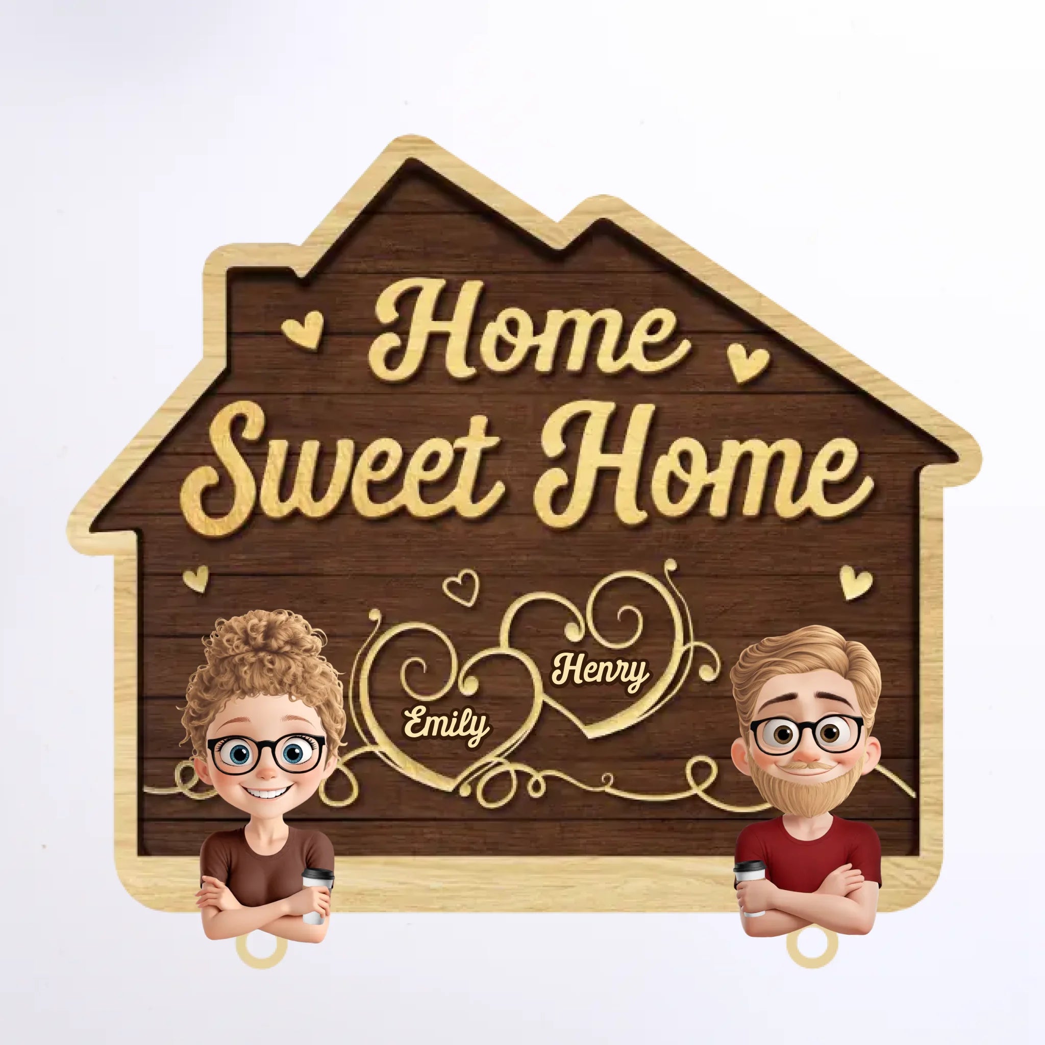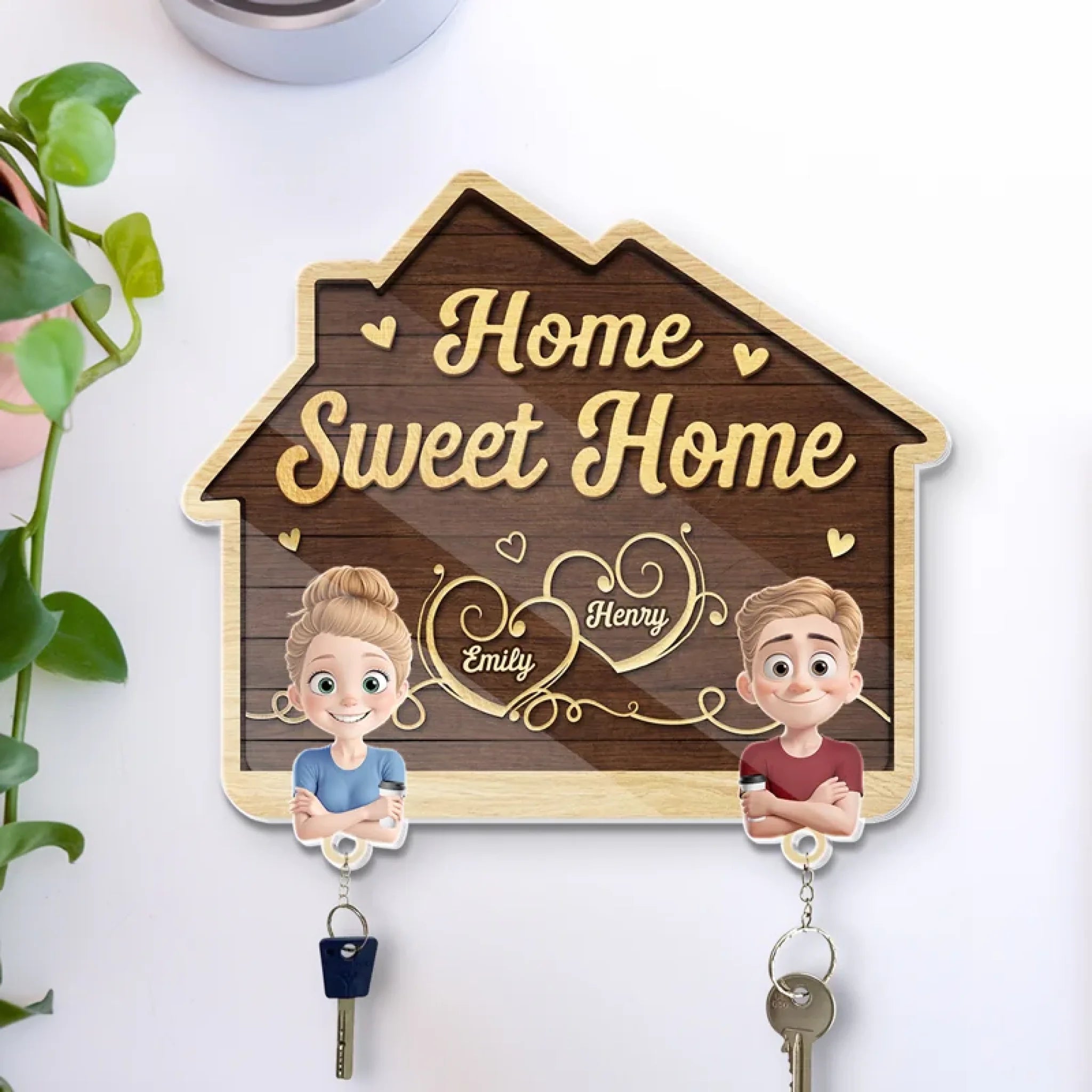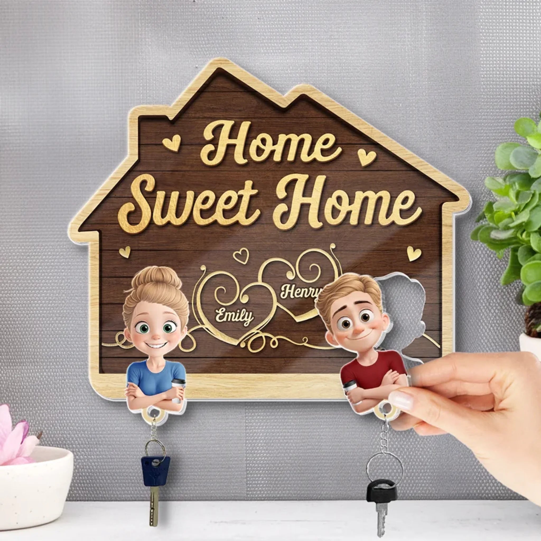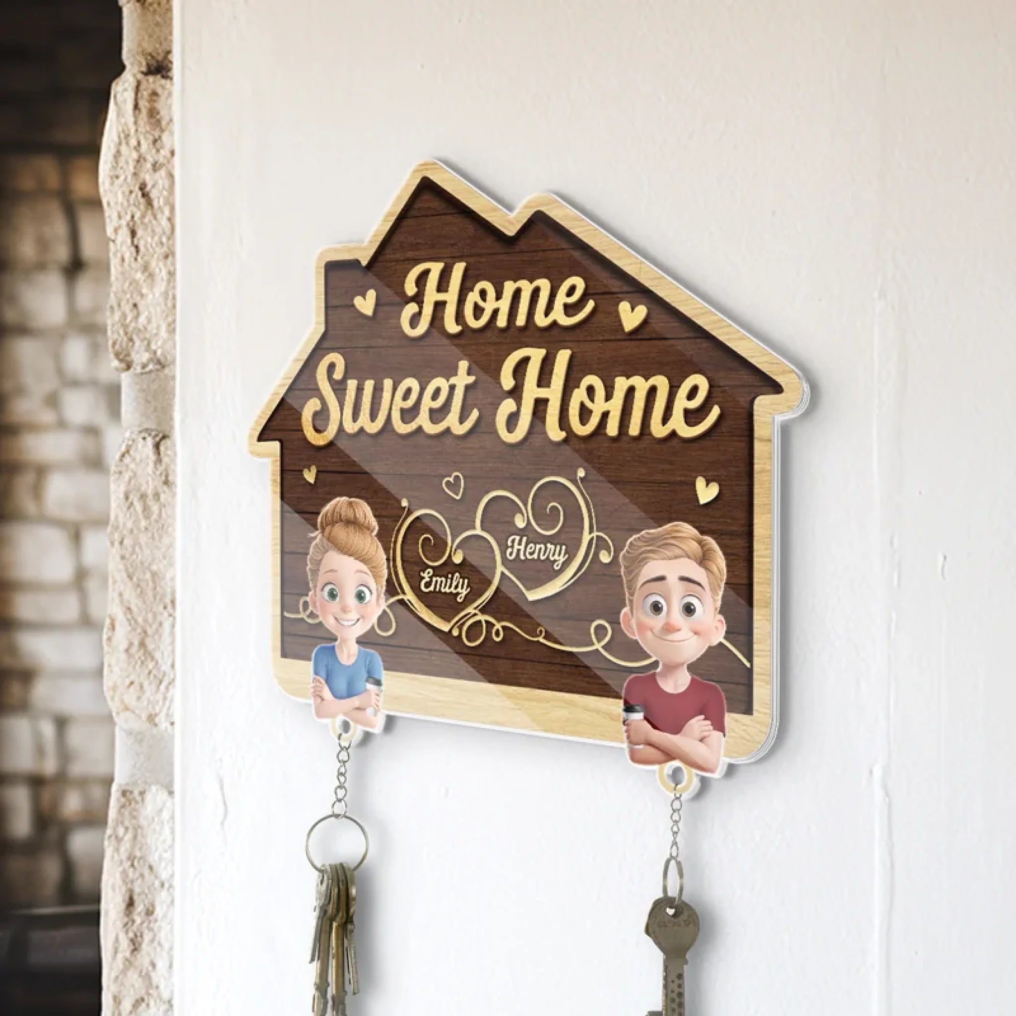Home Sweet Home - Couple Personalized Custom Acrylic Puzzle Key Holder - House Warming Gift For For Husband Wife, Anniversary
