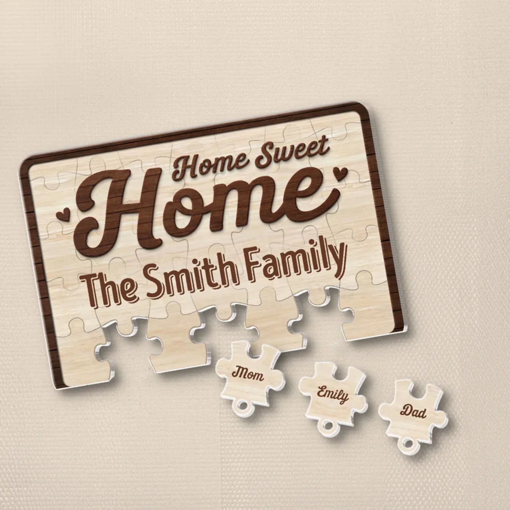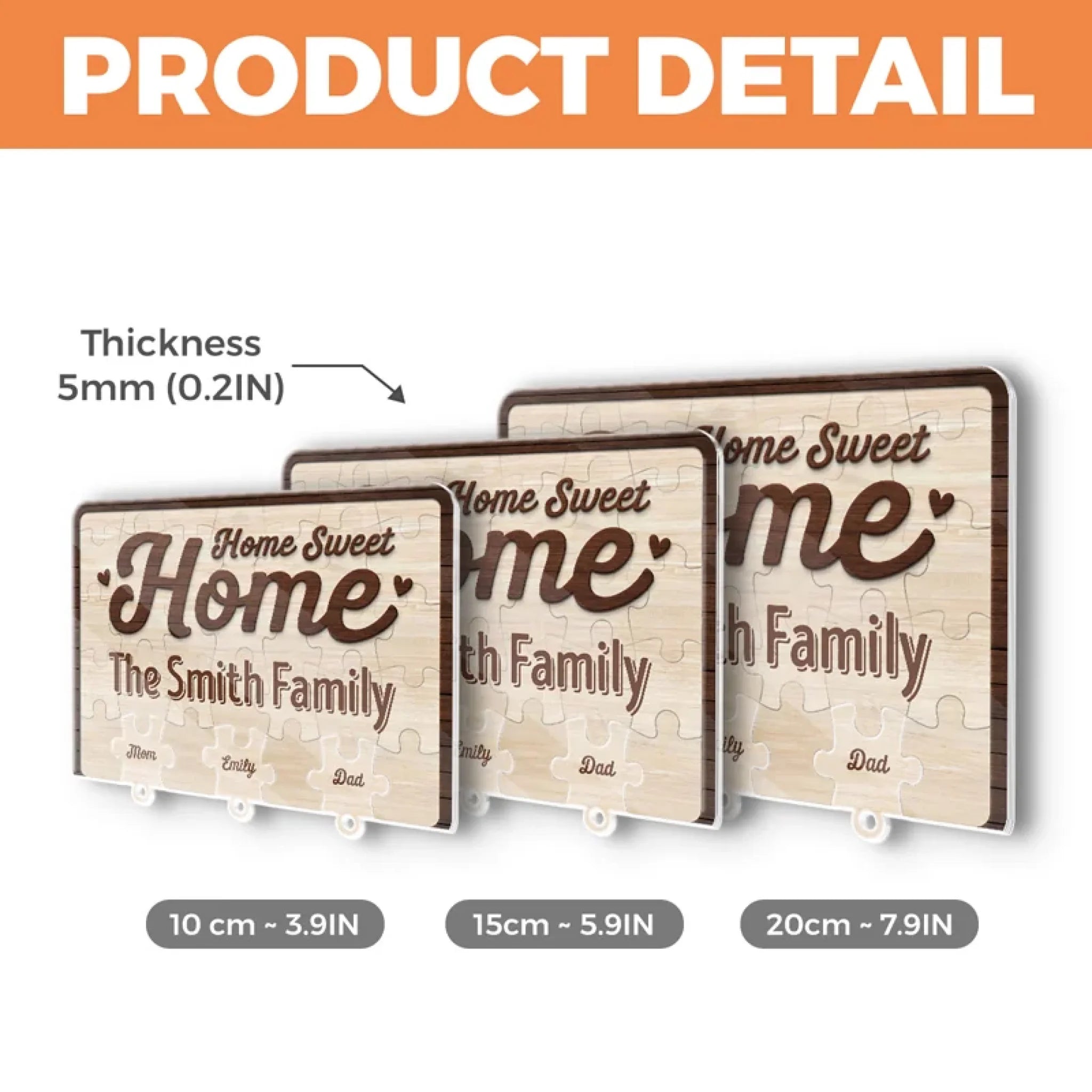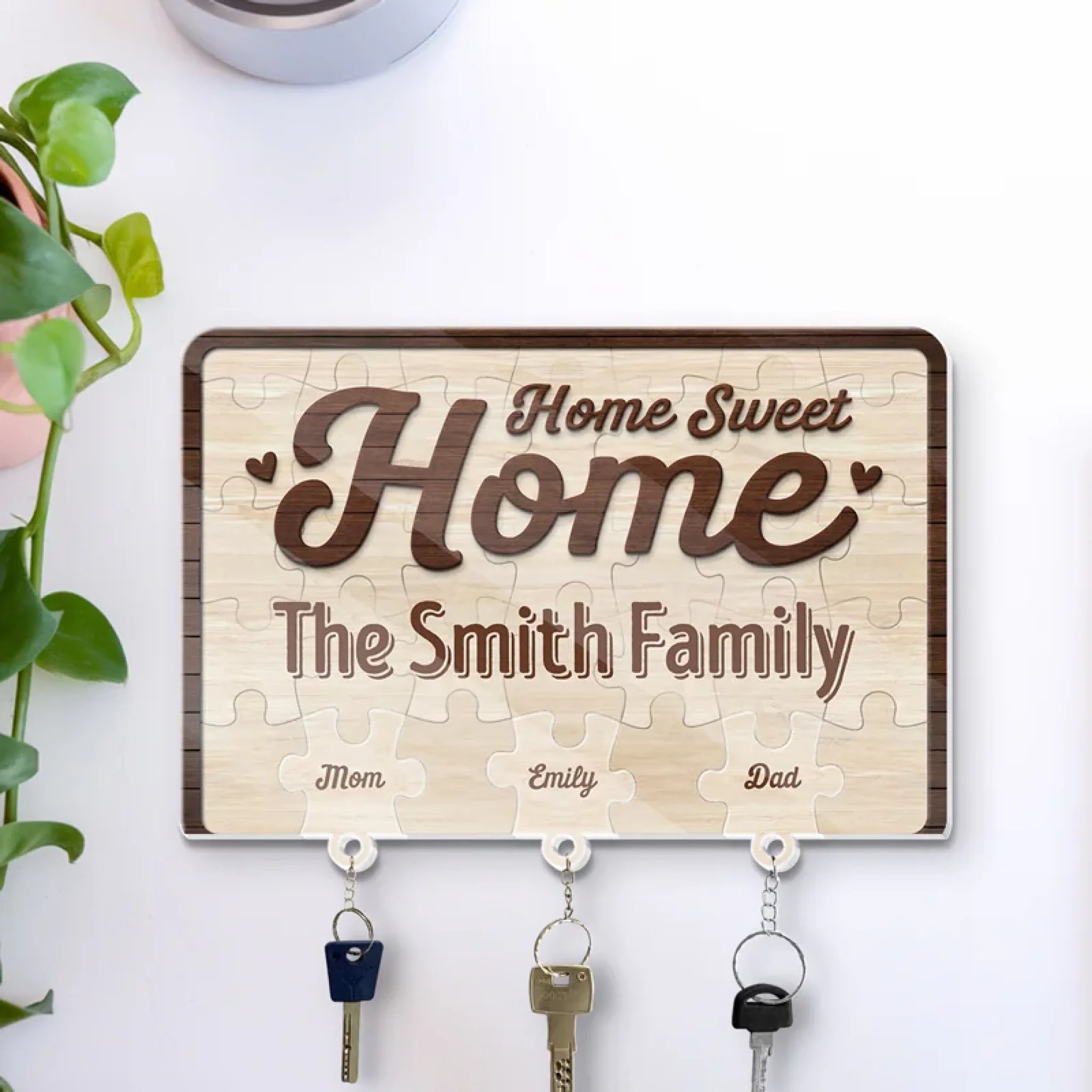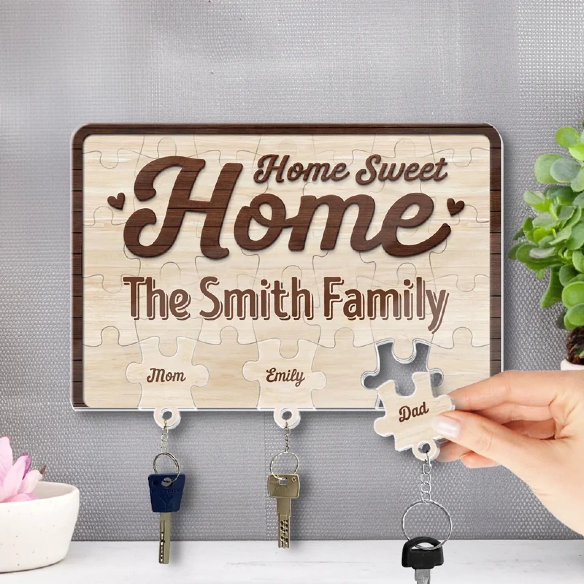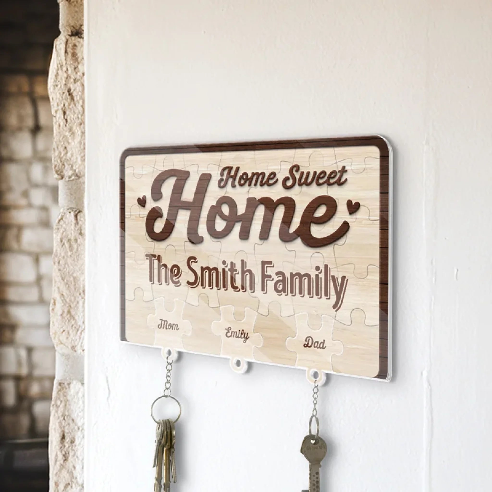 Home Sweet Home, Forever Loved - Family Personalized Custom Acrylic Puzzle Key Holder - House Warming Gift For Family Members