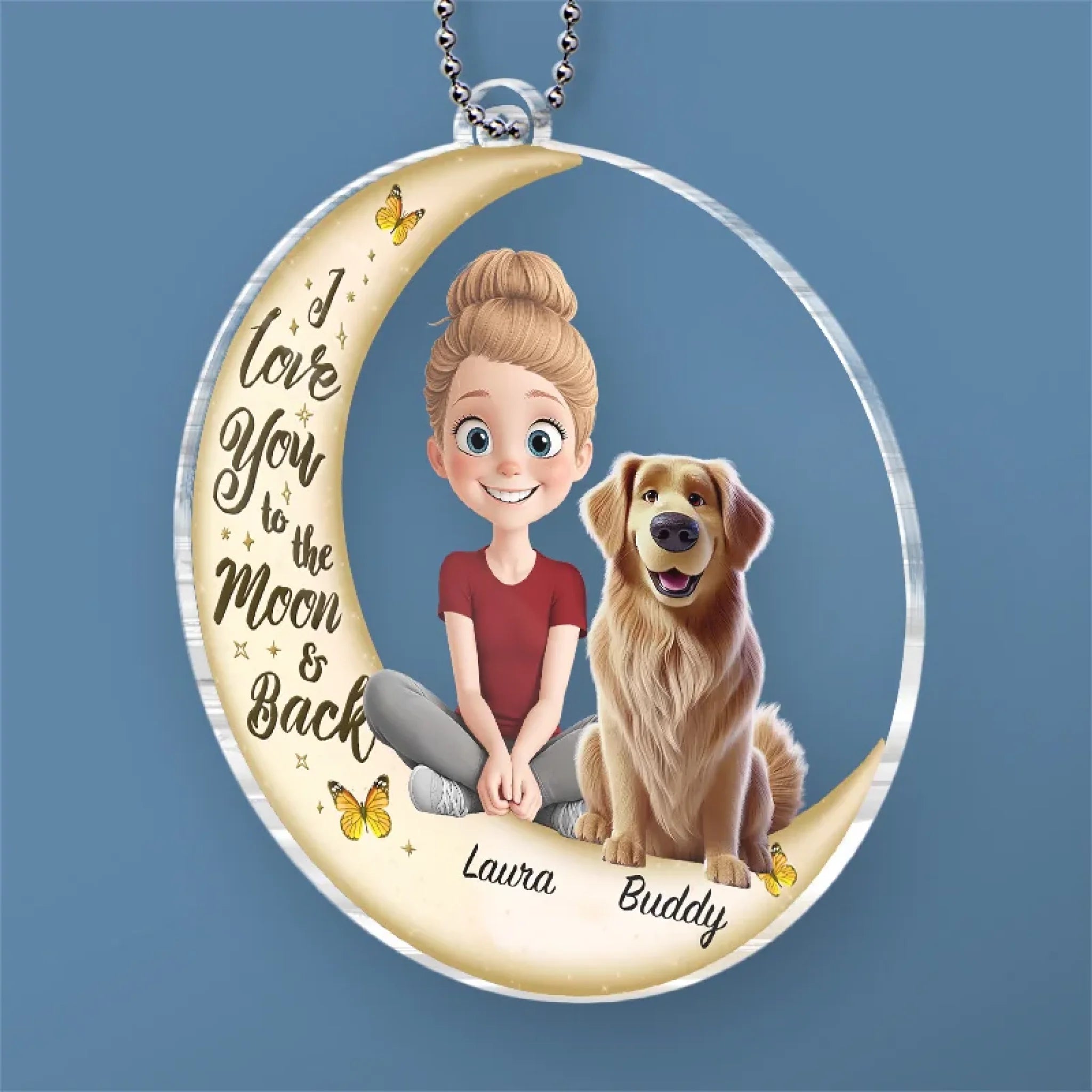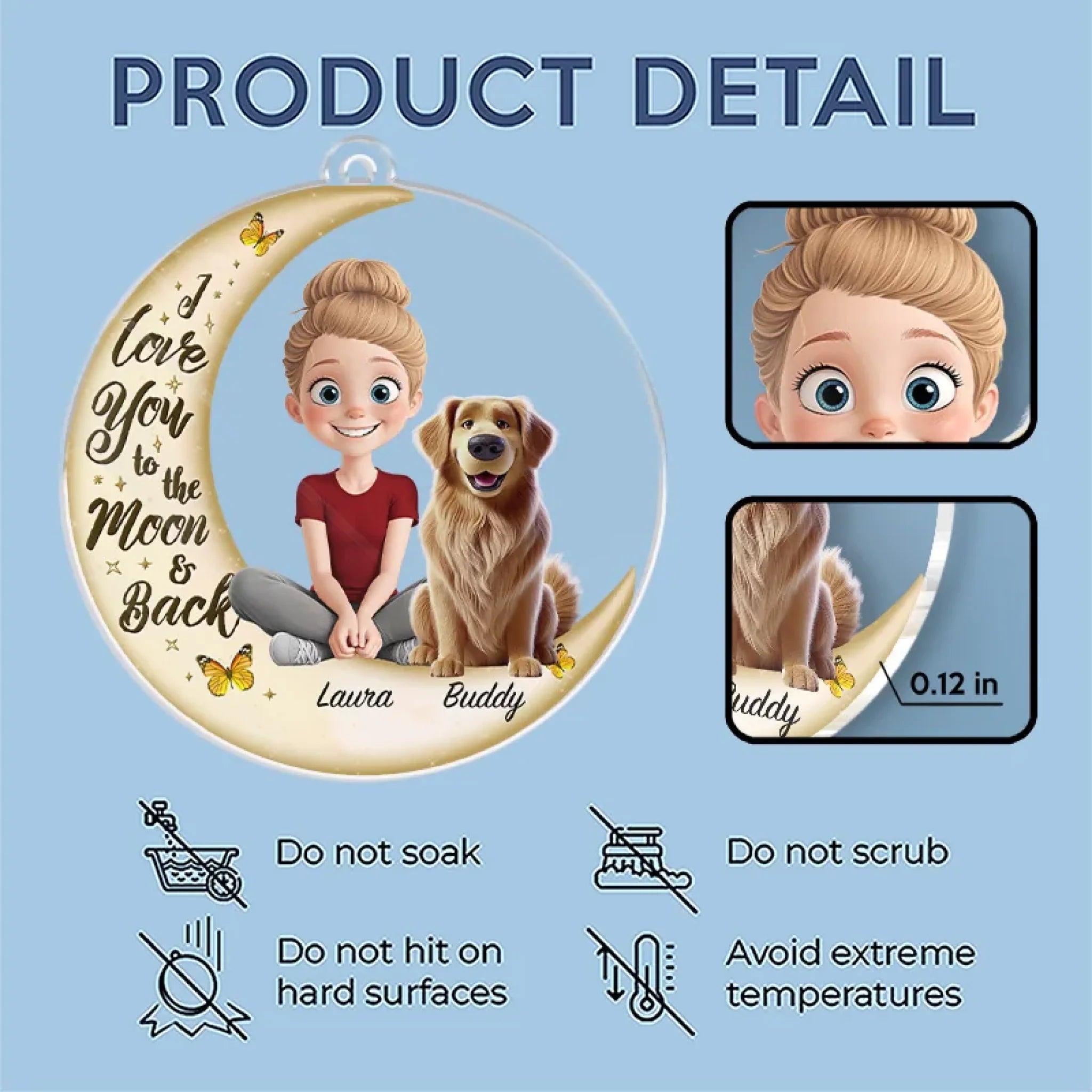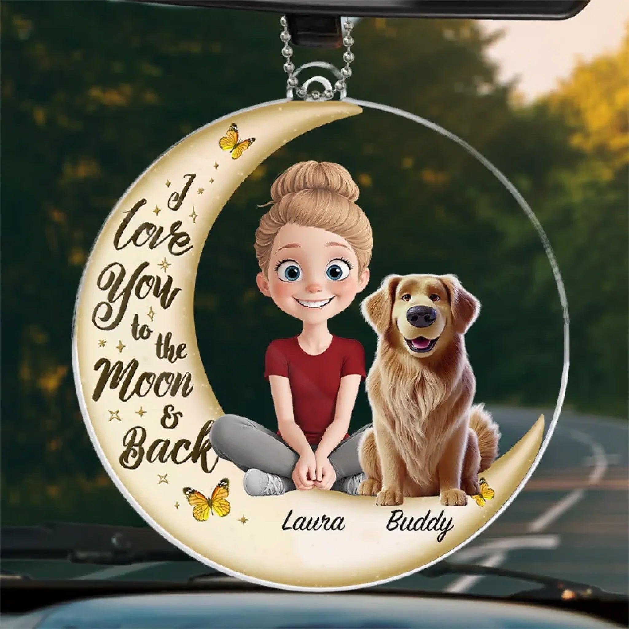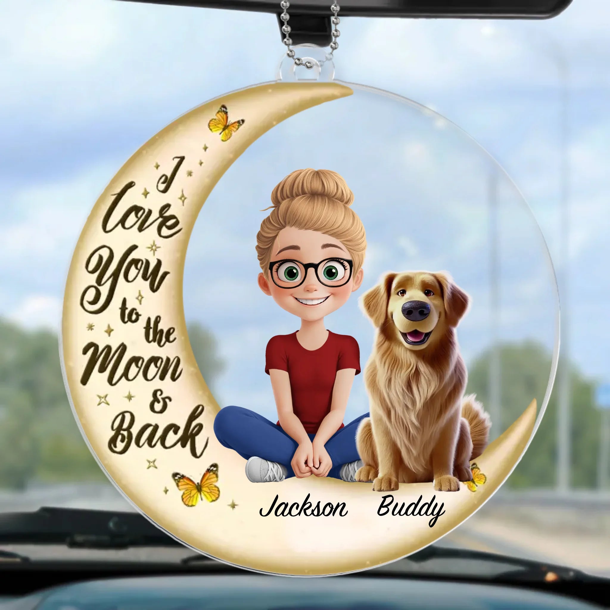 I Love You To The Moon And Back - Dog & Cat Personalized Custom Car Ornament - Acrylic Custom Shaped - Gift For Pet Owners, Pet Lovers