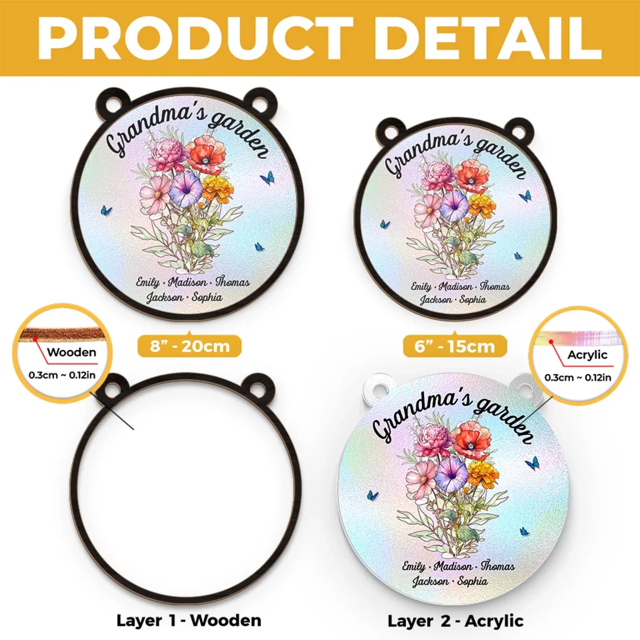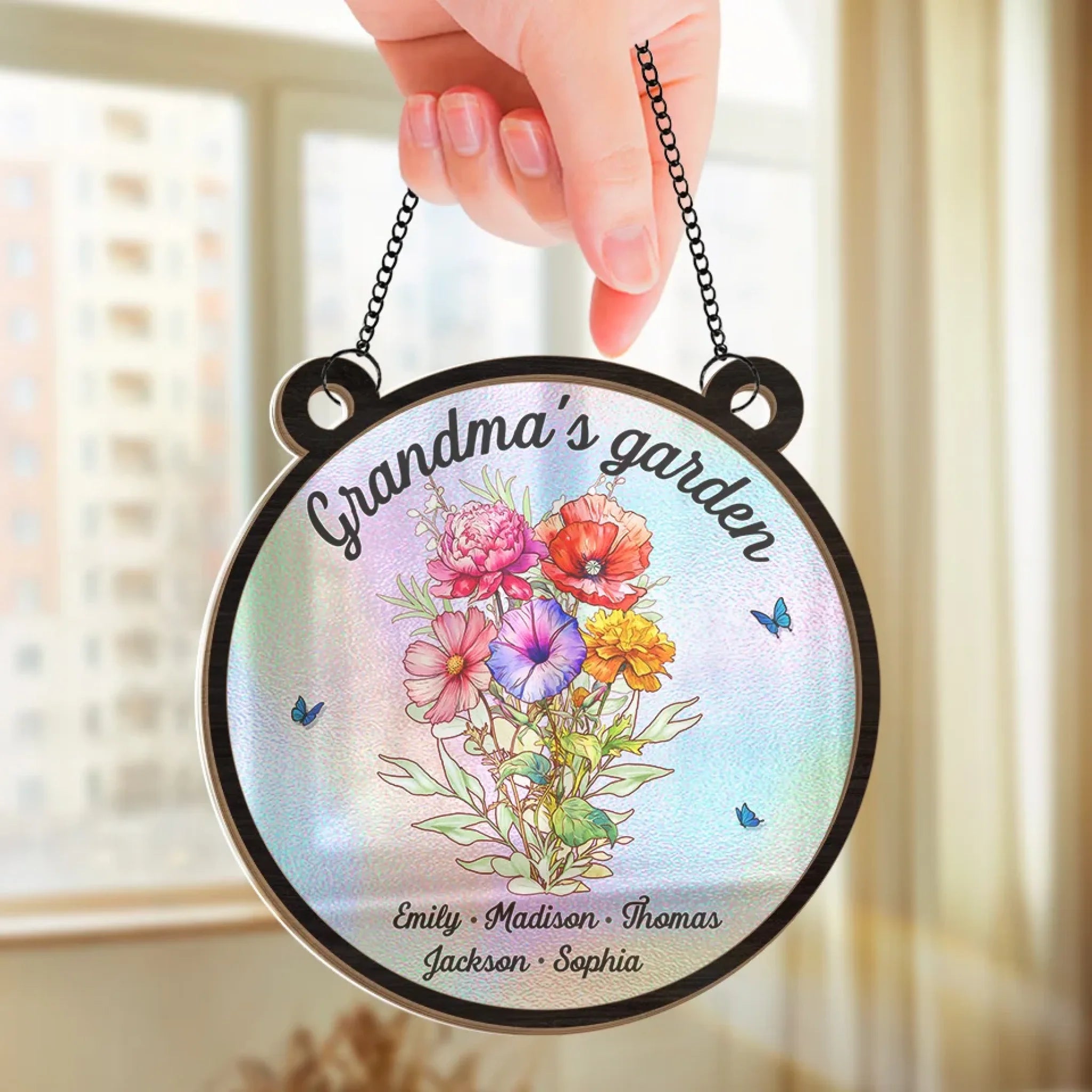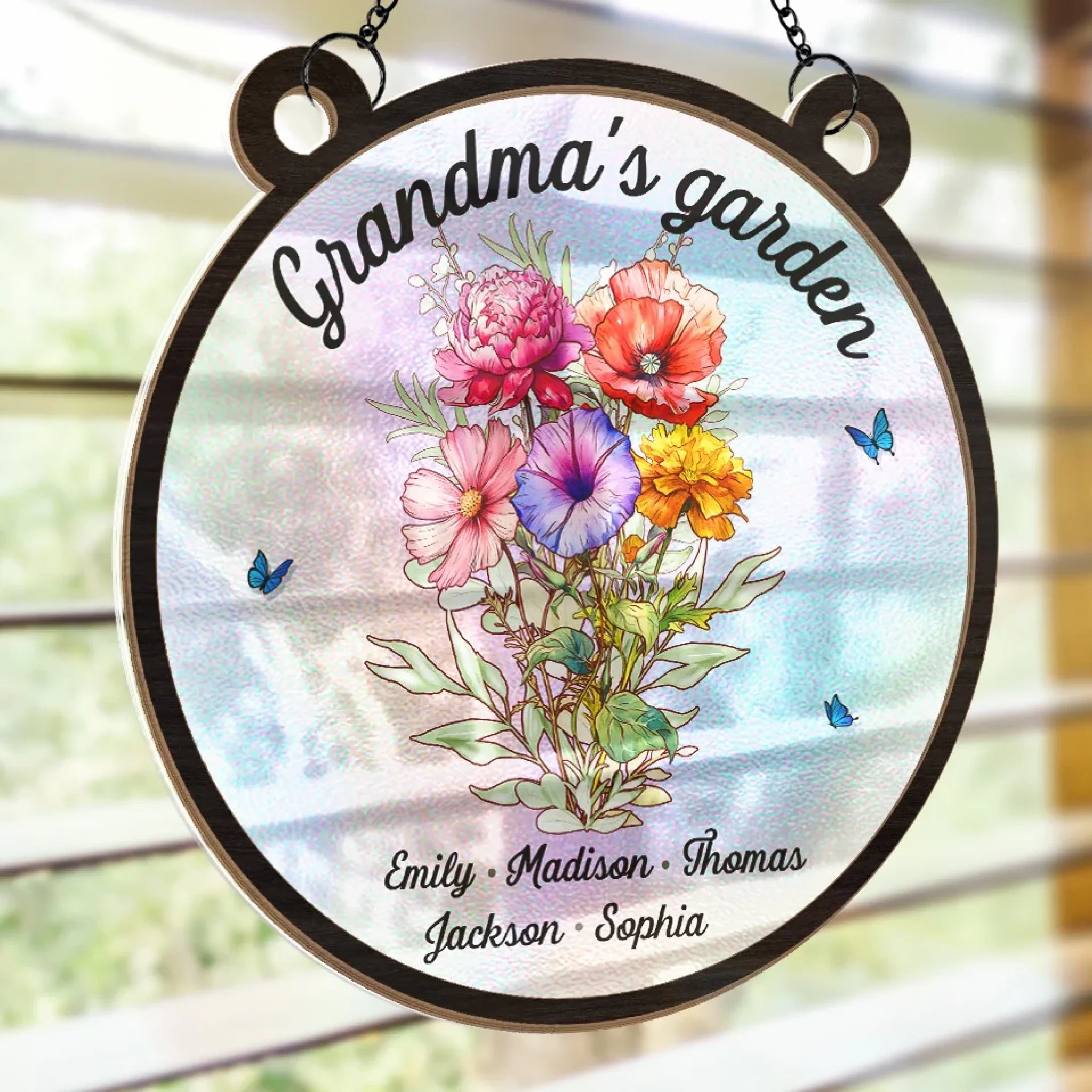 In Every Flower, A Story - Family Personalized Window Hanging Suncatcher - Gift For Mom, Grandma