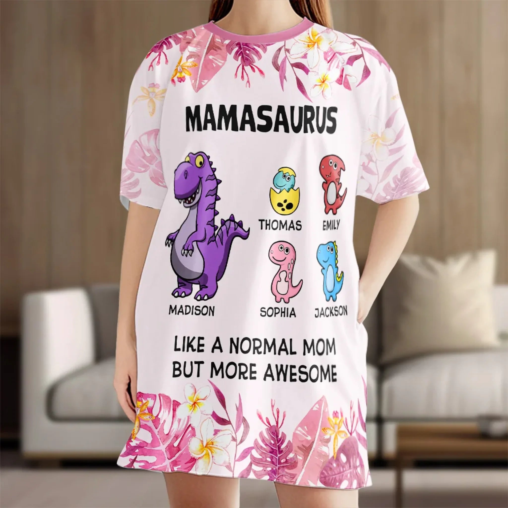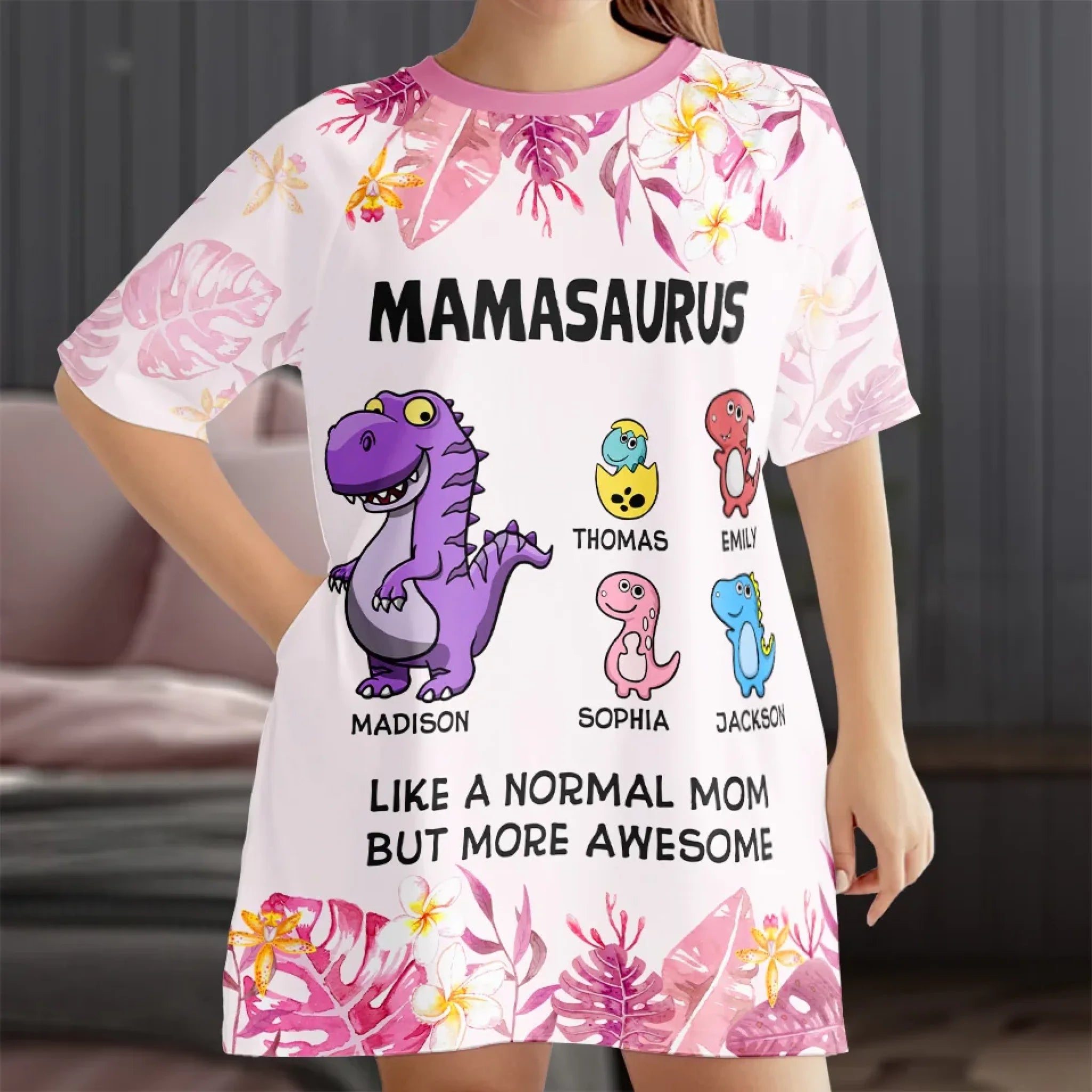 Just A Grandma Raising Little Dinosaurs - Family Personalized Custom Women's Sleep Tee - Mother's Day, Gift For Mom, Grandma