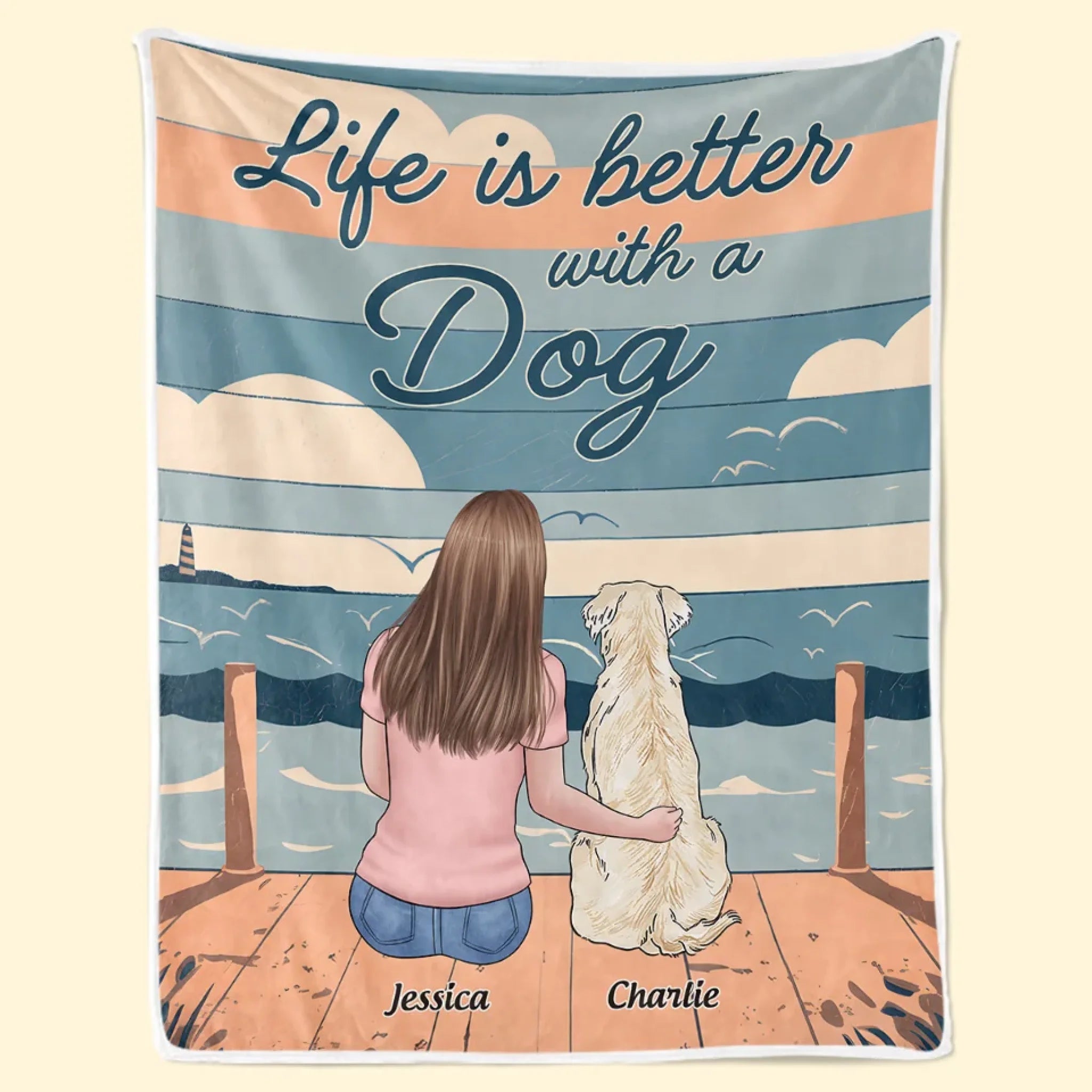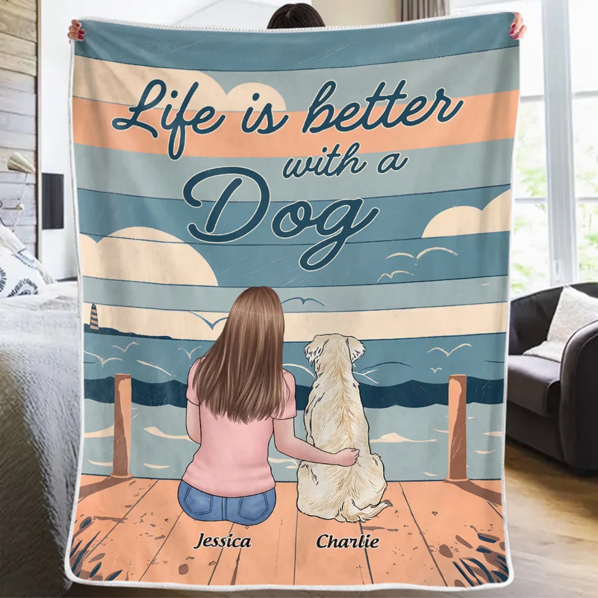 Life Is Better With A Wagging Tail - Dog Personalized Custom Blanket - Gift For Pet Owners, Pet Lovers