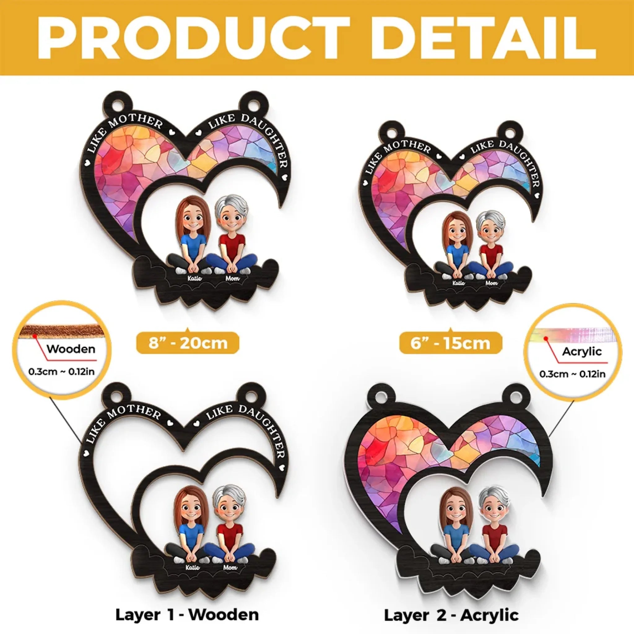 • Material: The front of this suncatcher is made from premium natural wood and mounted on acrylic plexiglass.