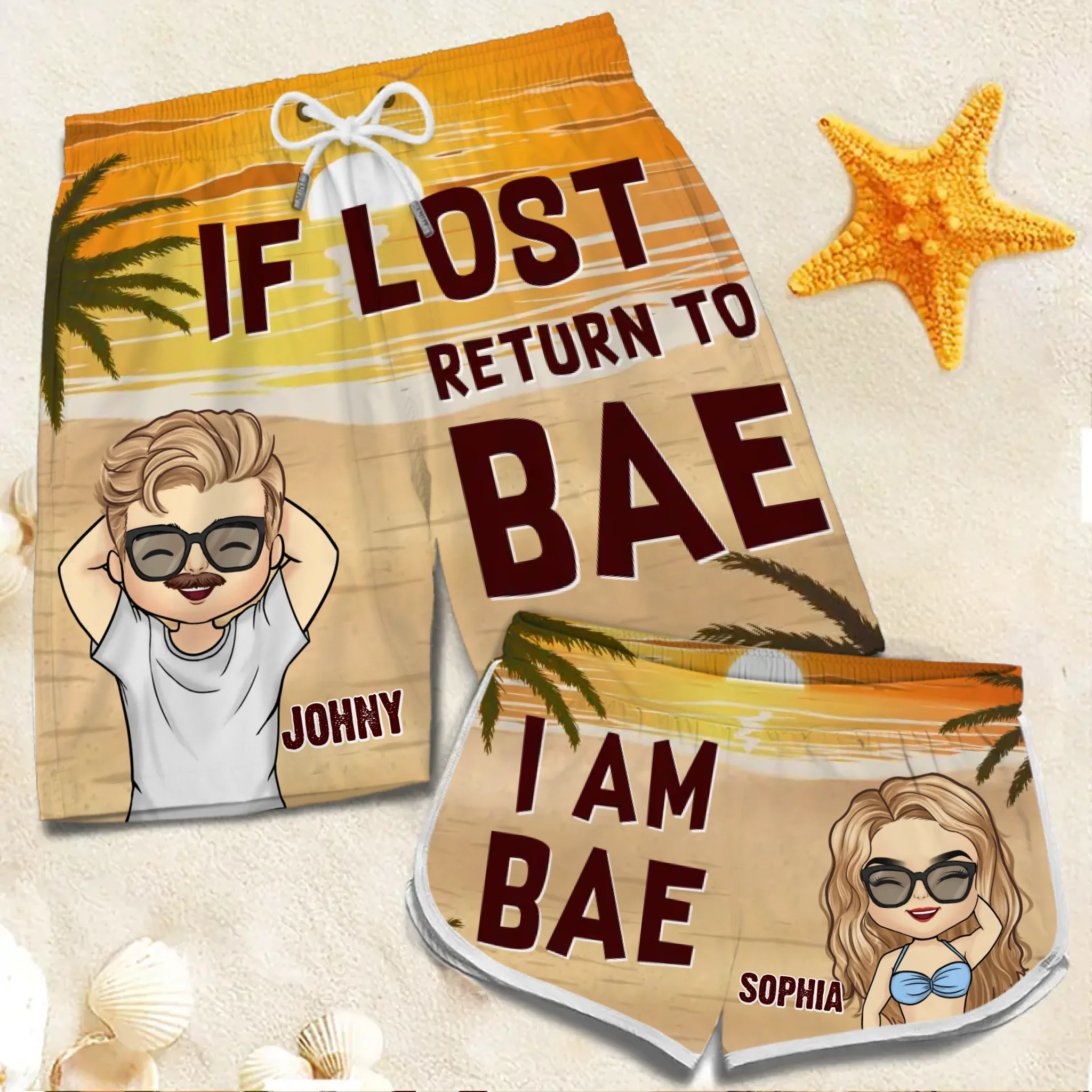 Lost In The Sunshine, Found In Each Other - Funny Personalized Custom Tropical Hawaiian Aloha Couple Beach Shorts - Summer Vacation Gift, Birthday Party Gift For Husband Wife, Anniversary
